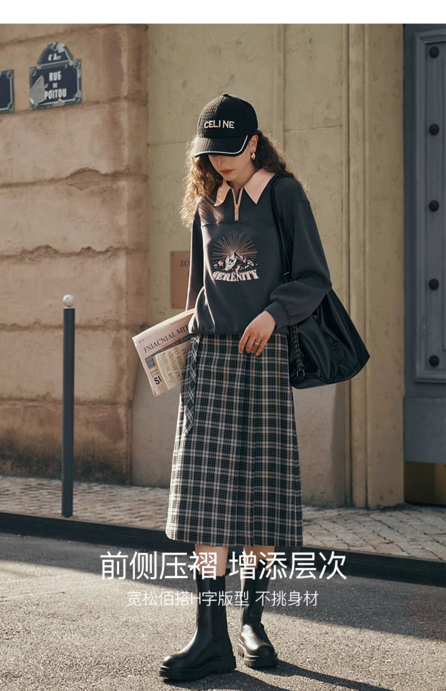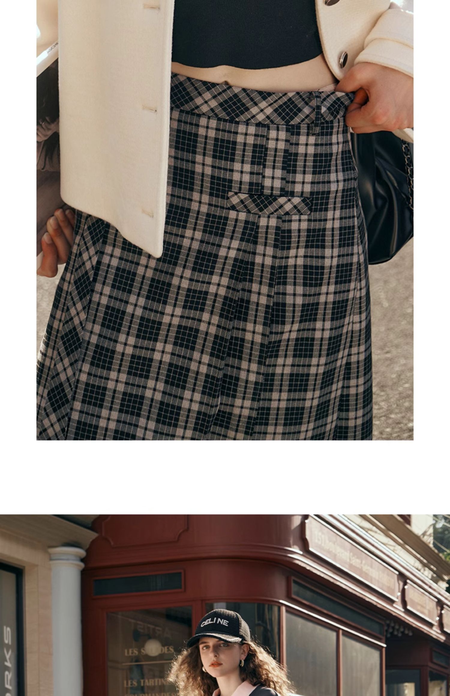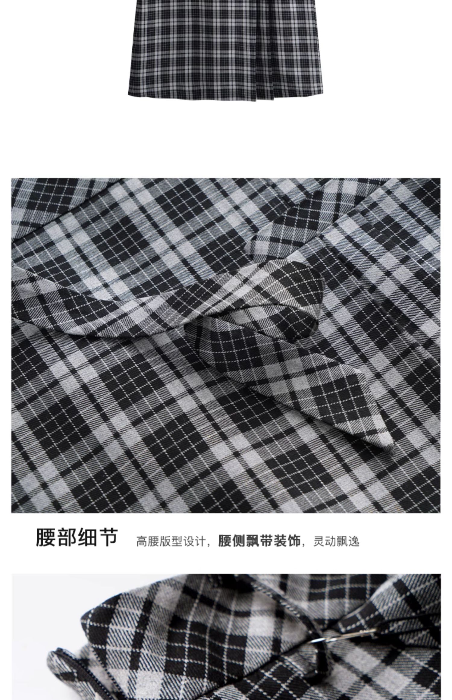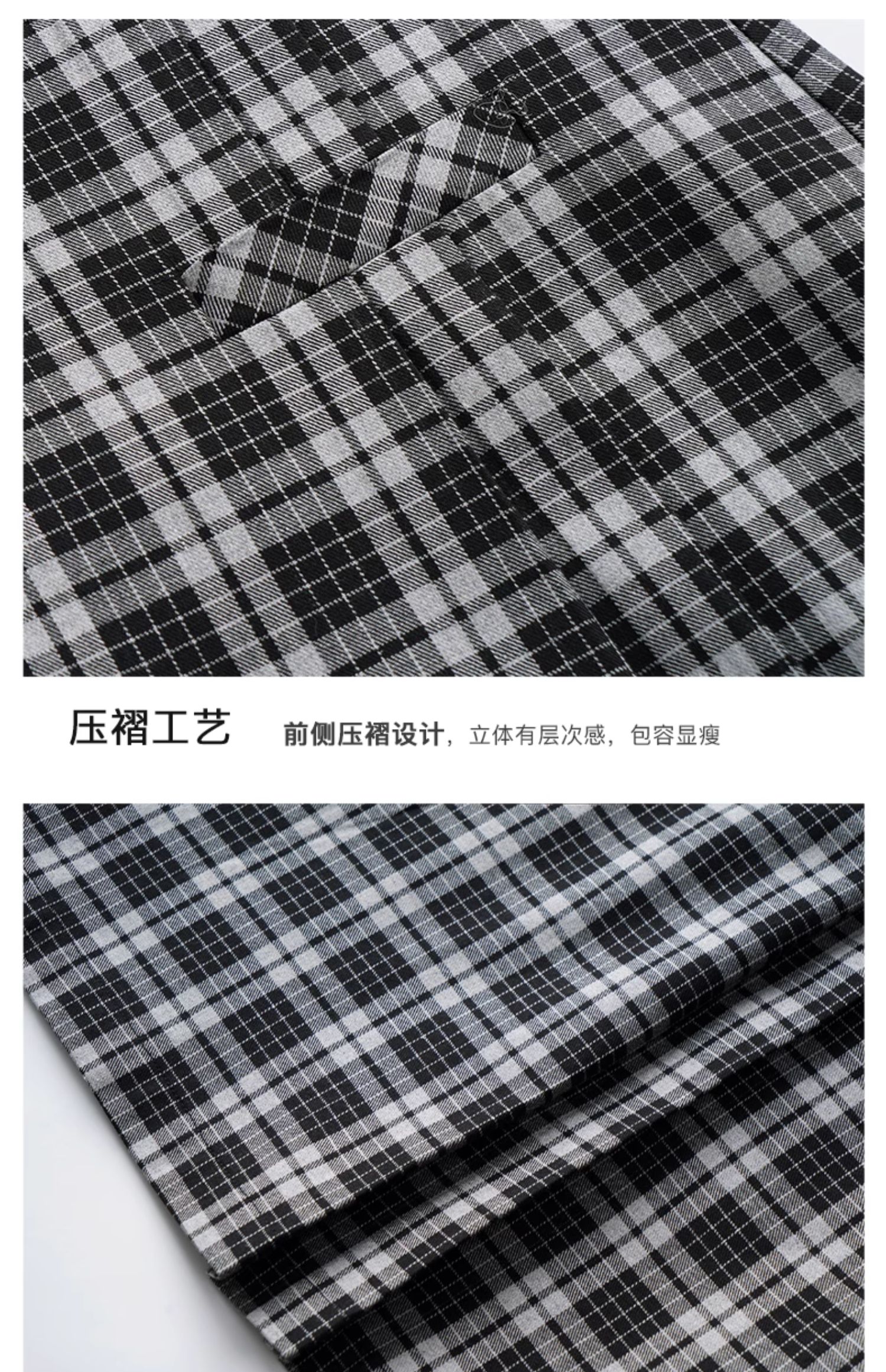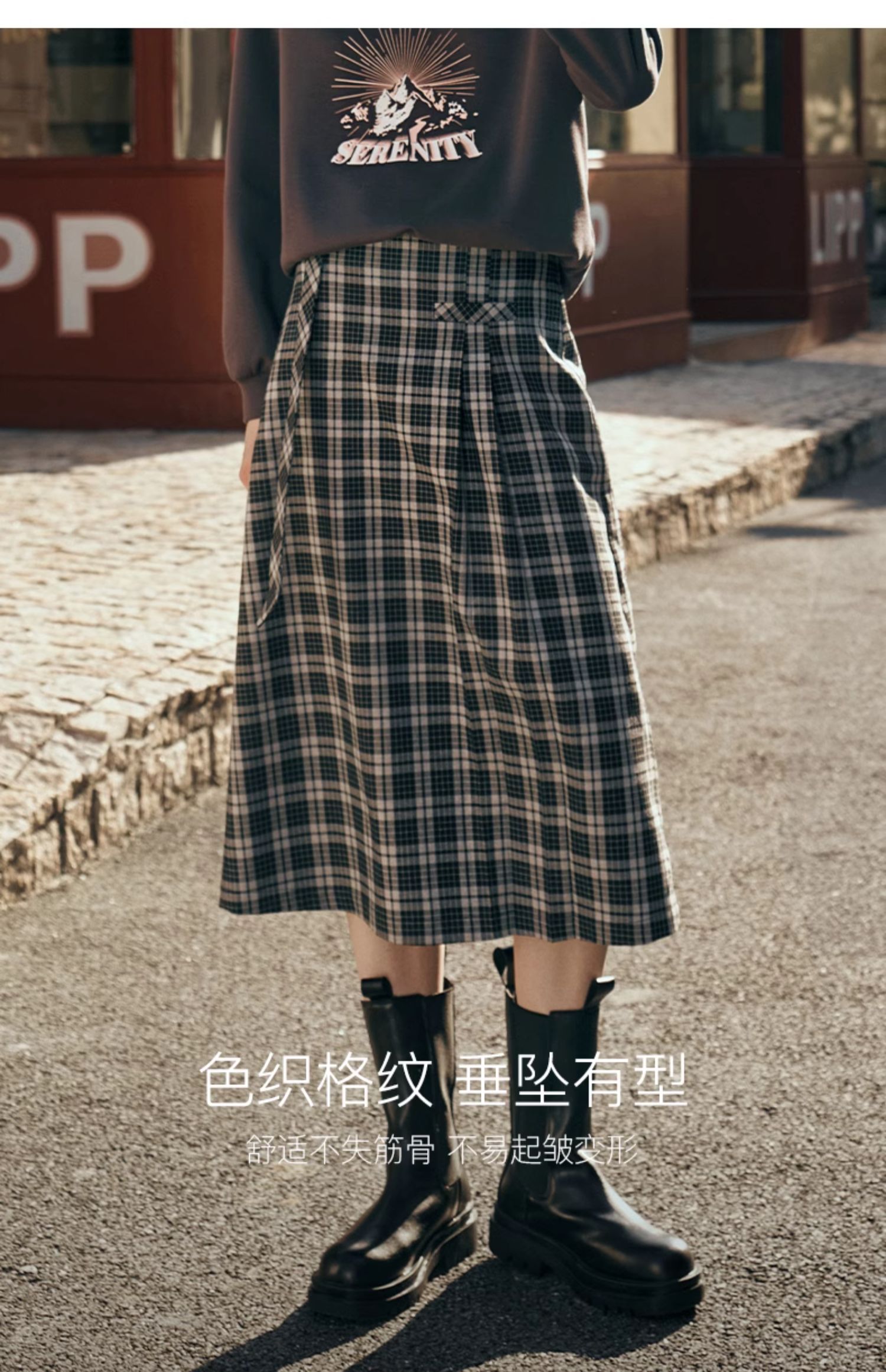 OLrain欧芮儿格子半身裙女秋季2023新款高腰美式复古压褶直筒裙子