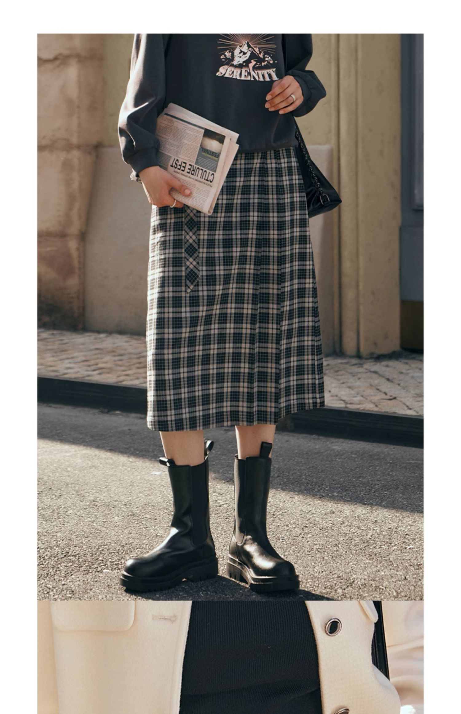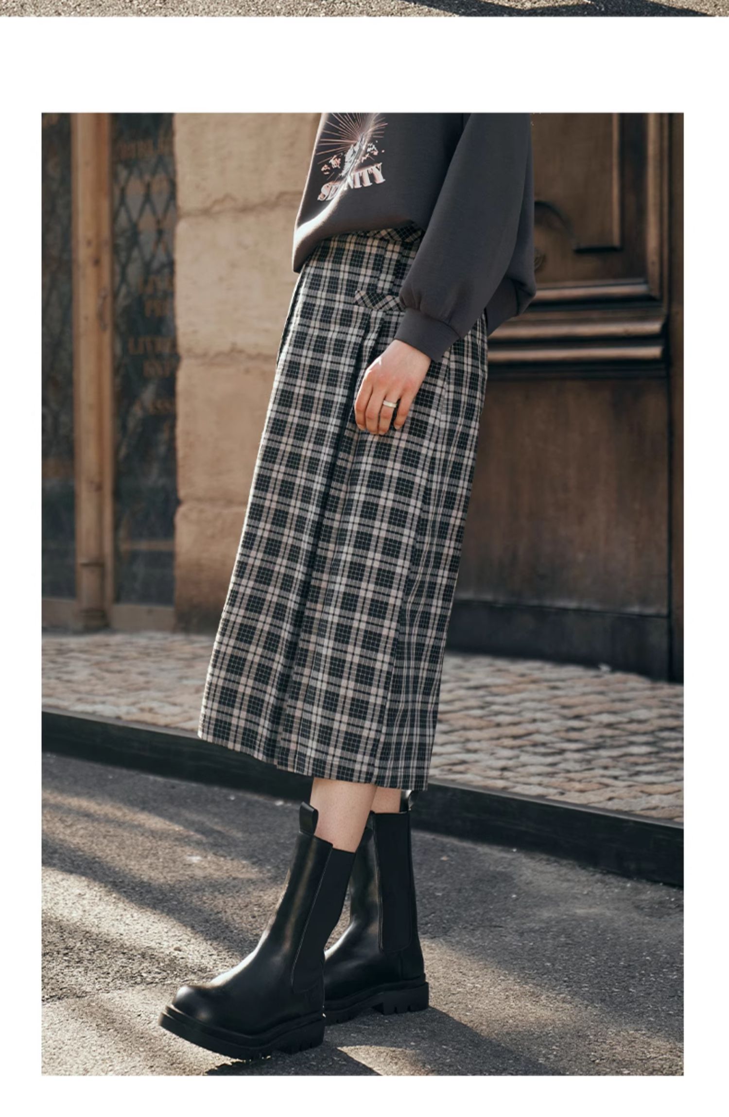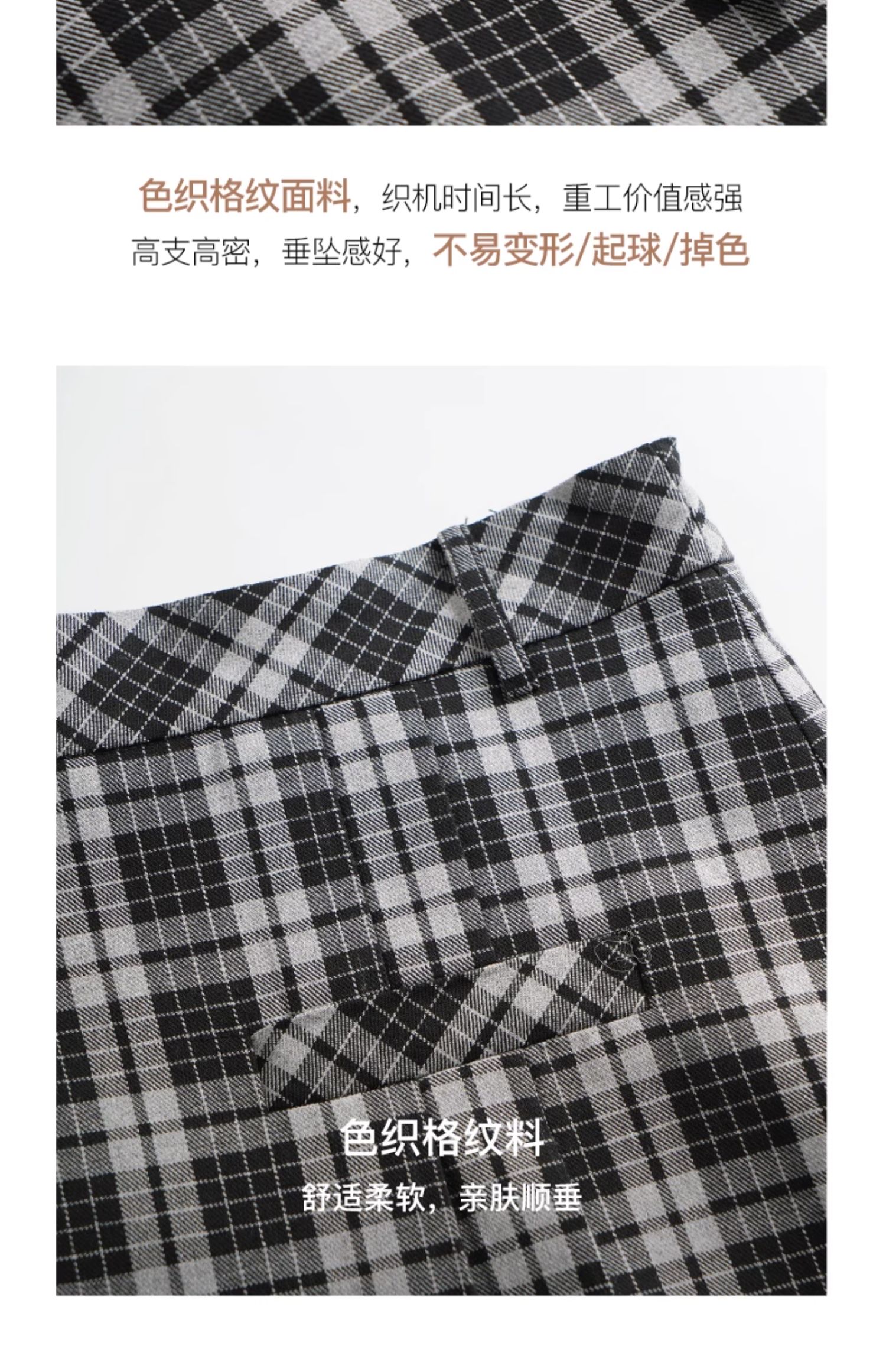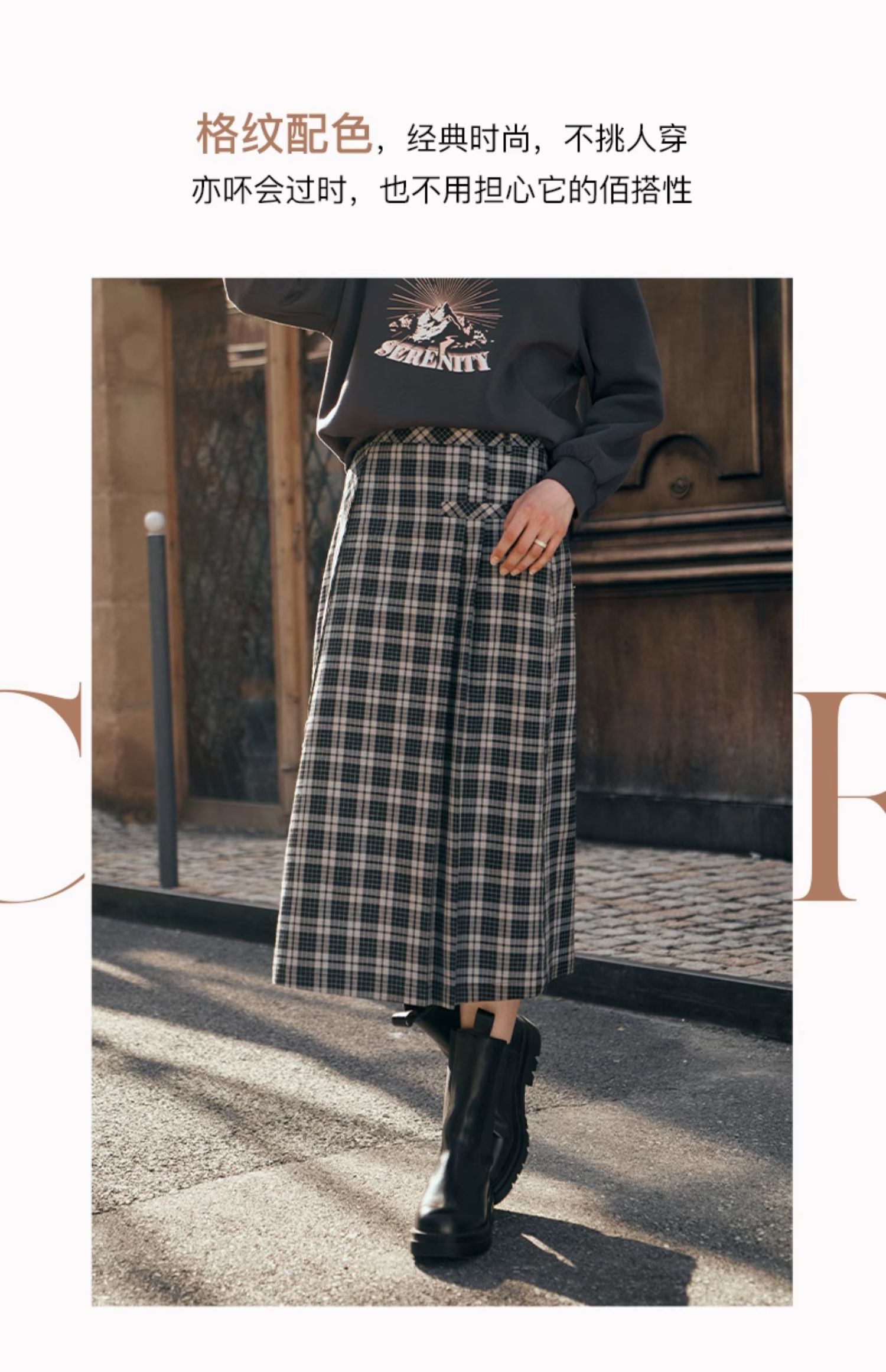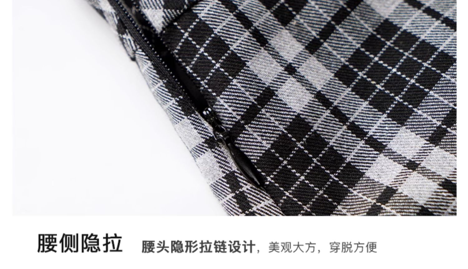 OLrain欧芮儿格子半身裙女秋季2023新款高腰美式复古压褶直筒裙子