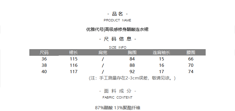 优雅代号|高级感修身醋酸连衣裙