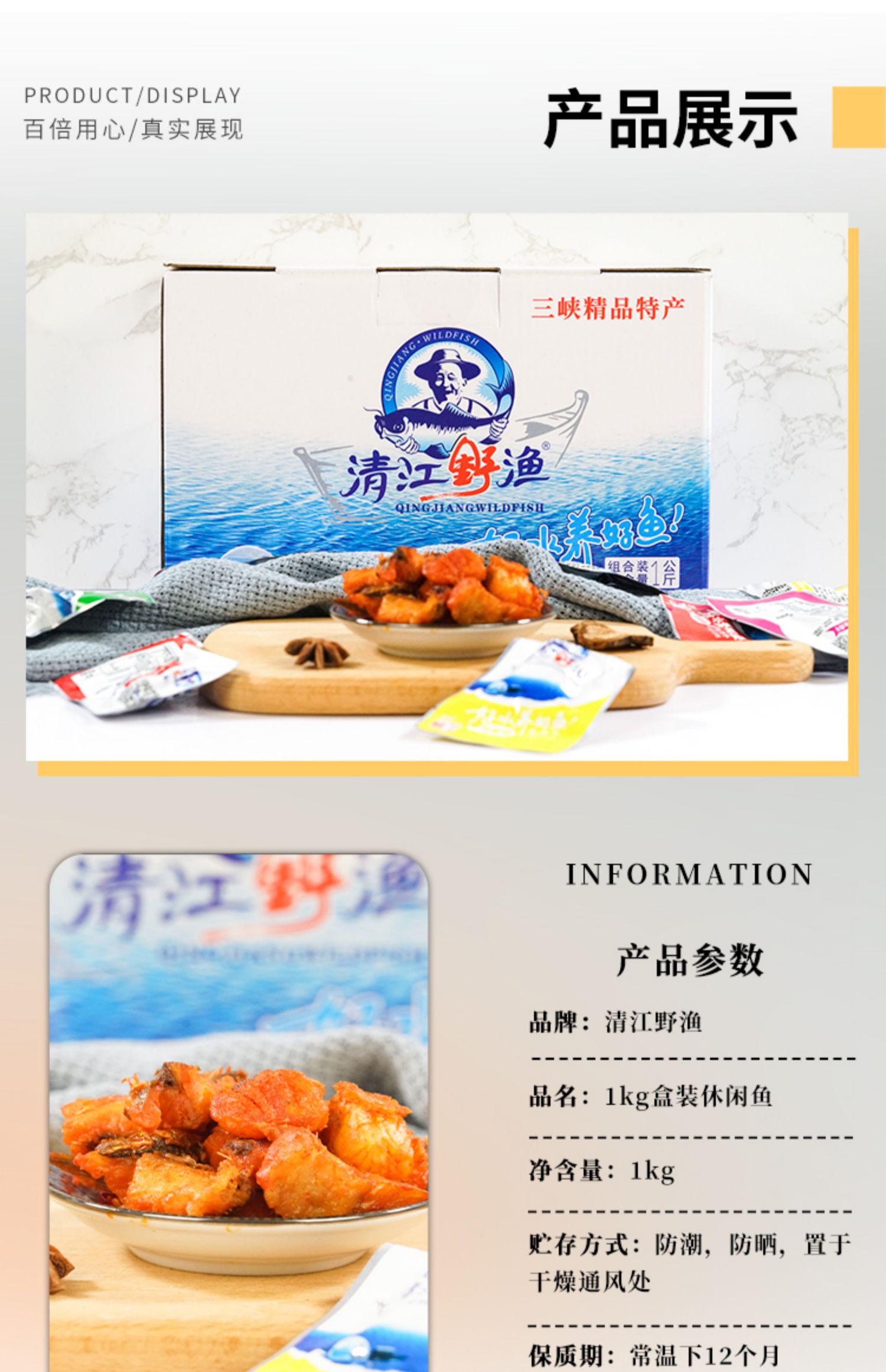 宜昌清江野渔 鱼类经典零食综合口味礼盒1kg/盒