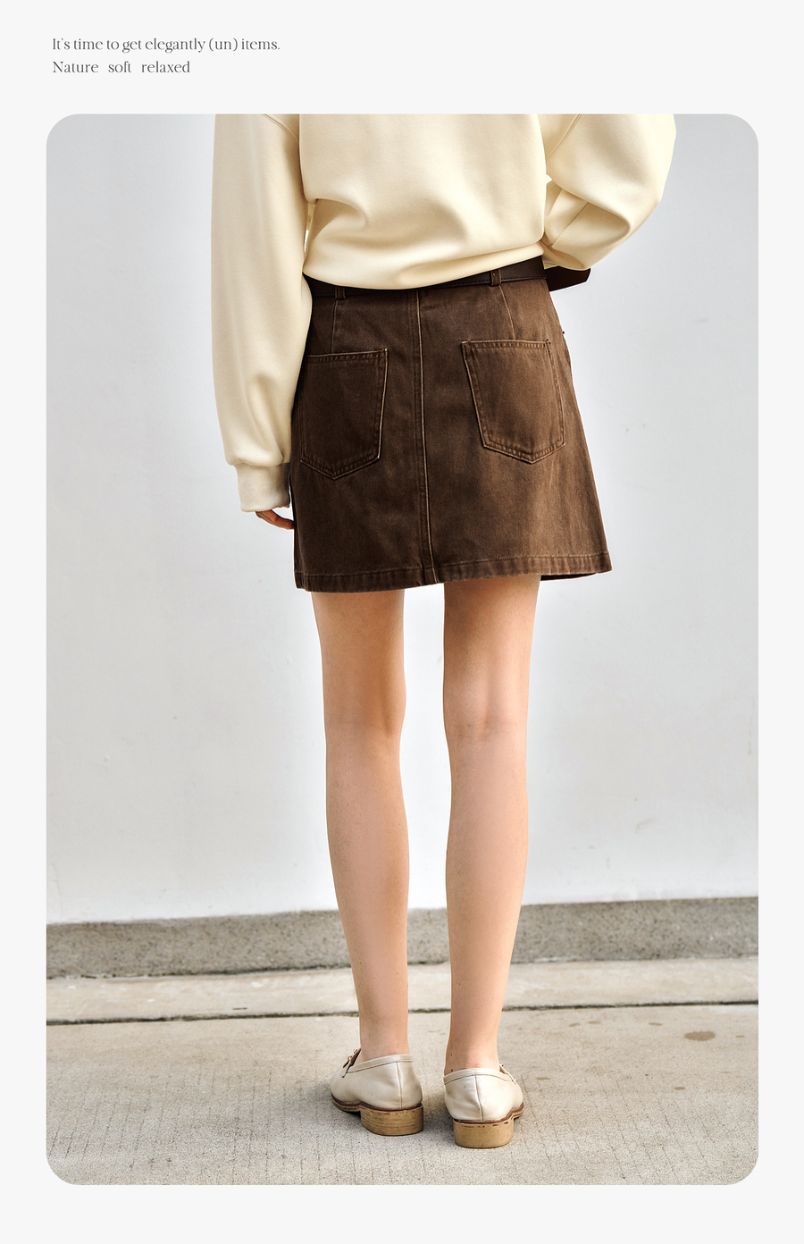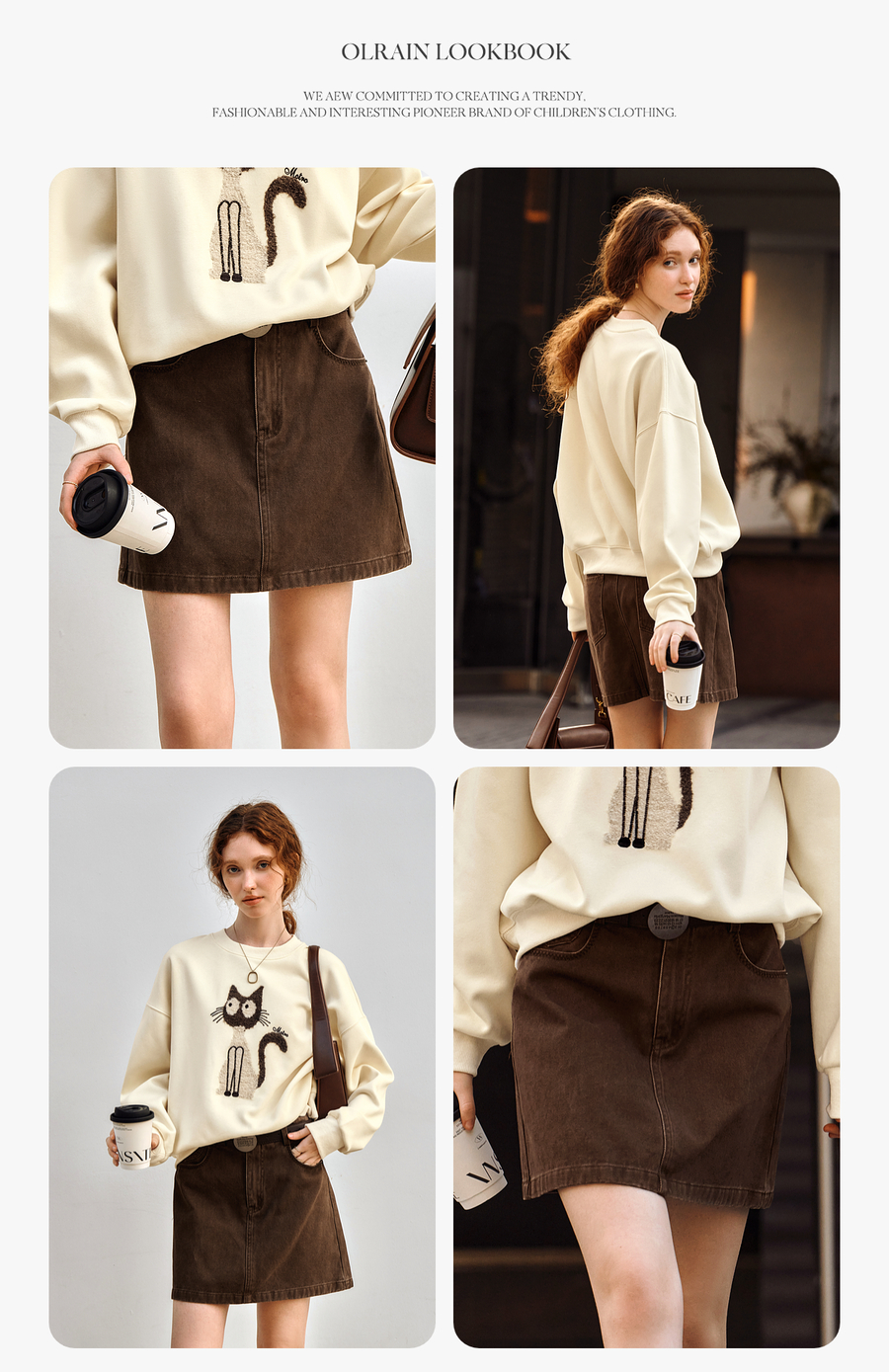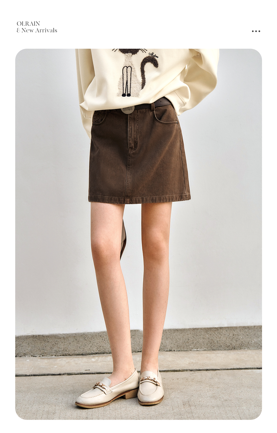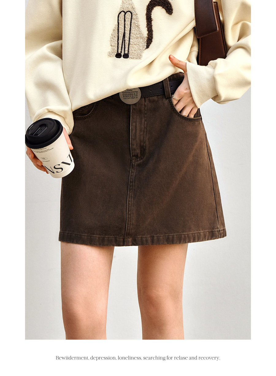 OLrain欧芮儿咖色牛仔半身裙女春季2025年新款通勤百搭减龄短裙