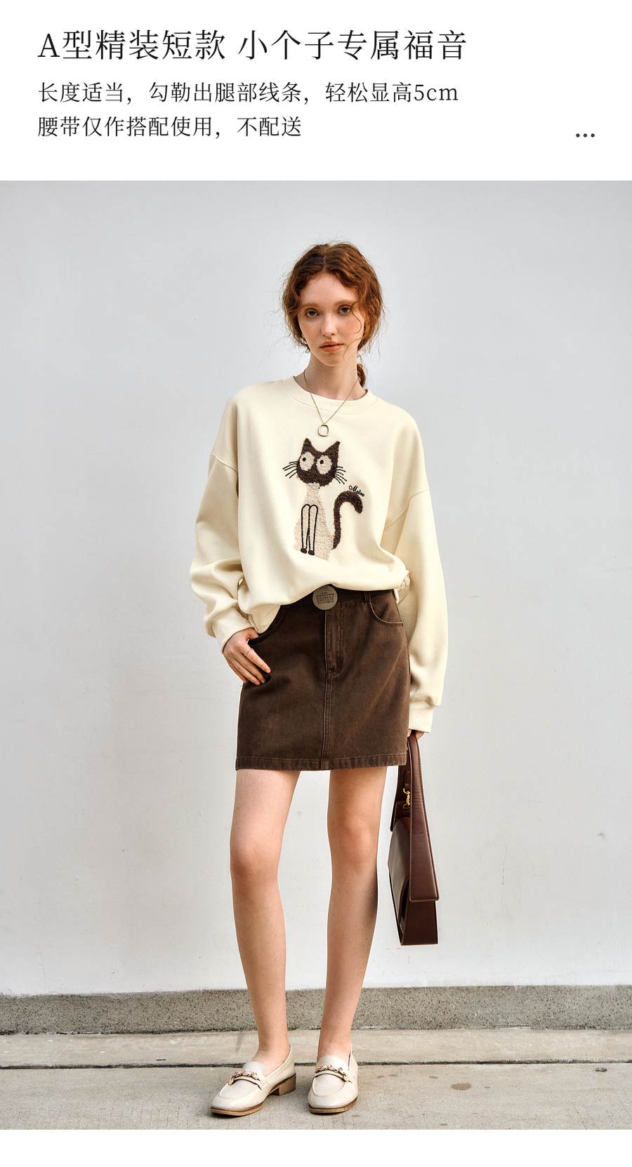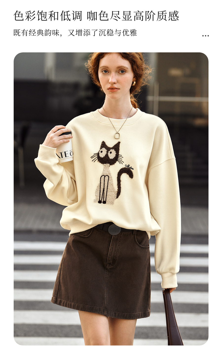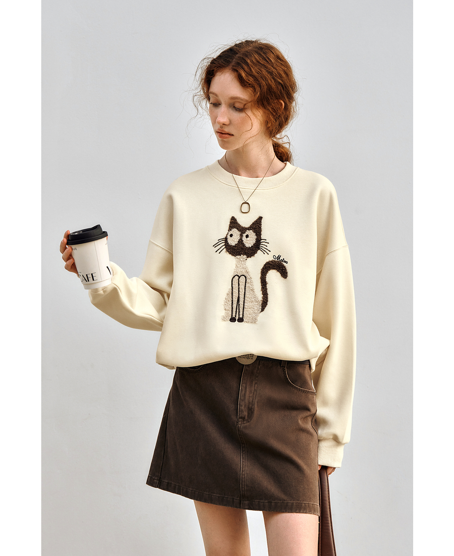 OLrain欧芮儿休闲趣味猫咪印花圆领长袖T恤女秋季2025年新款上衣