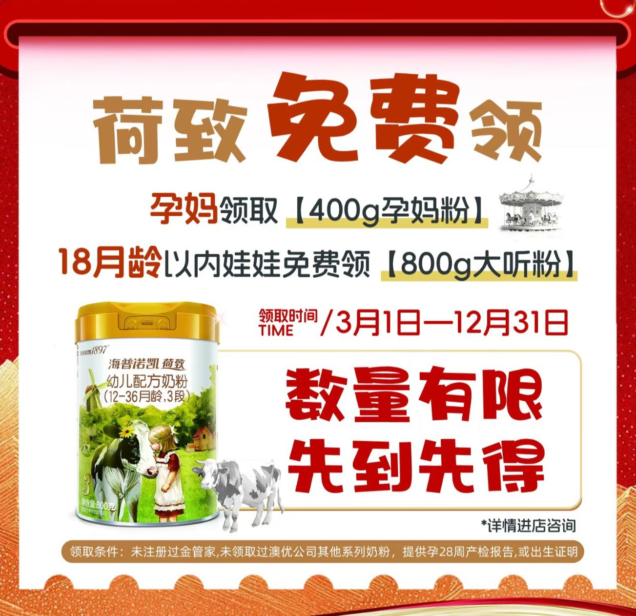 [拥抱]现在不能领取奶粉的孕妈也不用着急,等月龄到了再来找我。