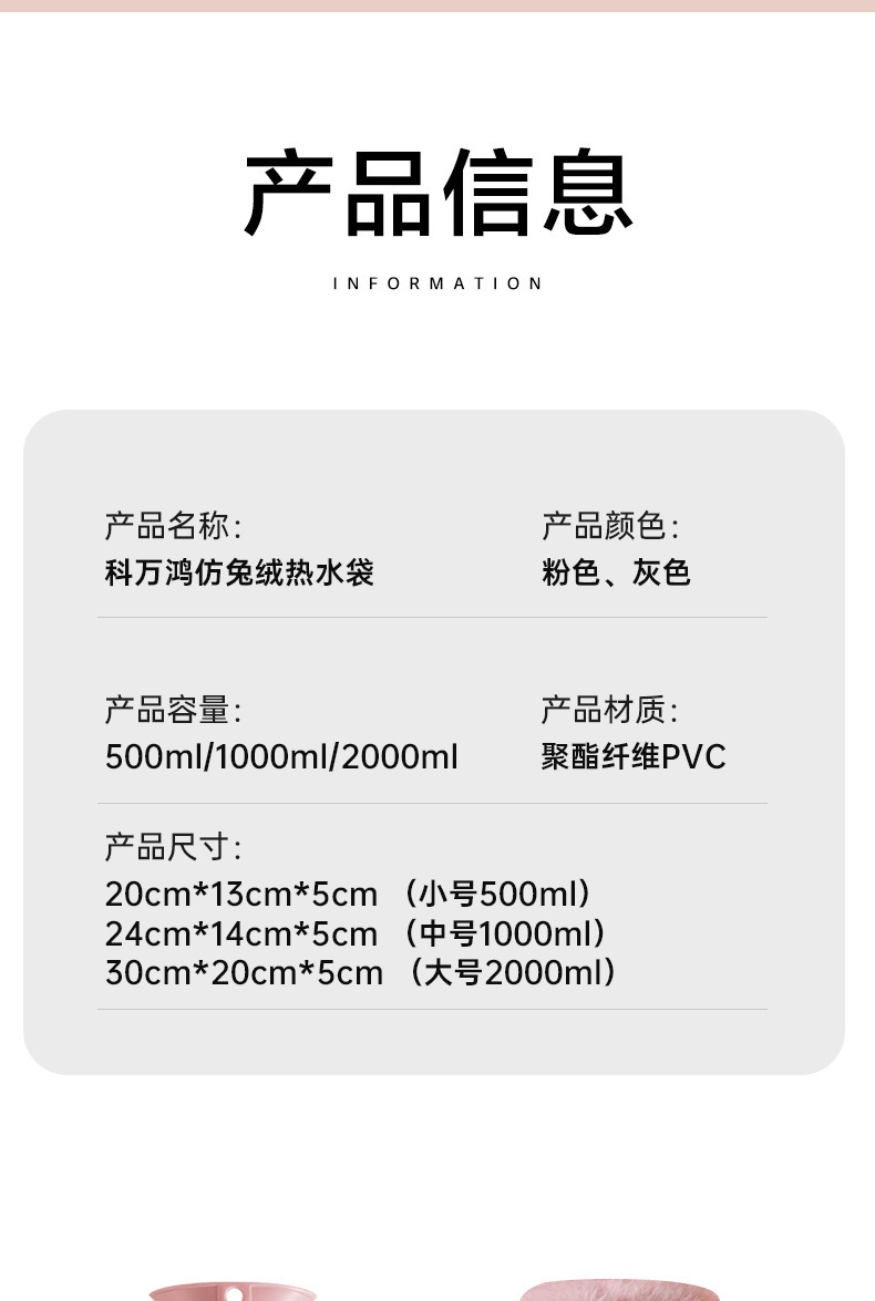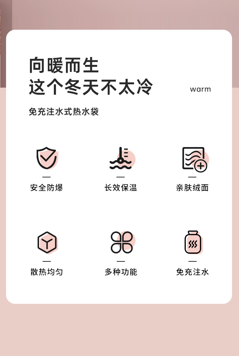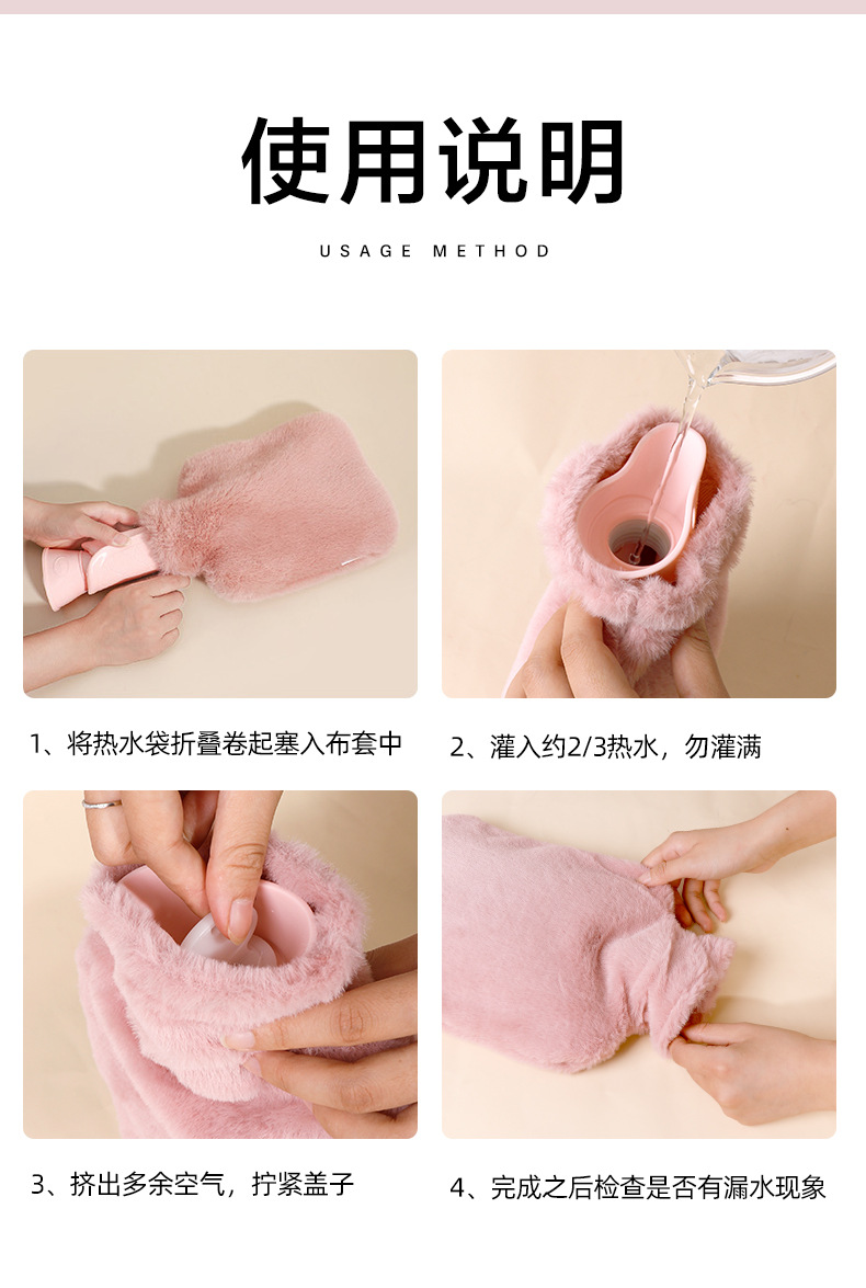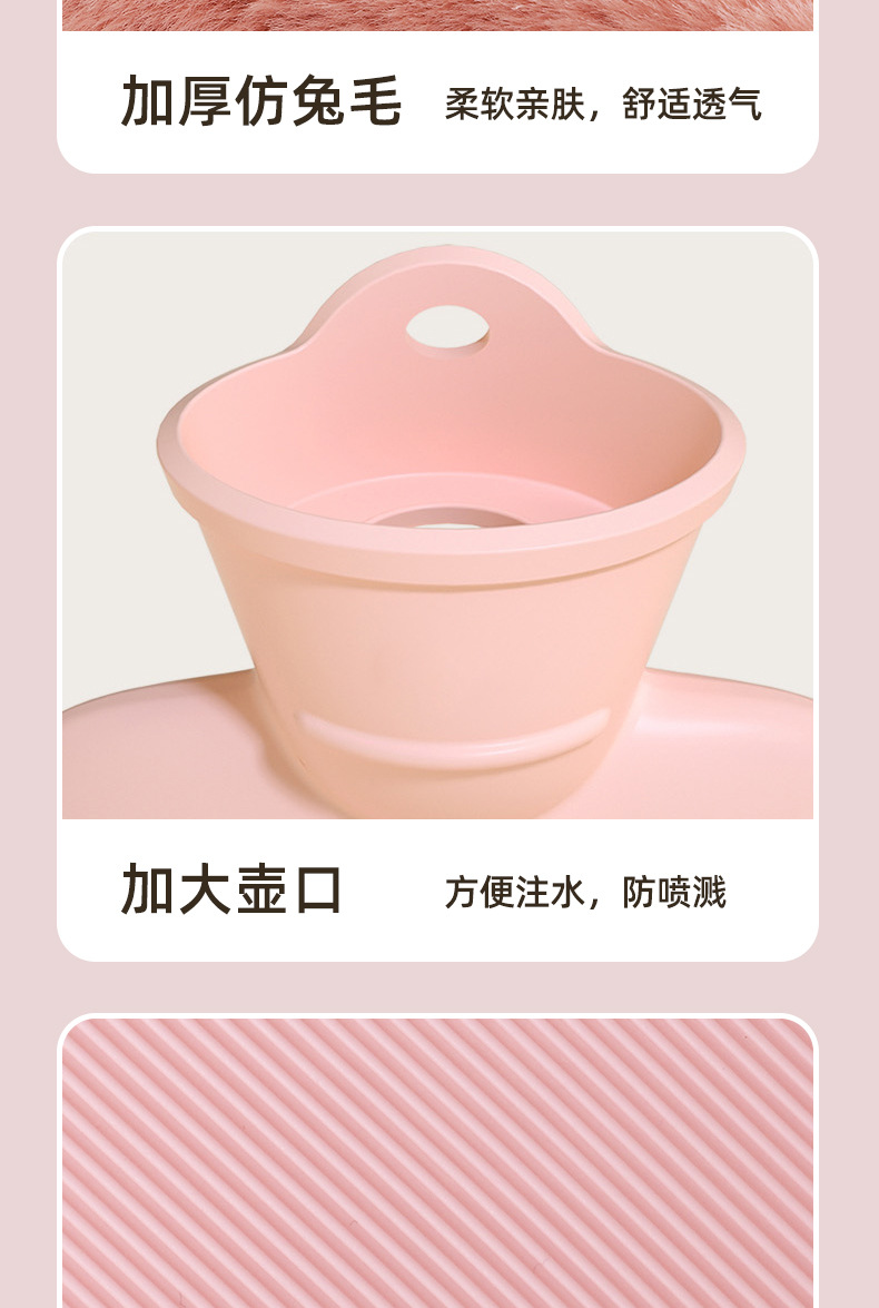 「高密度仿兔绒!更温暖」注水热水袋加厚防爆女生暖手热敷肚子居家日用暖脚仿兔绒灌水暖手袋