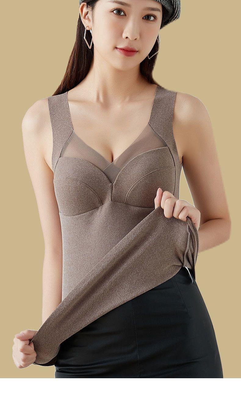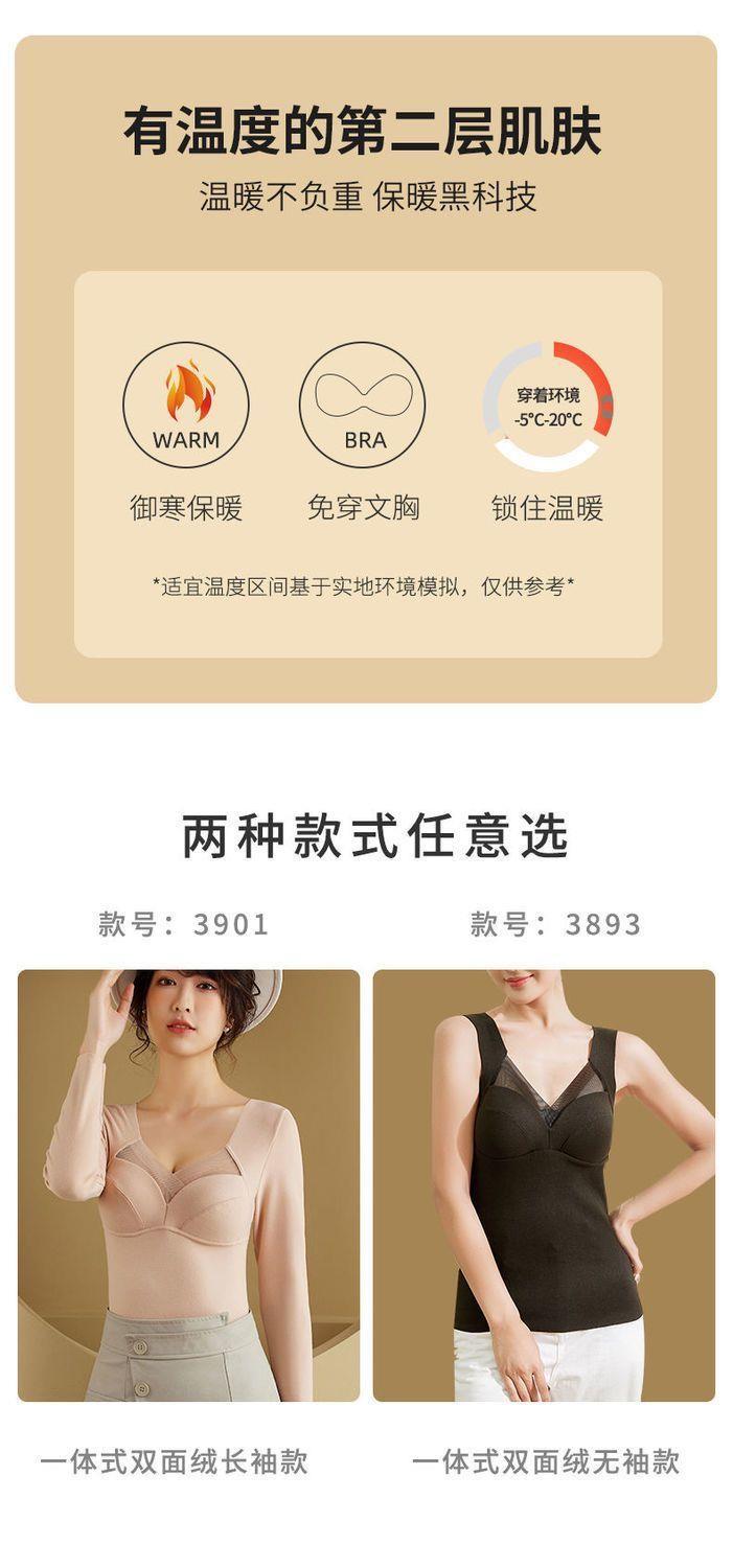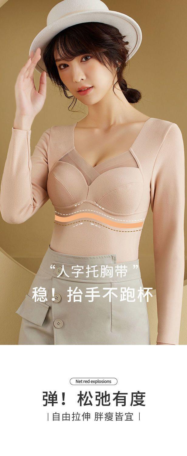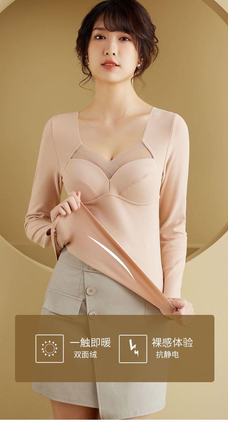拍二件59.9元德绒保暖内衣女长袖T恤带胸垫固定杯内搭加厚打底衣上衣秋冬女士