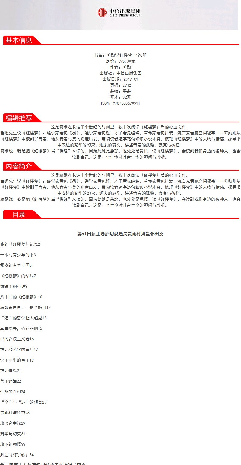 蒋勋说红楼梦 全8册 蒋勋 著 中信出版社图书 正版书籍中信出版