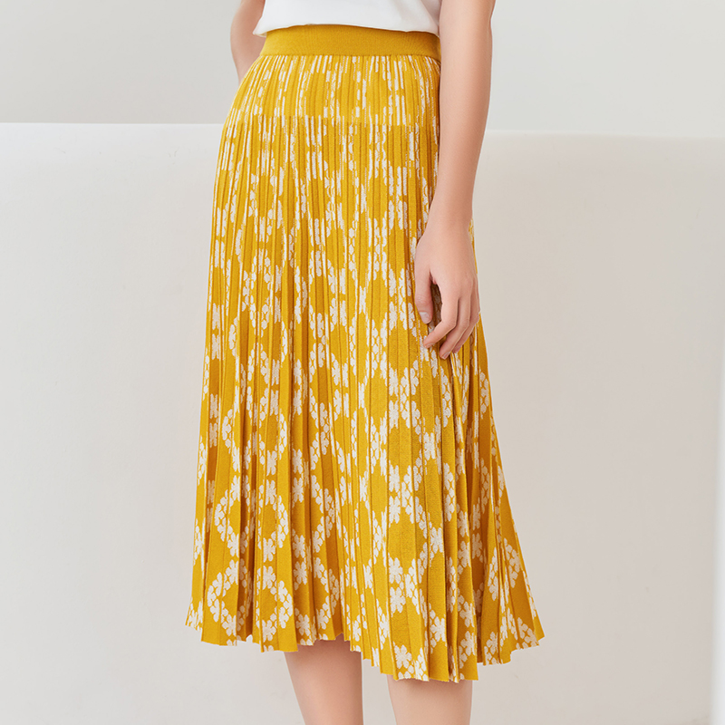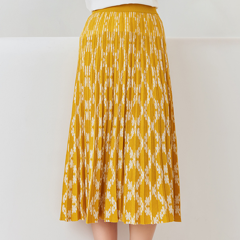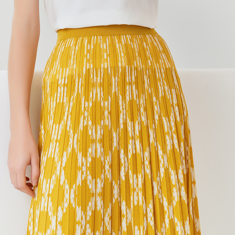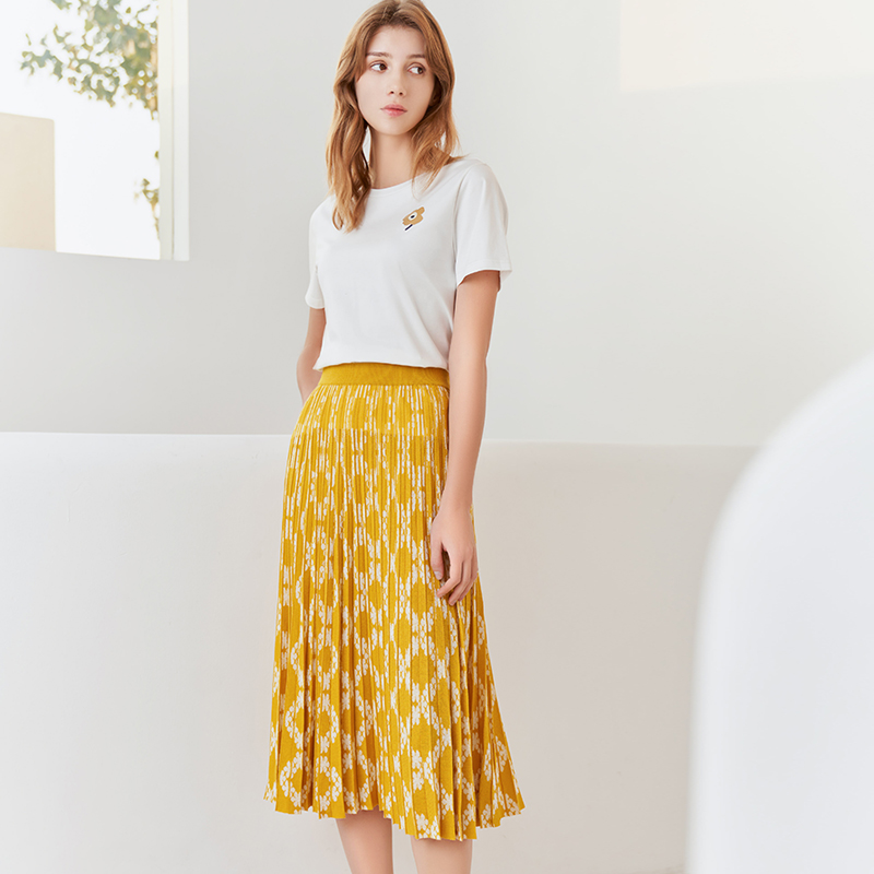 【棉质针织半裙】23年春夏新品女士中长款半裙时尚菱形印花百褶裙子