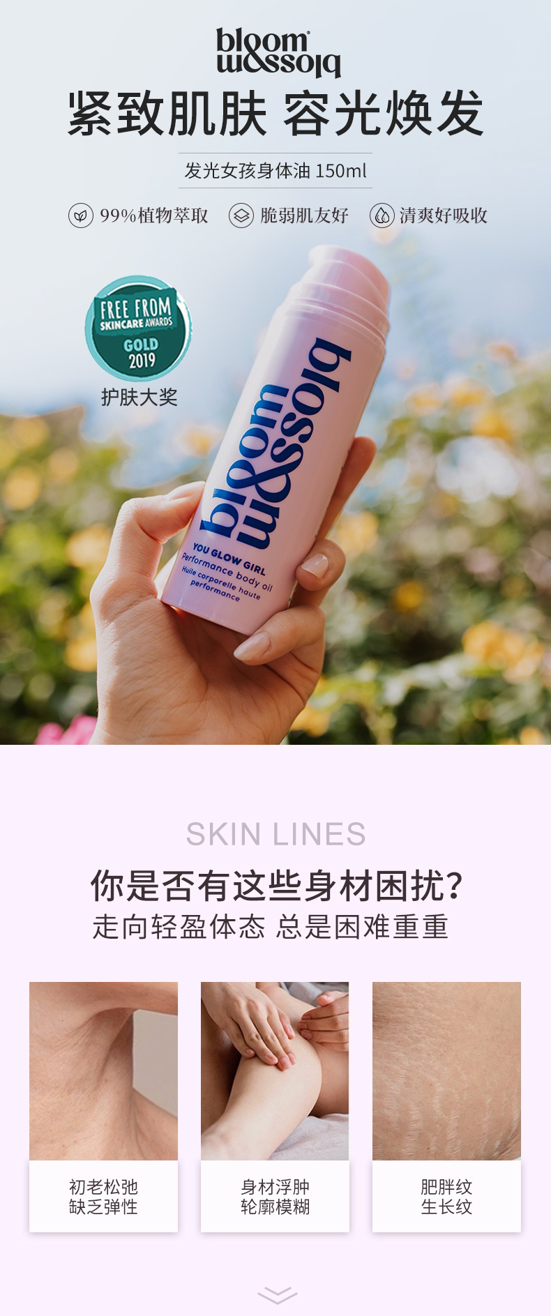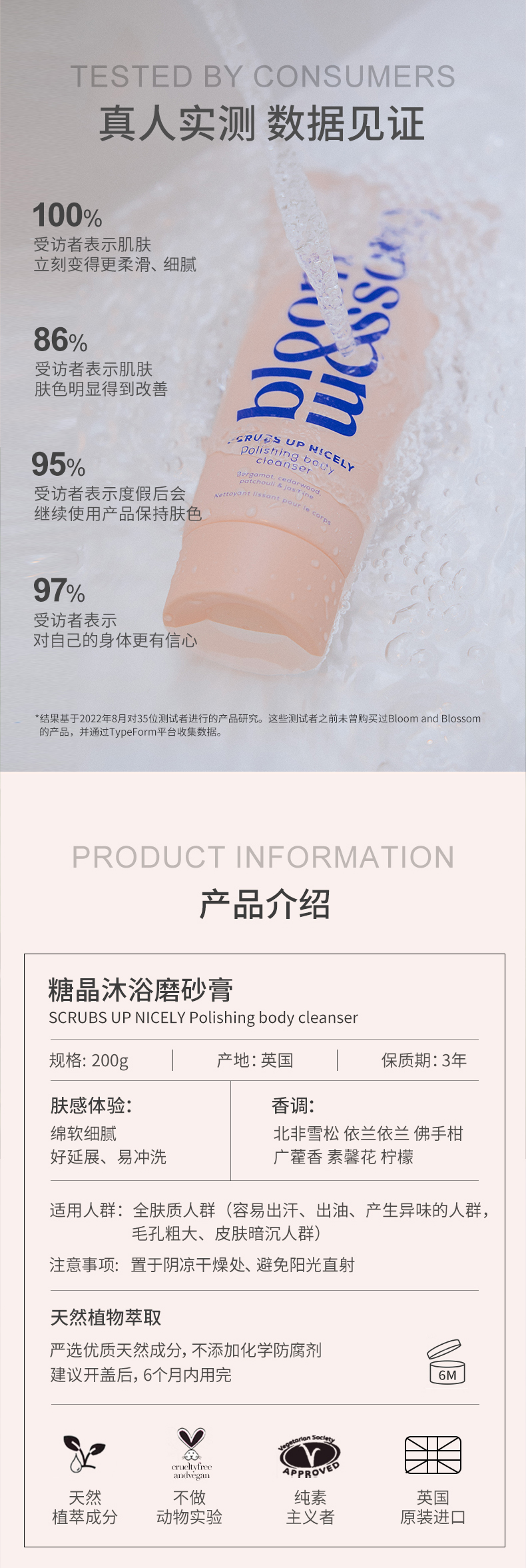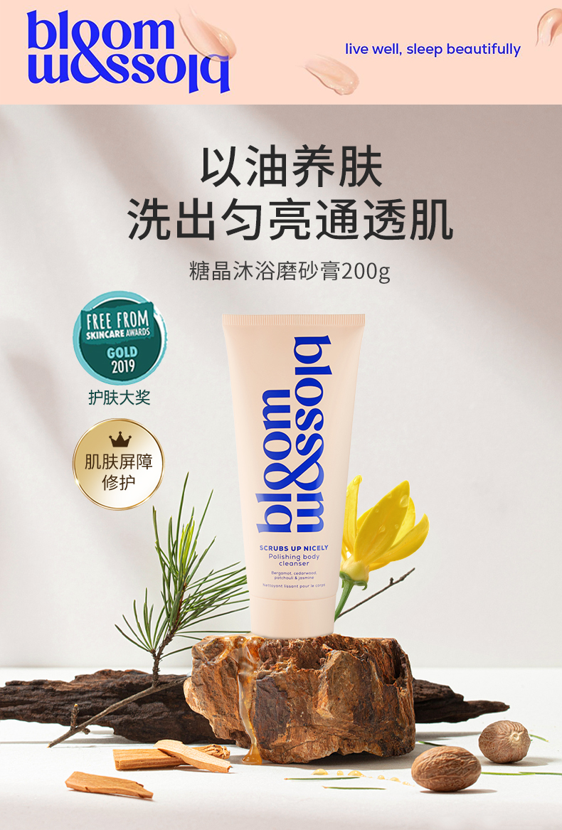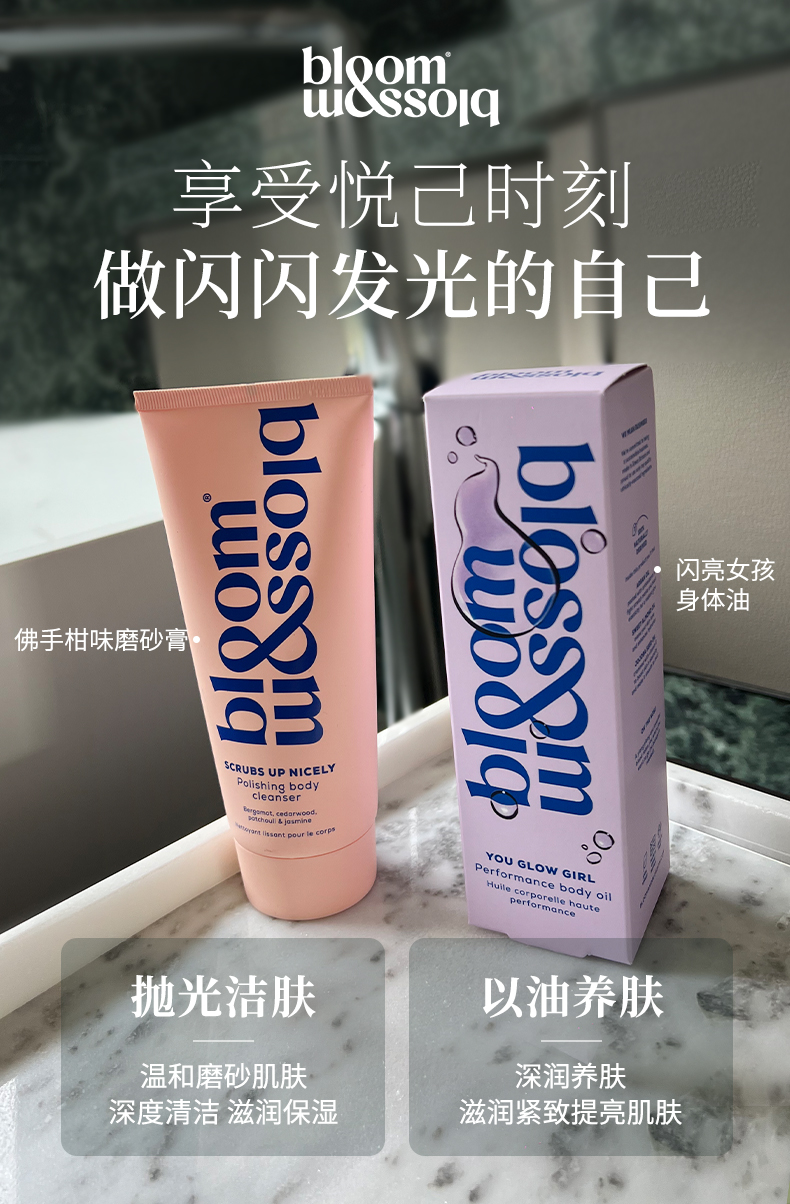 保税直发Bloom and Blossom 佛手柑味磨砂膏 200g+闪亮女孩身体按摩油 150mL【磨砂膏开封后保质期6个月】