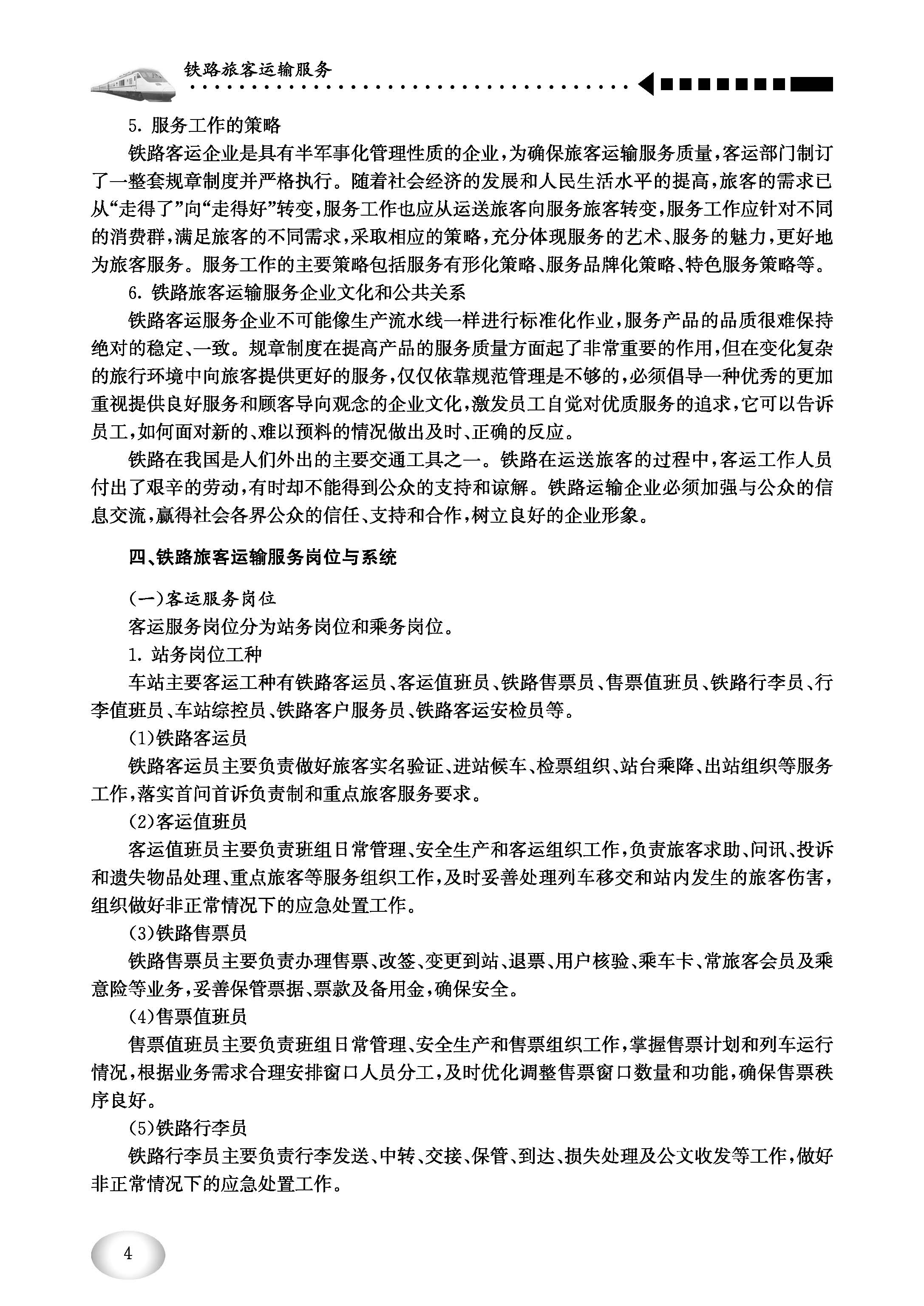 本书结合铁路旅客运输现状,引入铁路客运系统历年来大量的典型案例,系统阐述旅客运输服务与服务质量、服务质量规范、服务工作的质量管理、服务工作心理、服务工作的技能技巧、服务工作的策略、服务企业文化和公共关系等理论与实践,力求系统、简明、实用。