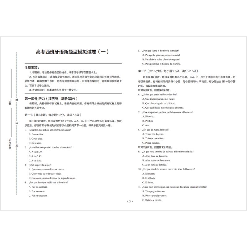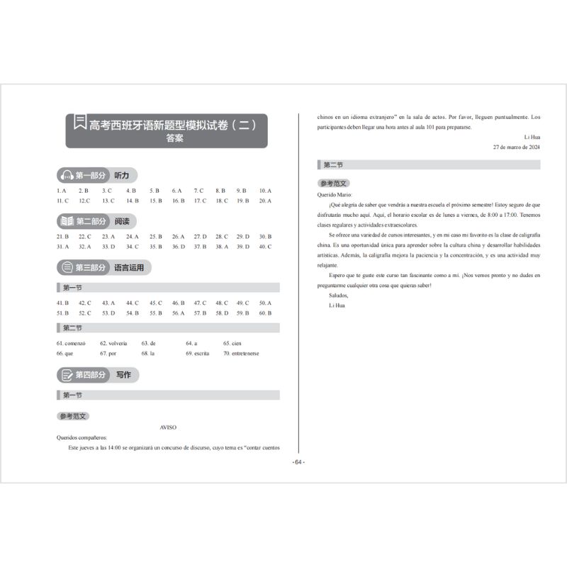 紧贴2024年高考新题型:针对最新发布的西班牙语高考新题型精心研制,内容权威、实用。