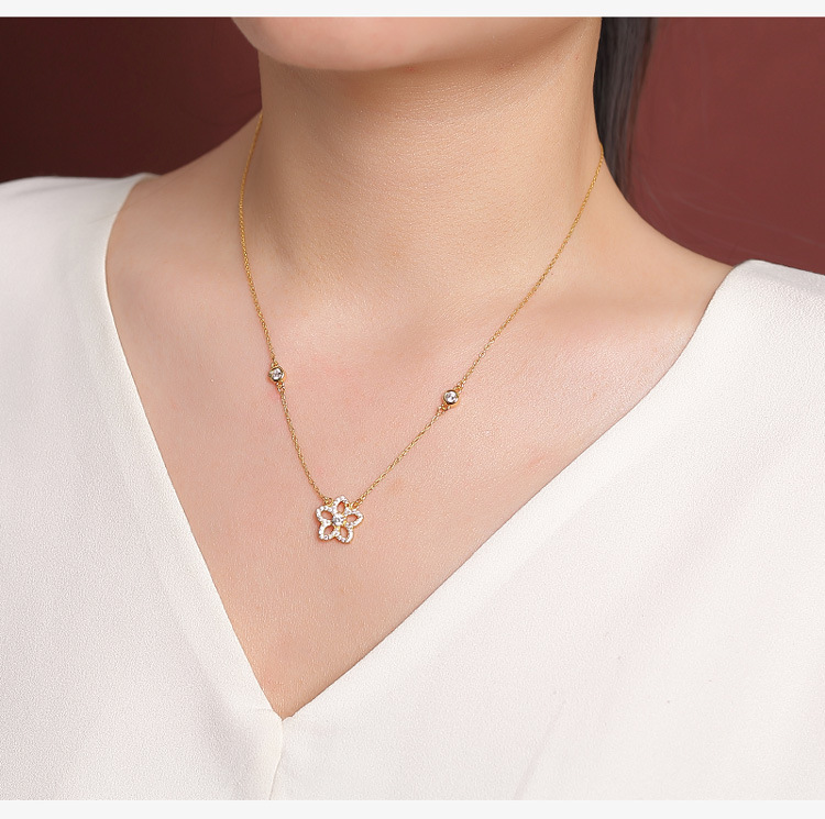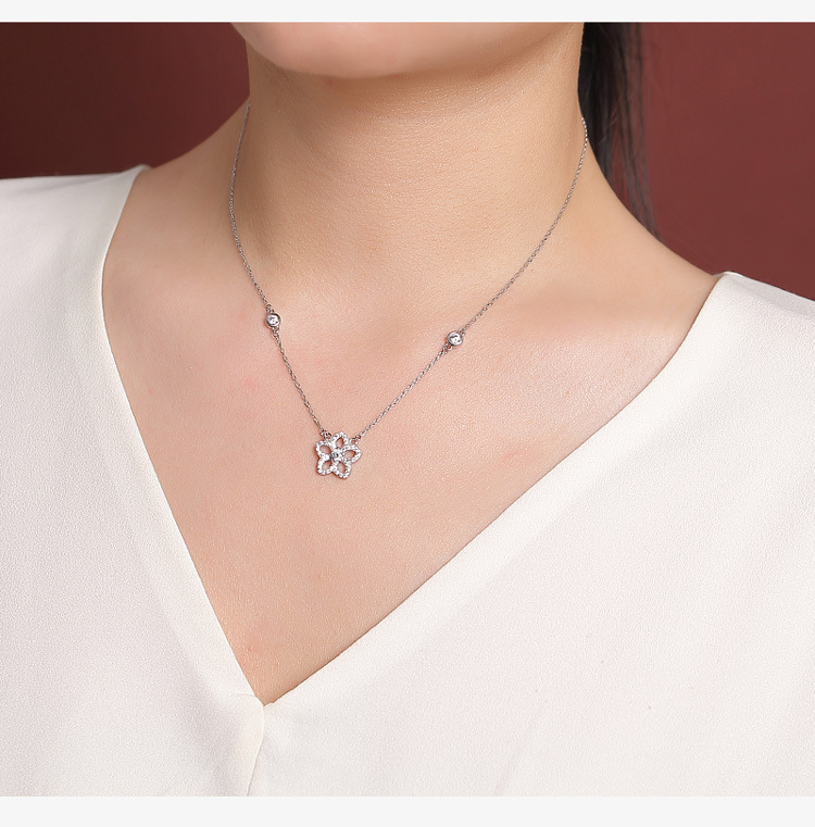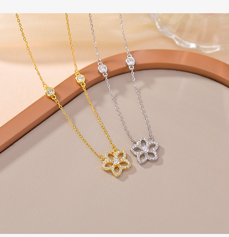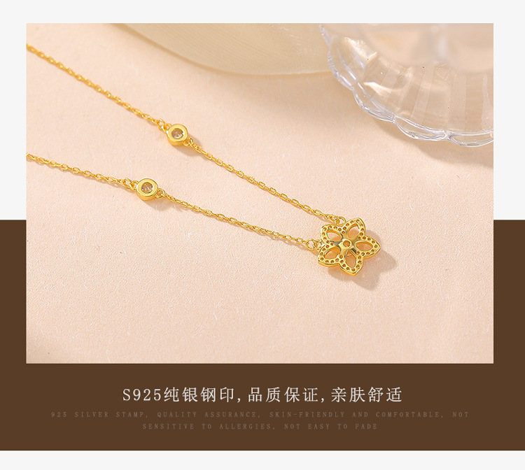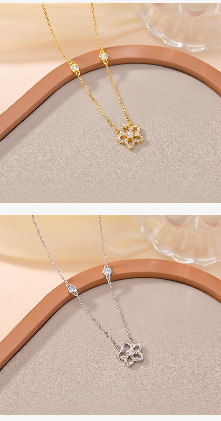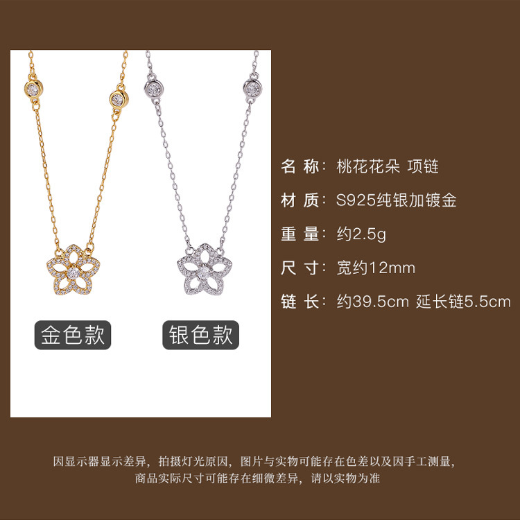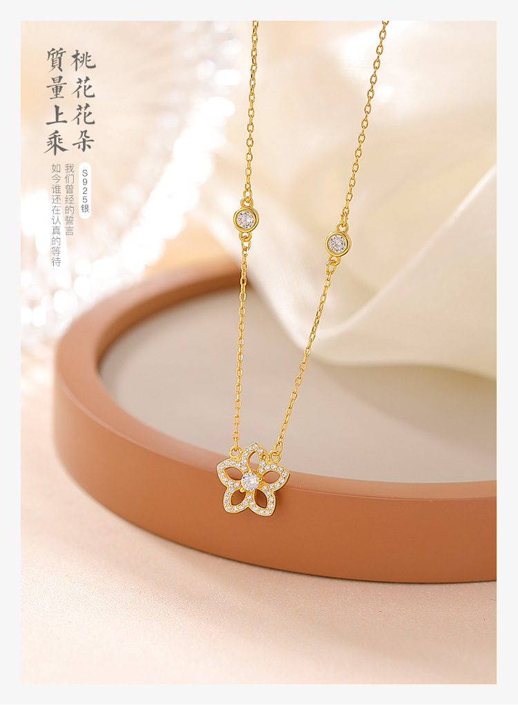【桃花缘】S925纯银镀金桃花吊坠项链套链【CW-XL00579】