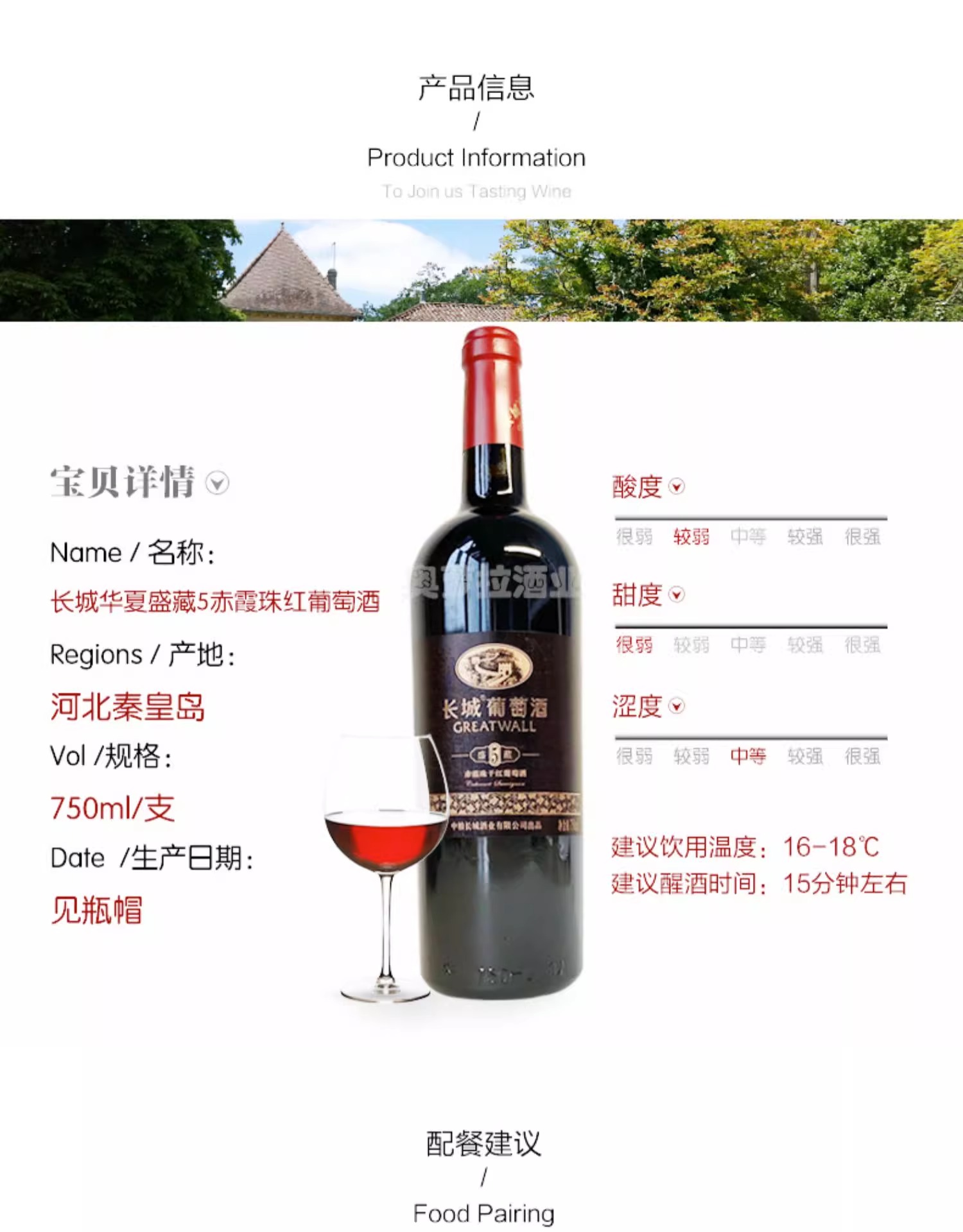 中粮长城特制3解百纳干红葡萄酒 750mL/瓶