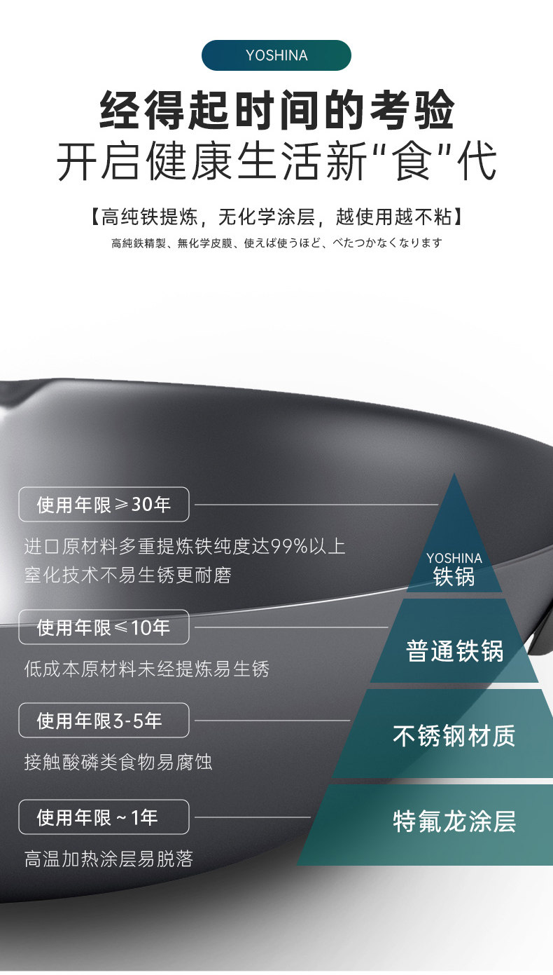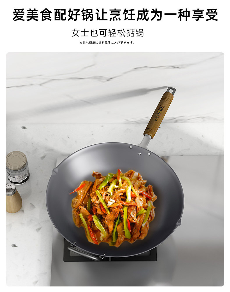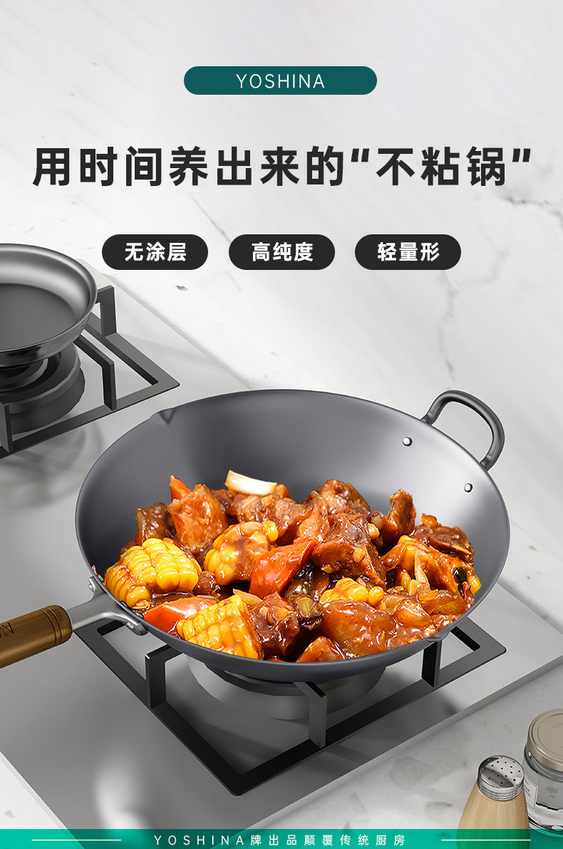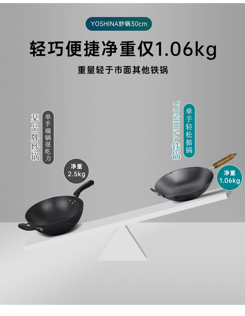 吉奈 日本纯铁铁锅30cm(带锅盖)