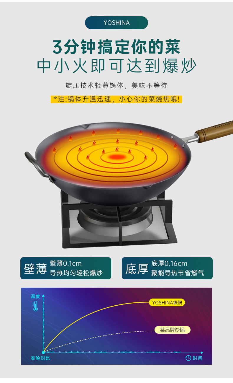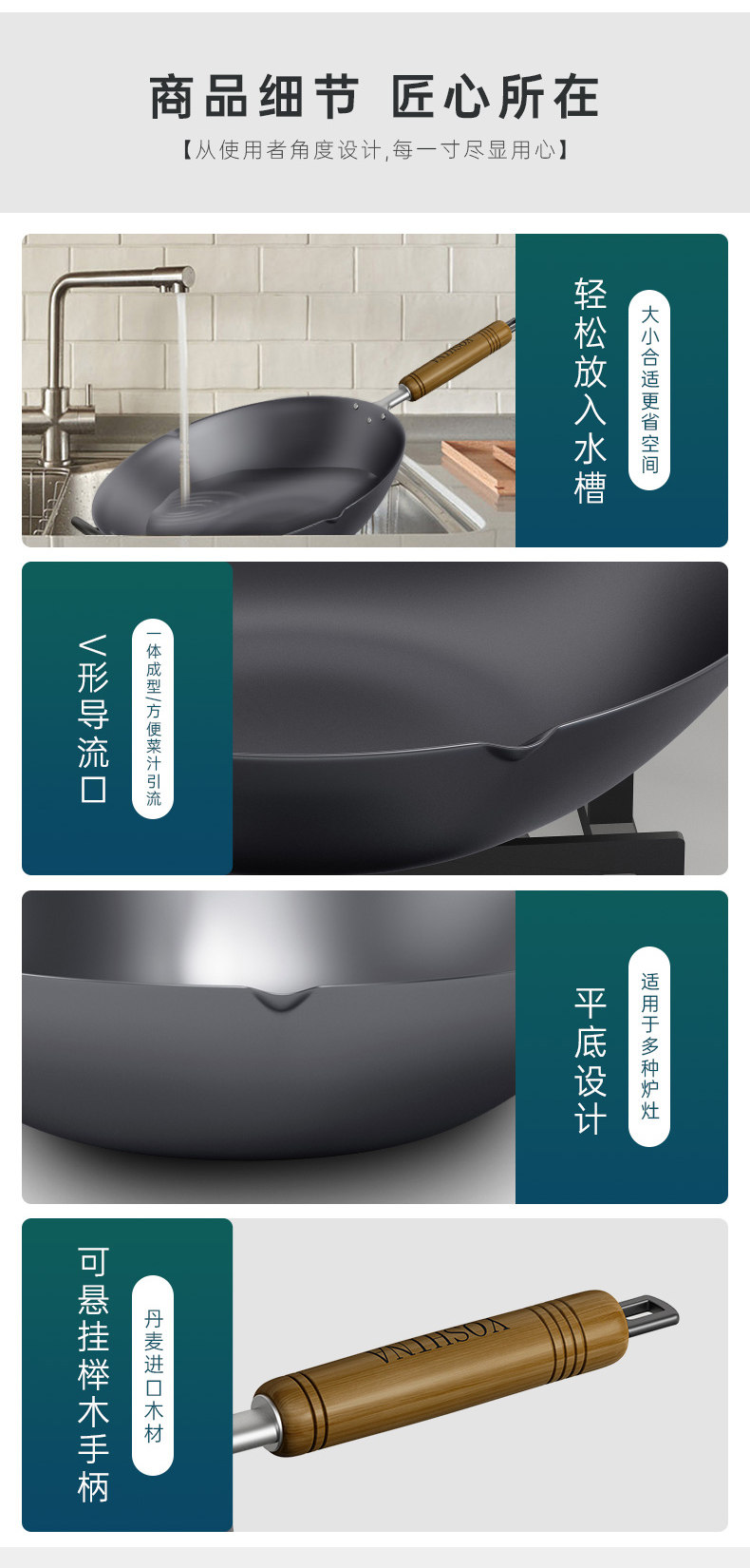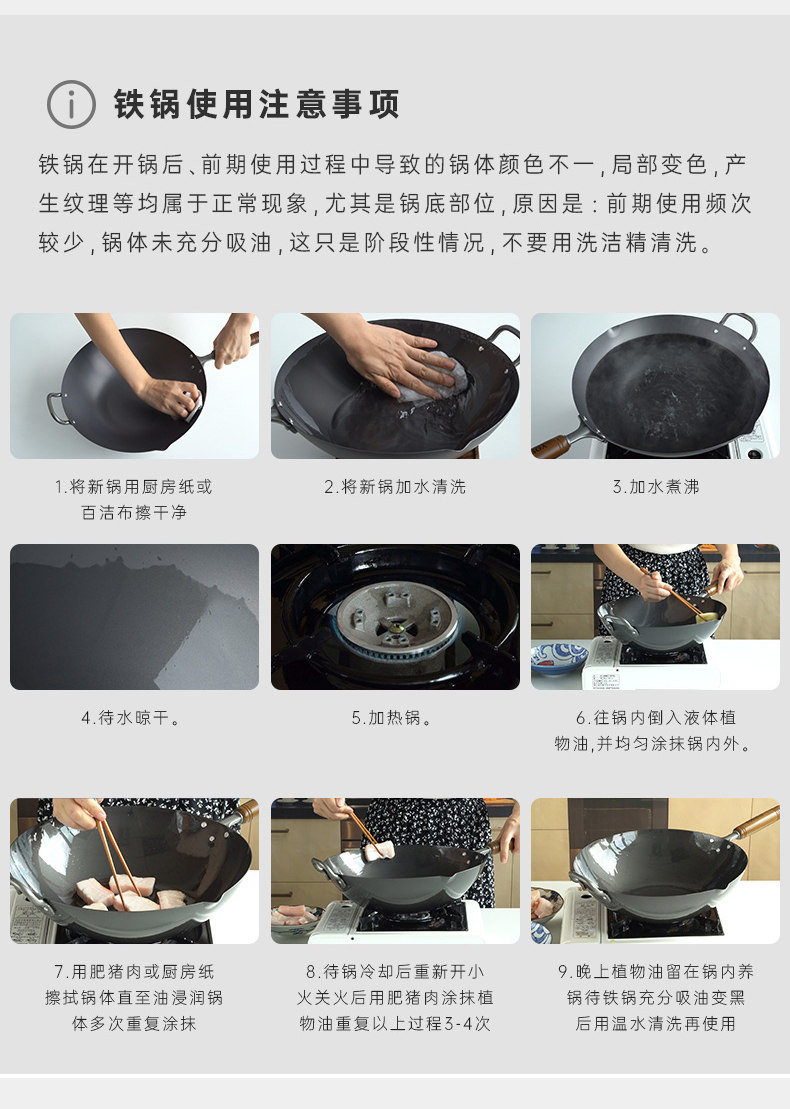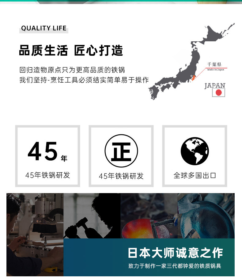 吉奈 日本纯铁铁锅30cm(带锅盖)