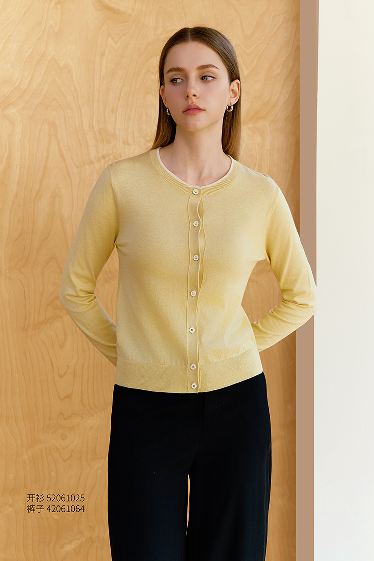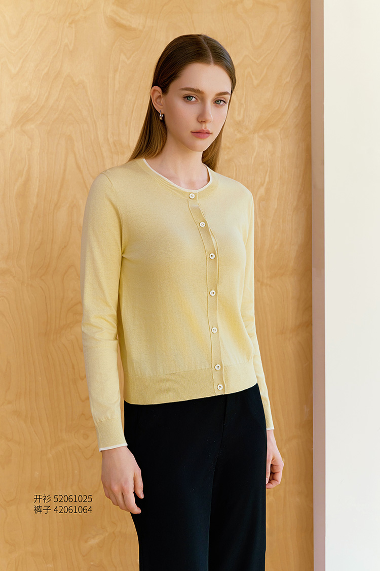 【圆领针织开衫】26年春夏新品女士撞色棉质开衫外套