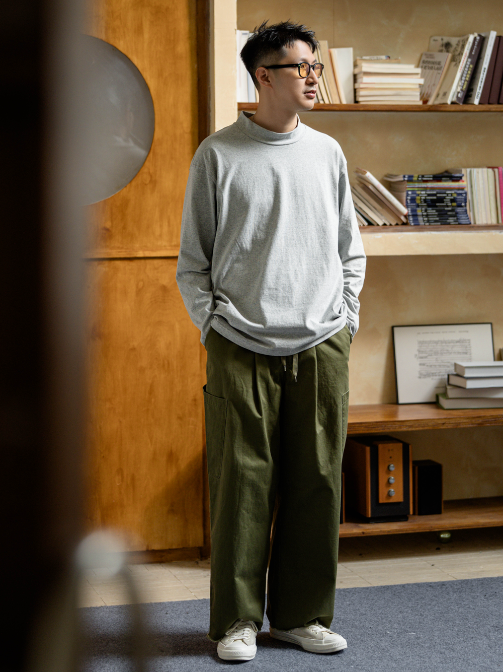 GYOZA PASTA/GP25AW-C051/纯棉半高领长袖T恤卫衣打底衫270g