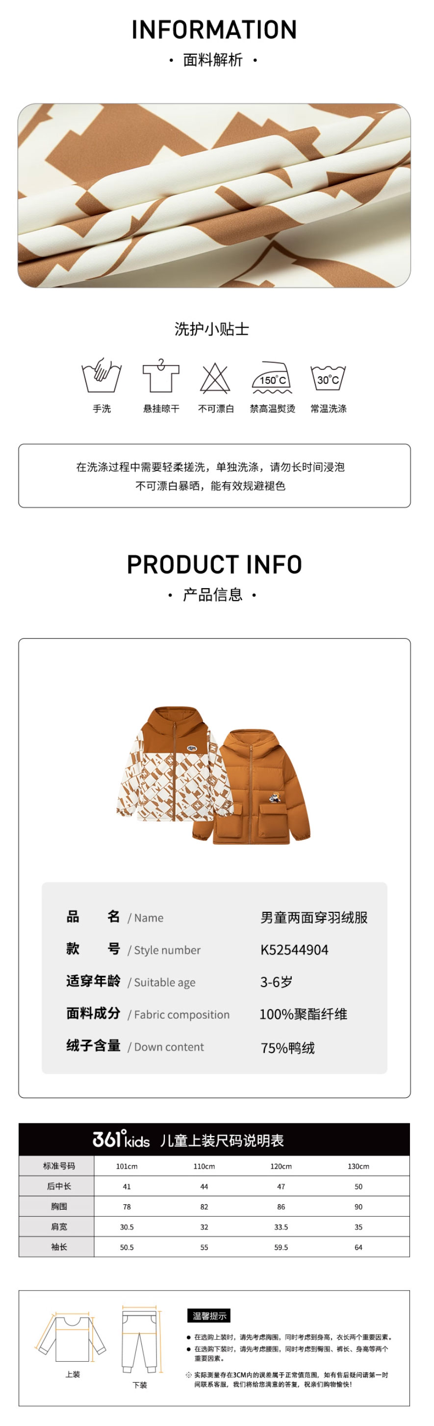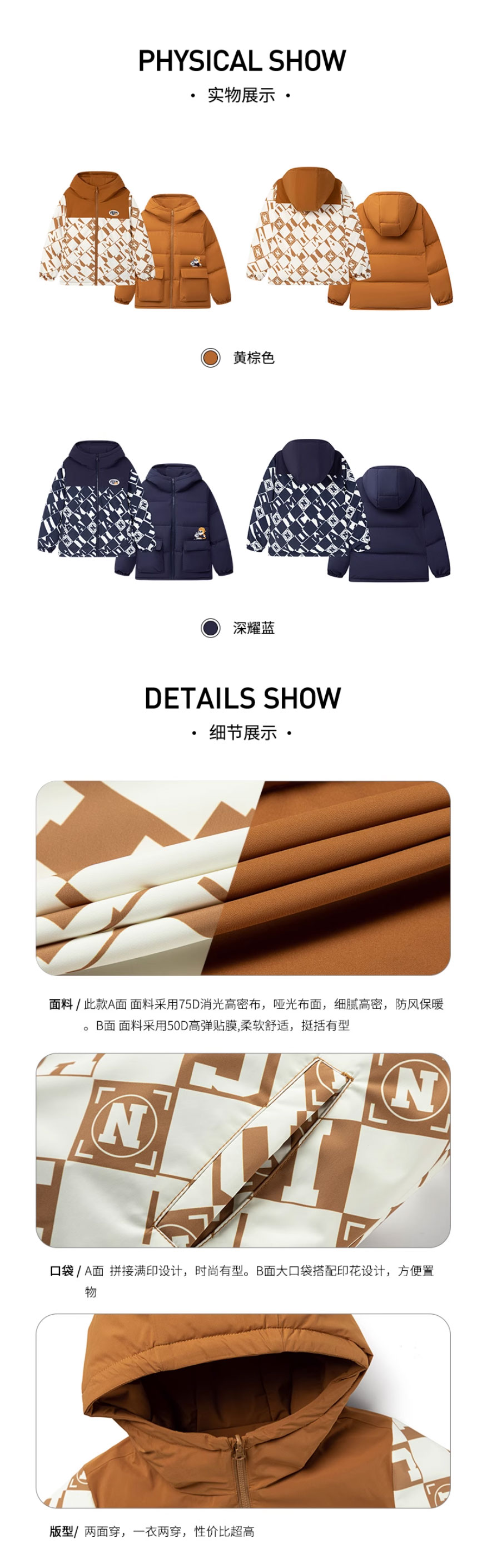 361度男童连帽羽绒服新品2025冬两面穿保暖外衣K52544904-2
