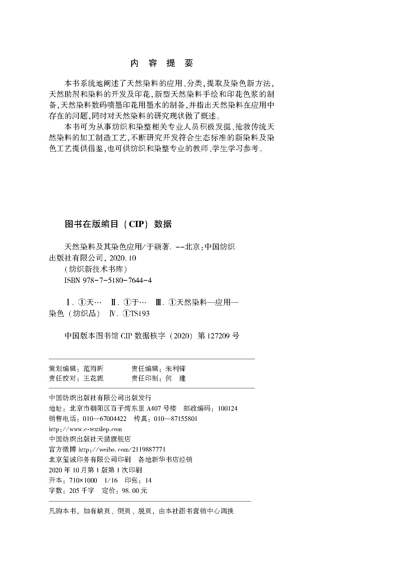 2020新书 天然染料及其染色应用 于颖 天然染料纺织印染业应用技术书籍 天然染料开发设计生产加工设计书籍天然染料配方设计加工书