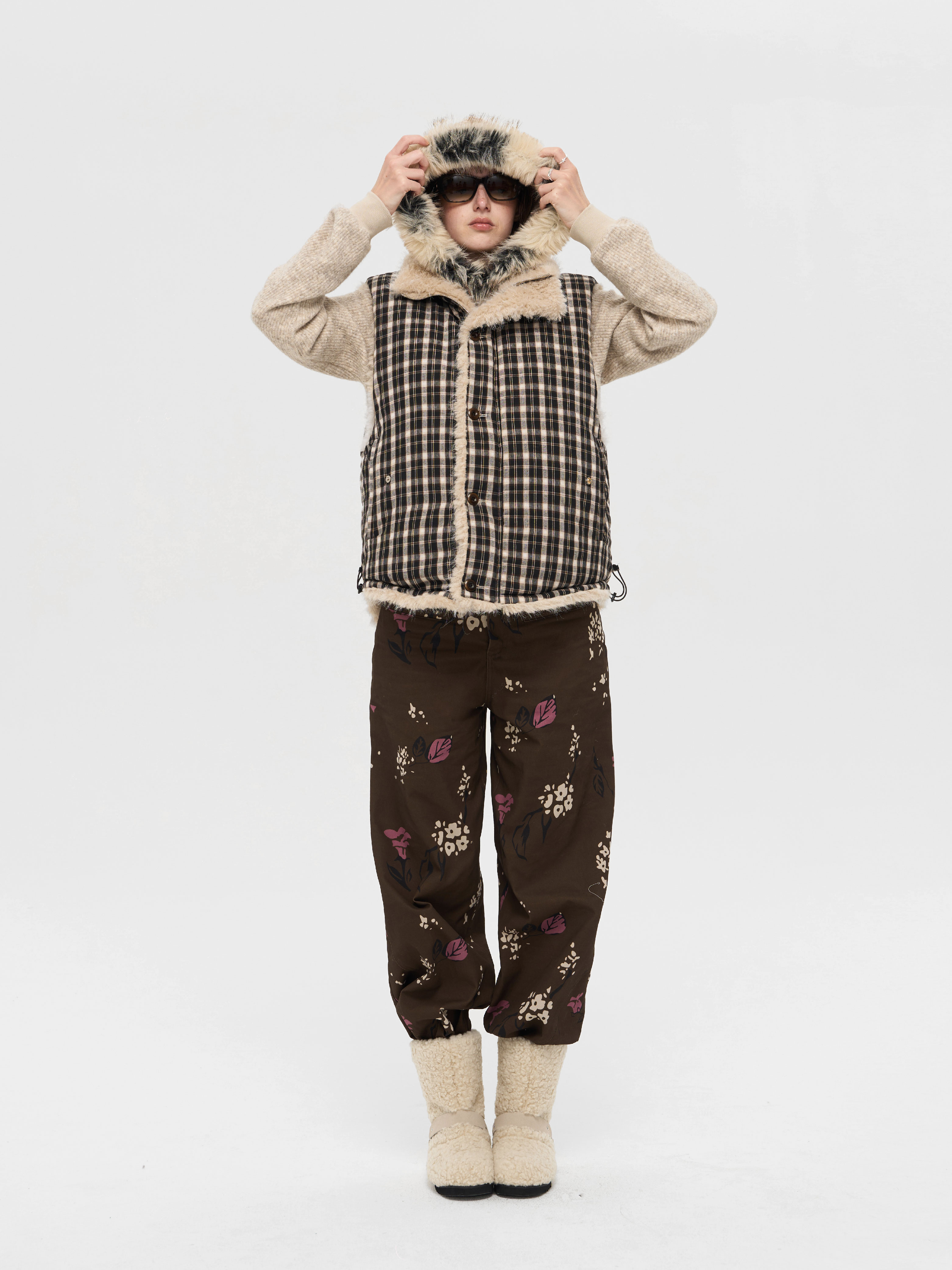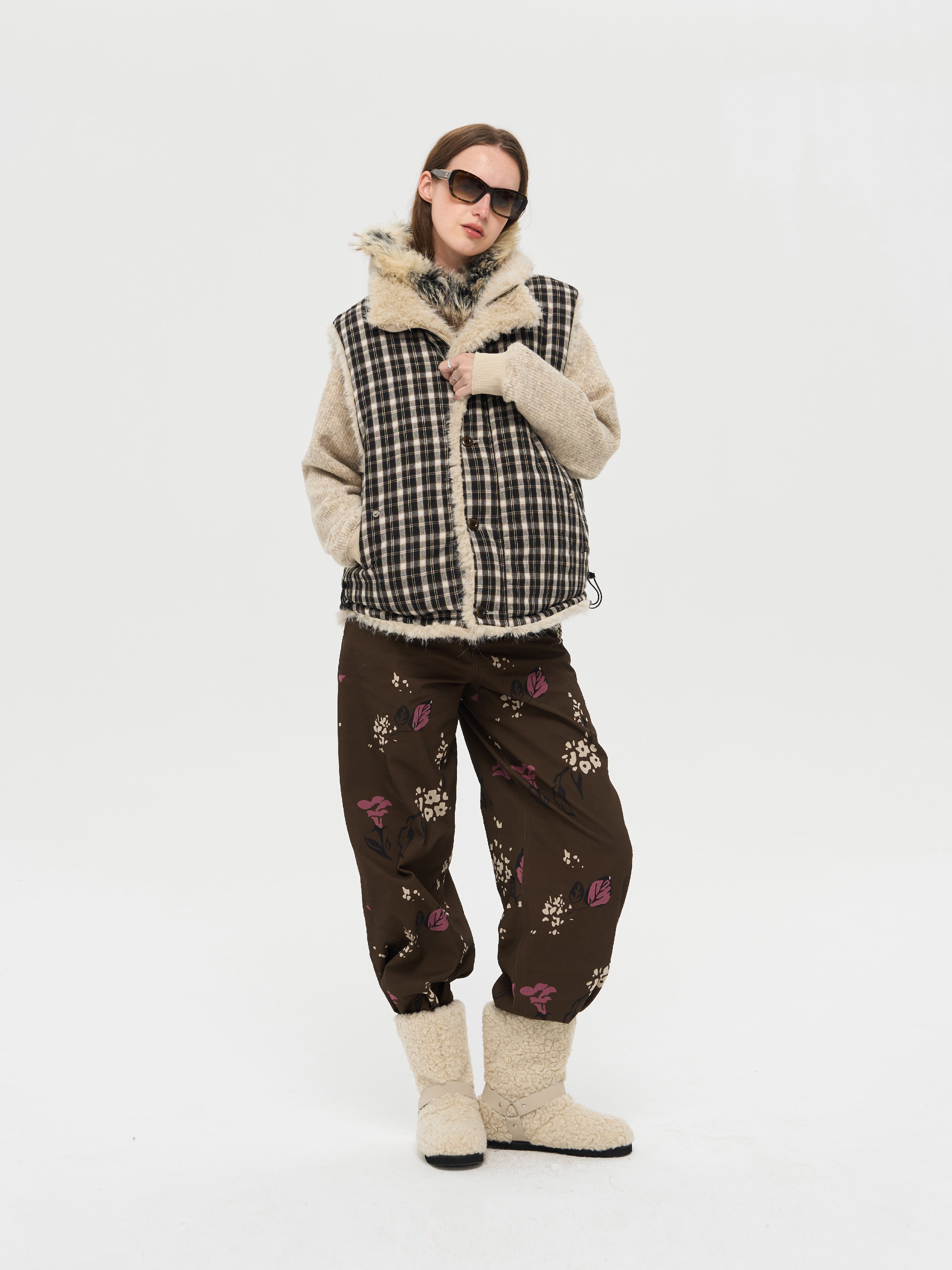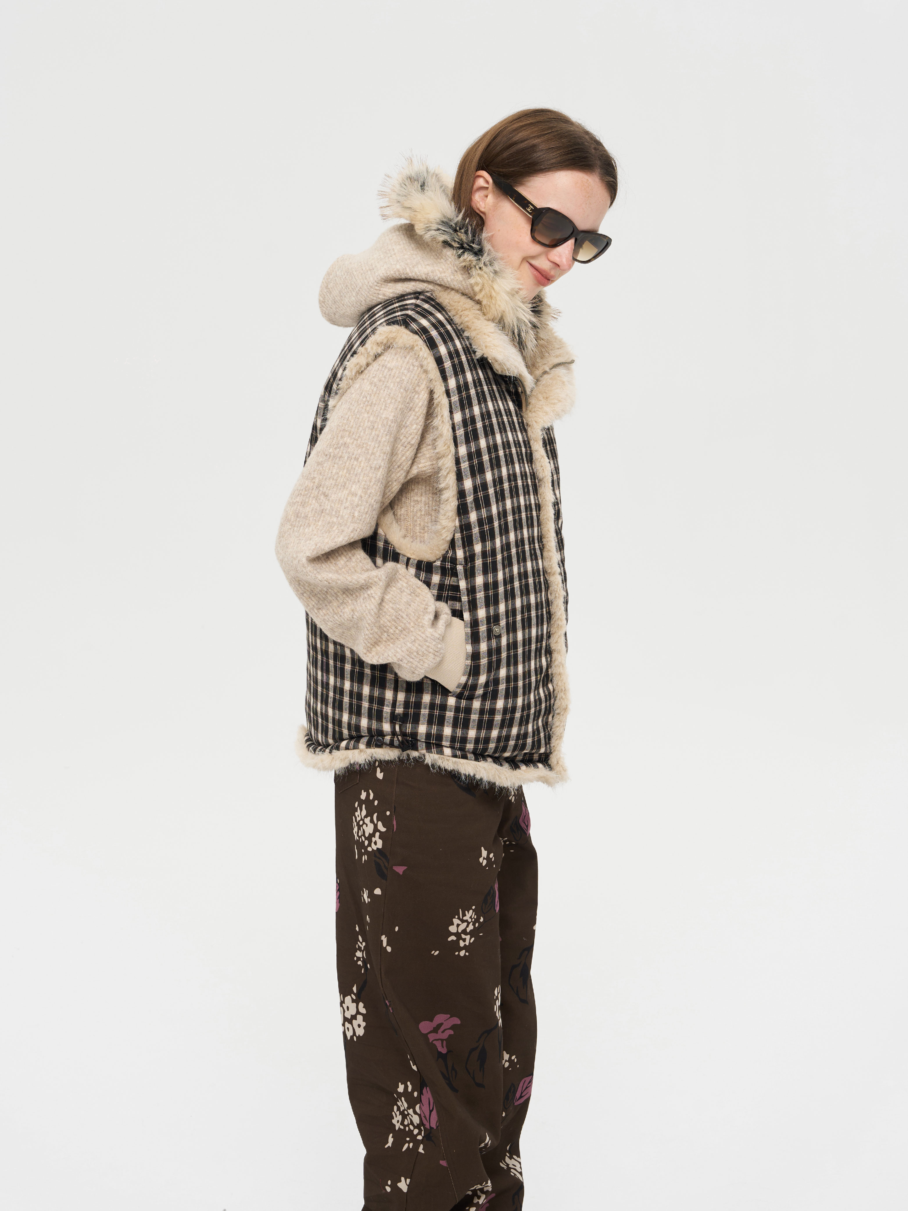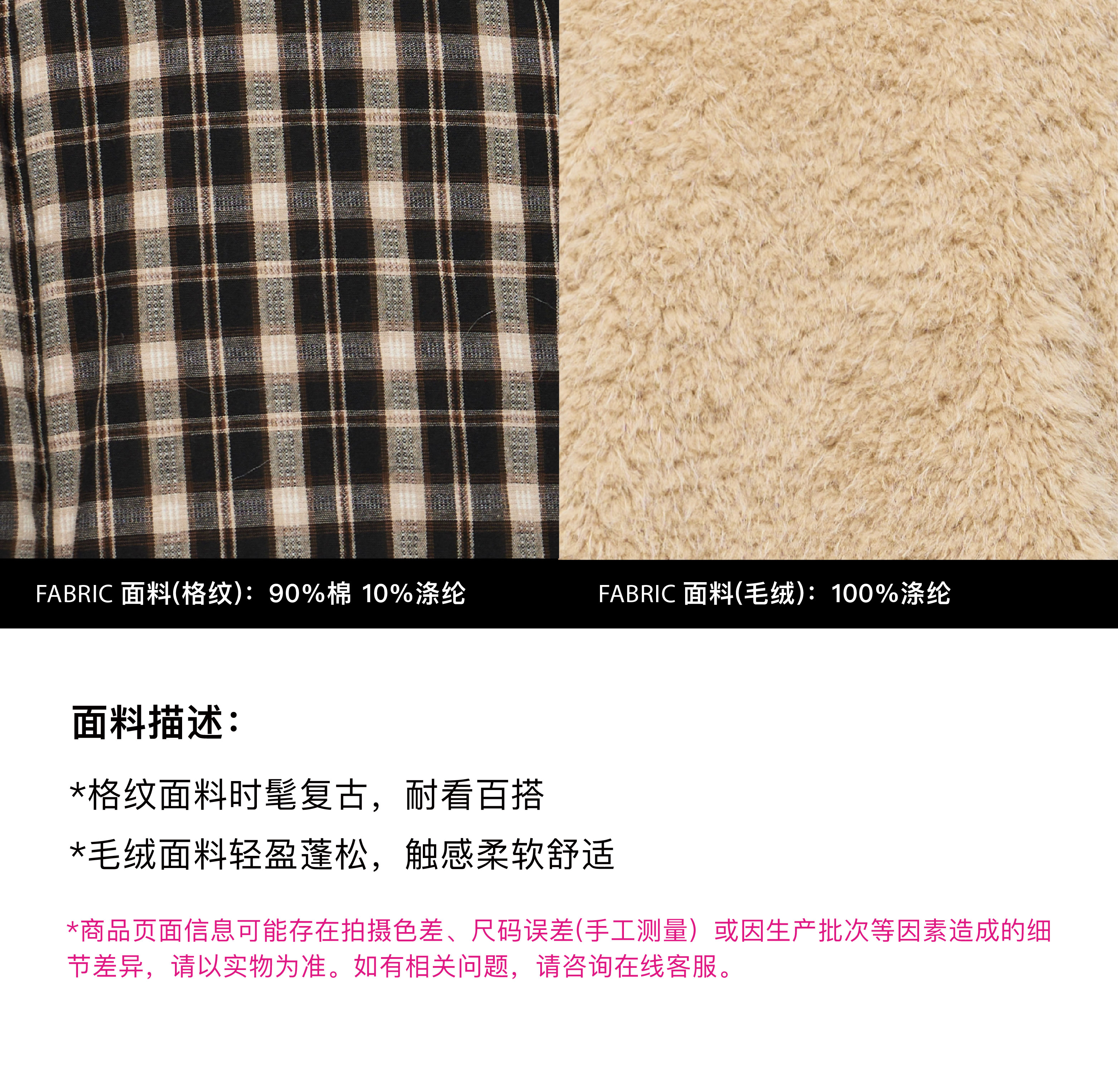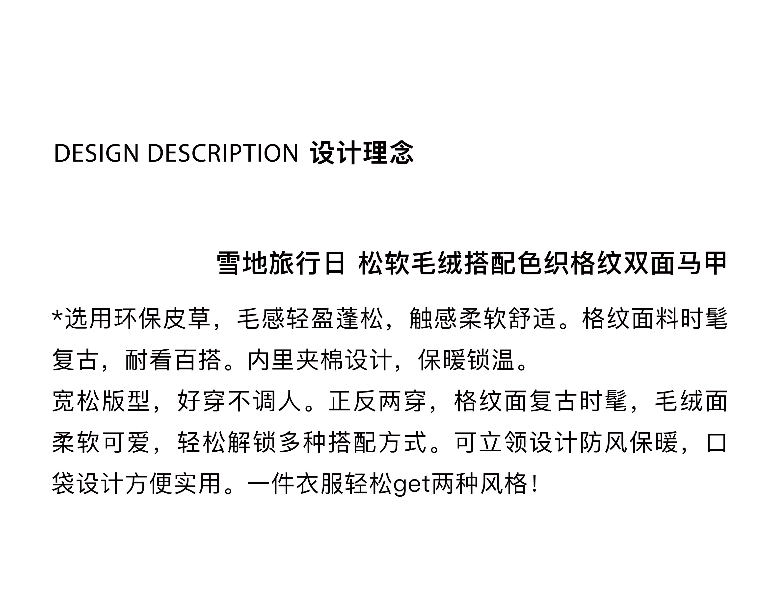 local tag/lt25awk53/雪地旅行日 松软毛绒搭配色织格纹夹棉双面马甲