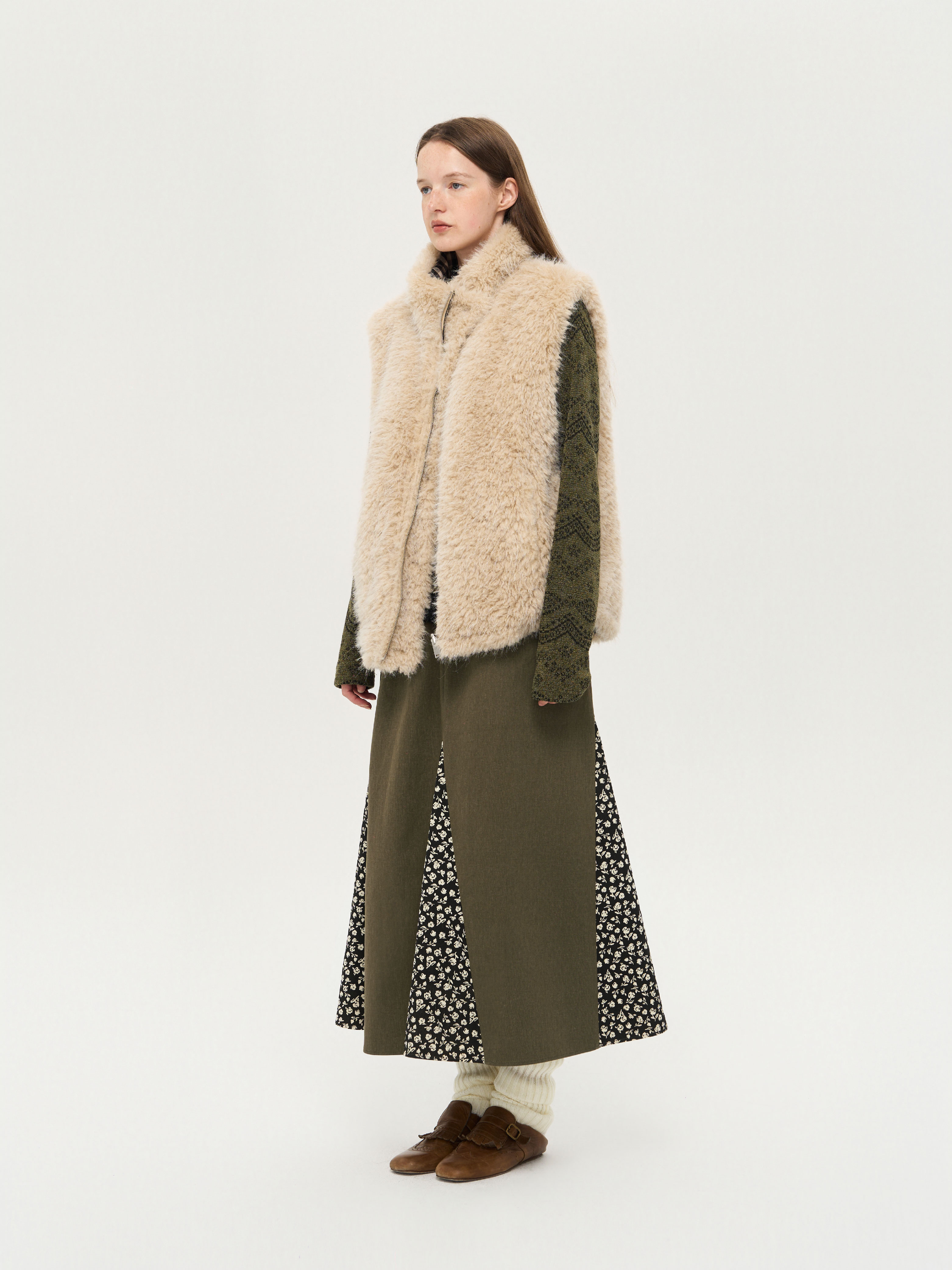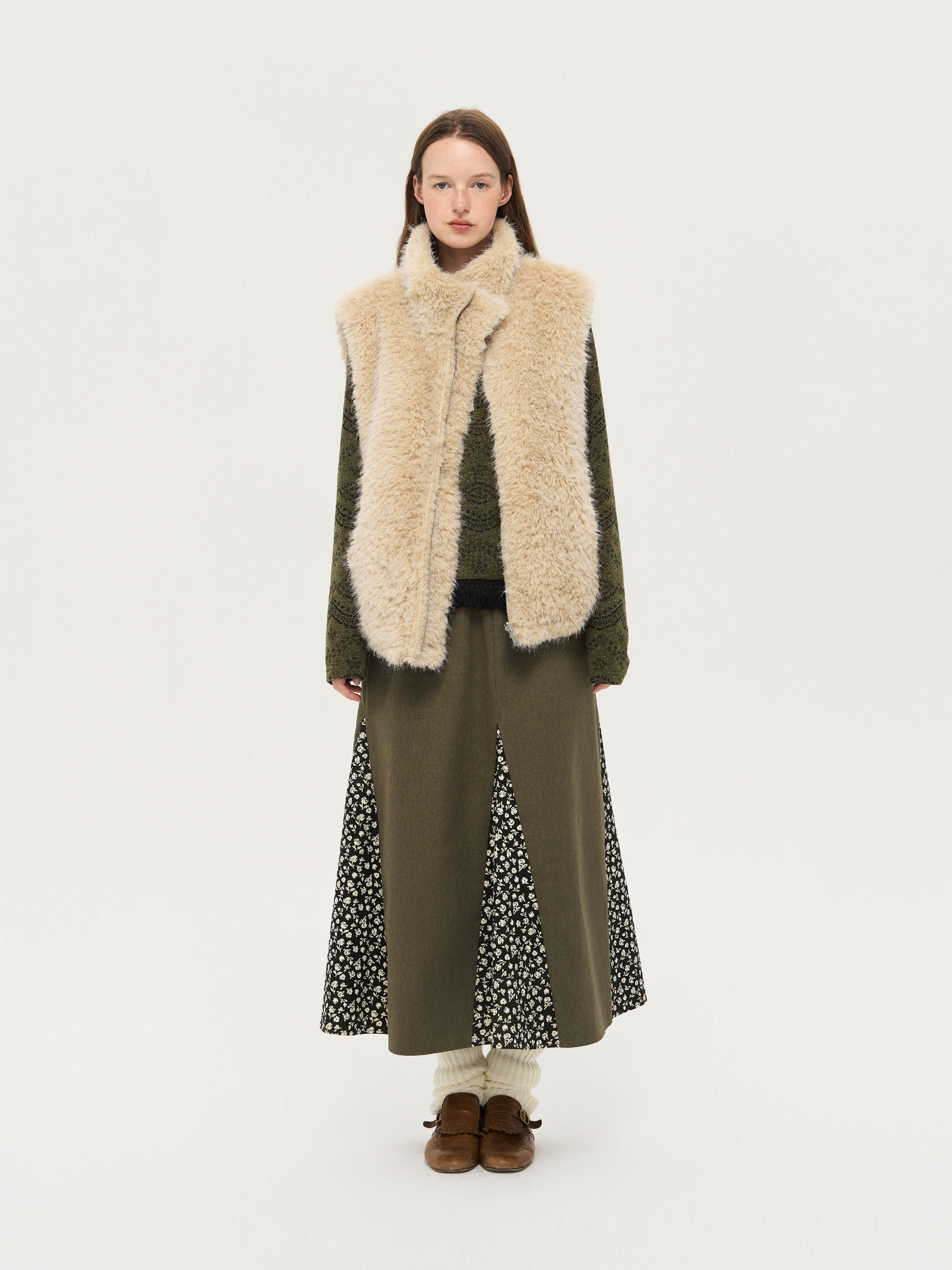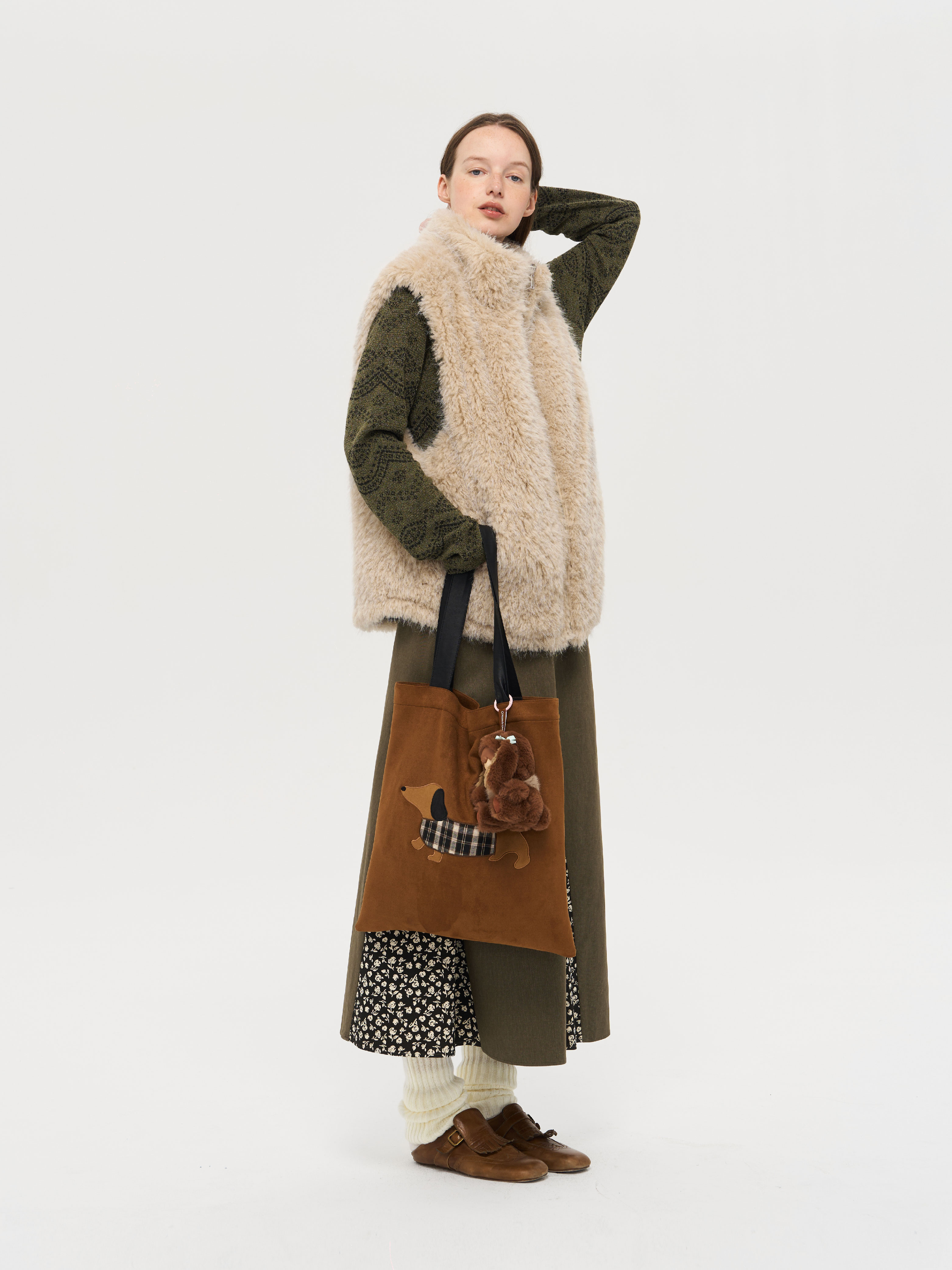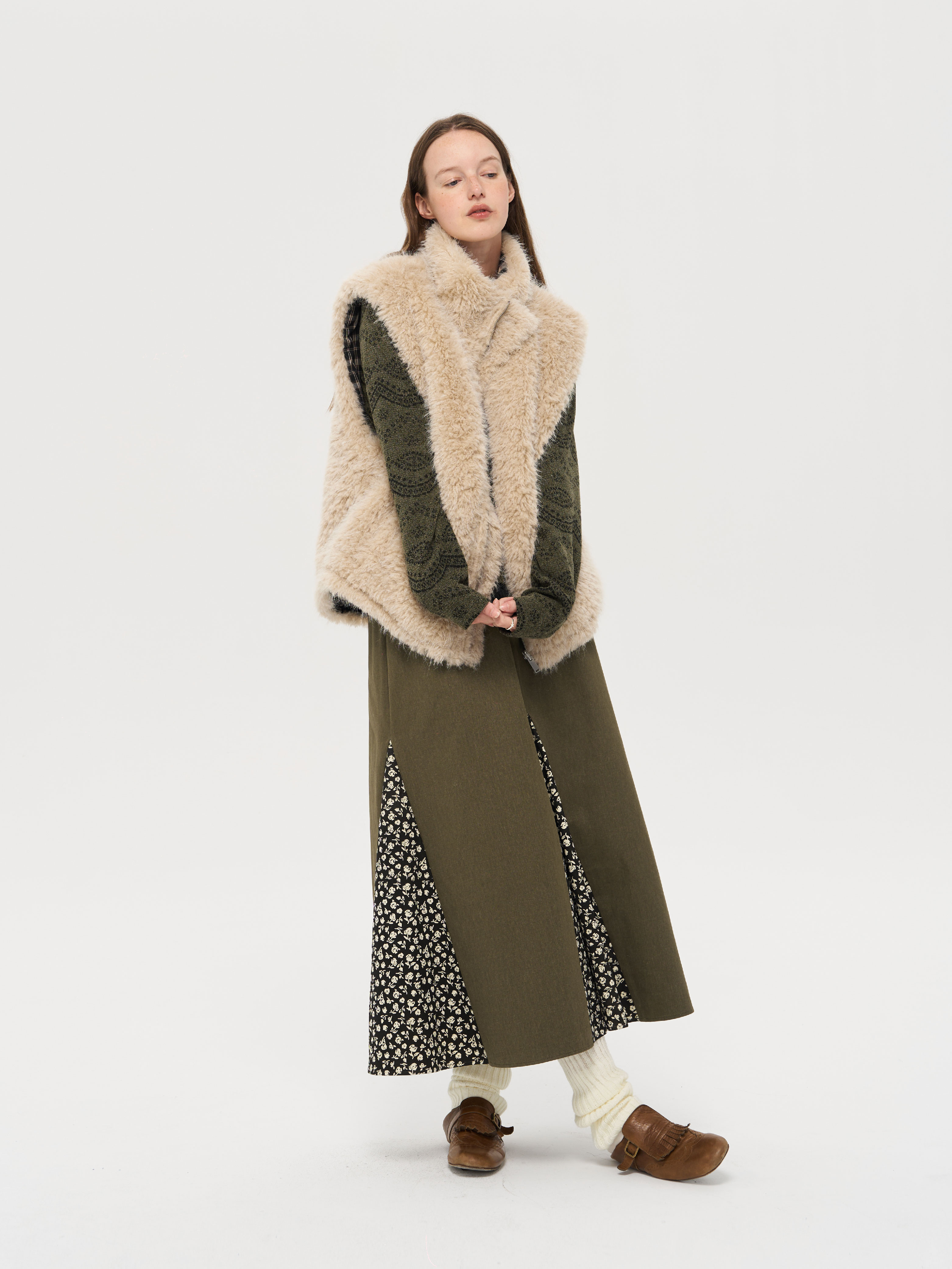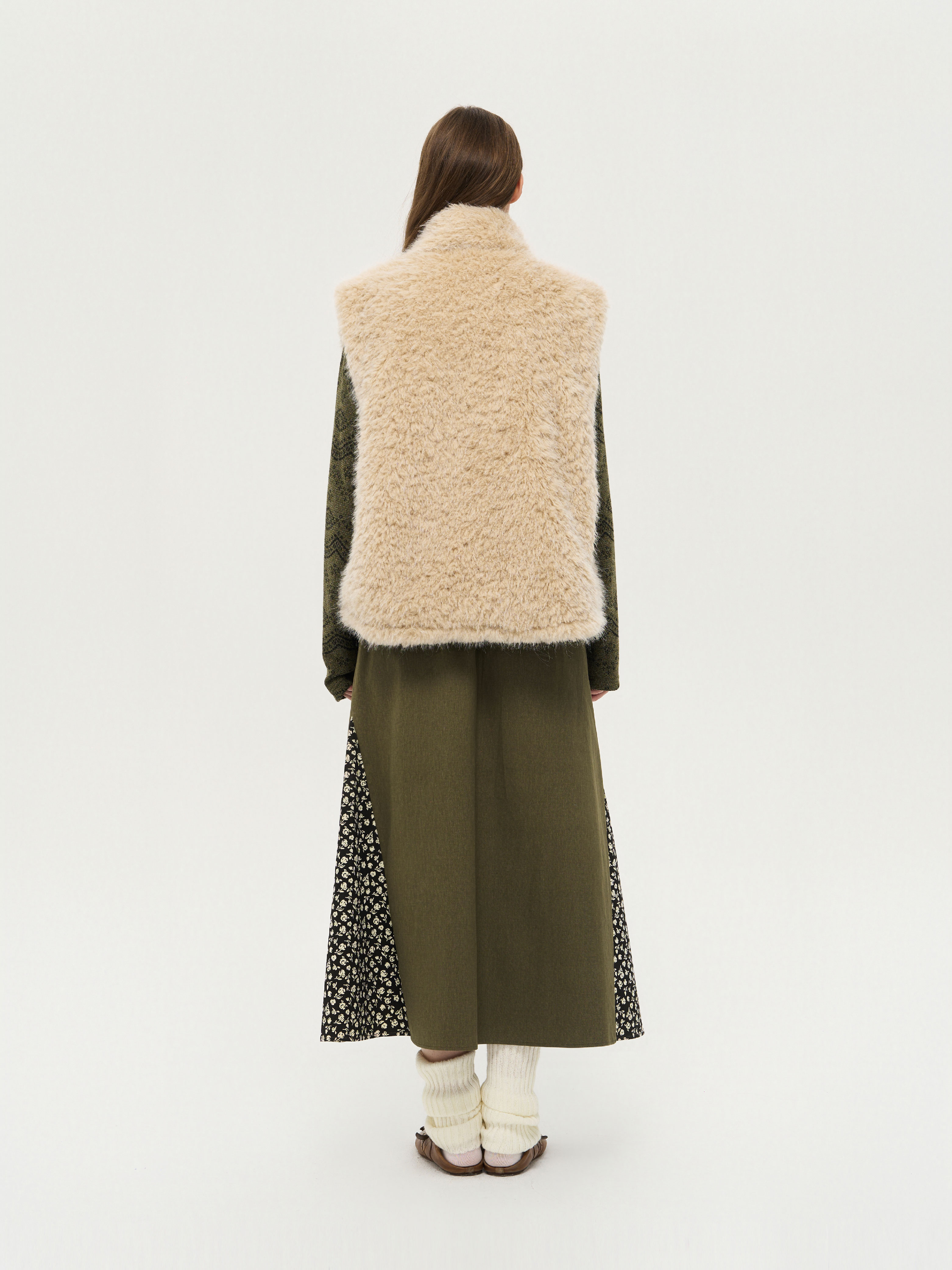 local tag/lt25awk53/雪地旅行日 松软毛绒搭配色织格纹夹棉双面马甲