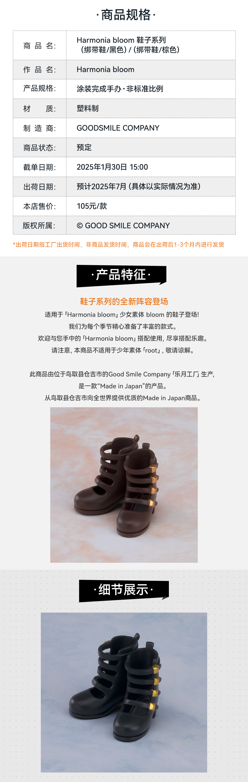 【GSC现货】Harmonia bloom 鞋子系列 绑带鞋 黑色/棕色