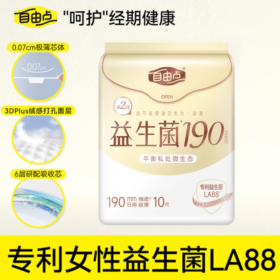 自由点益生菌190mm日用卫生巾十片装-5122下单送独立包装体验装一片