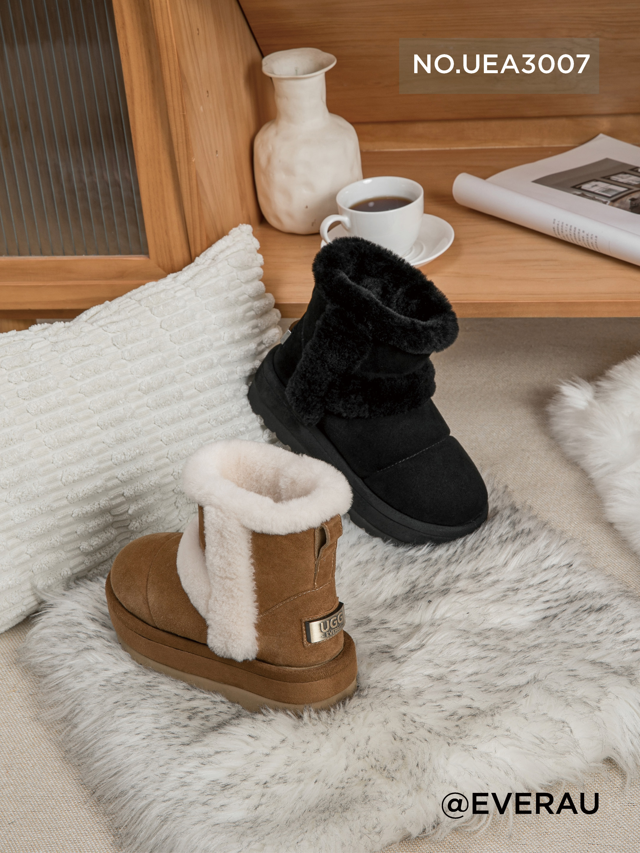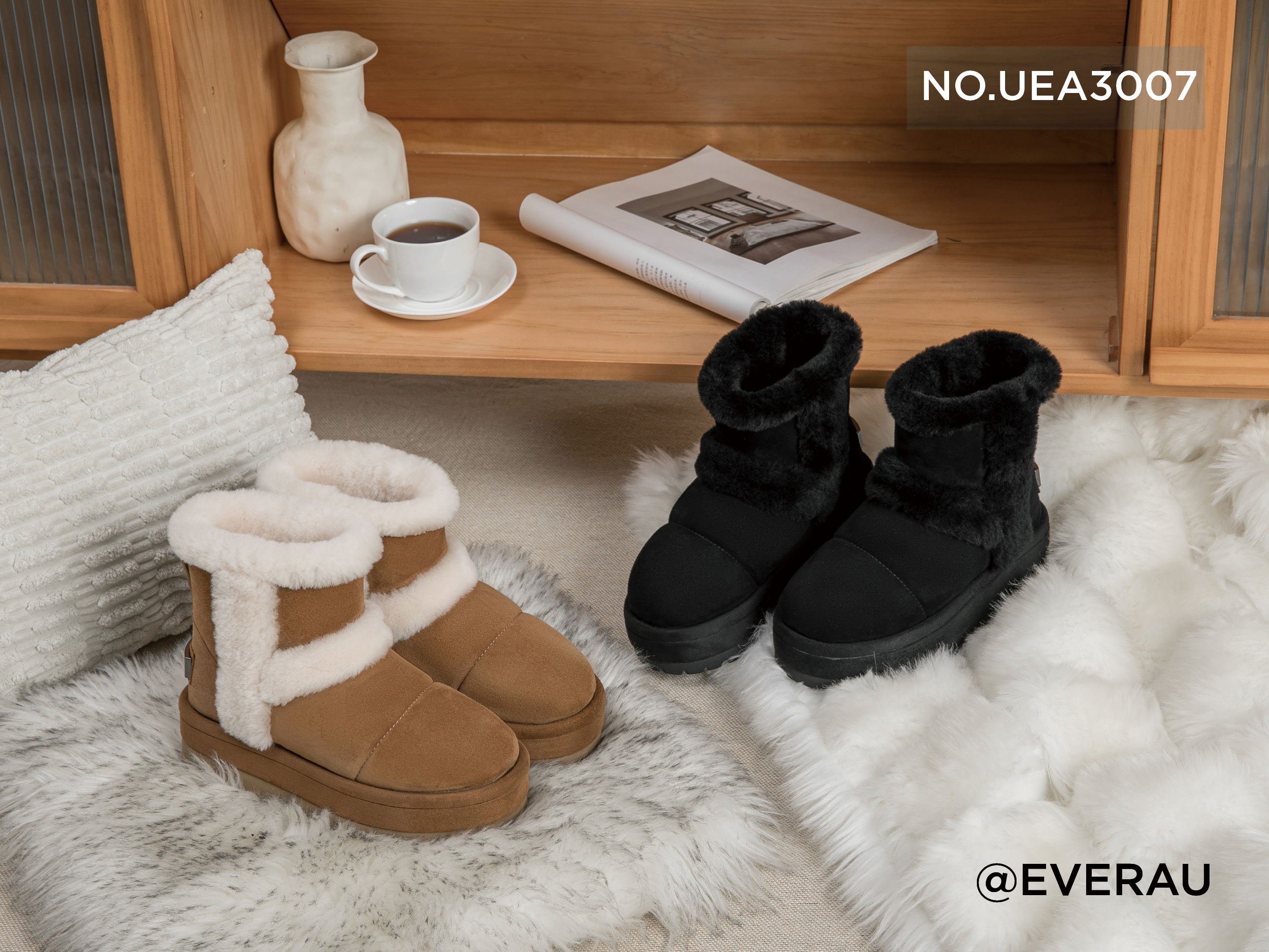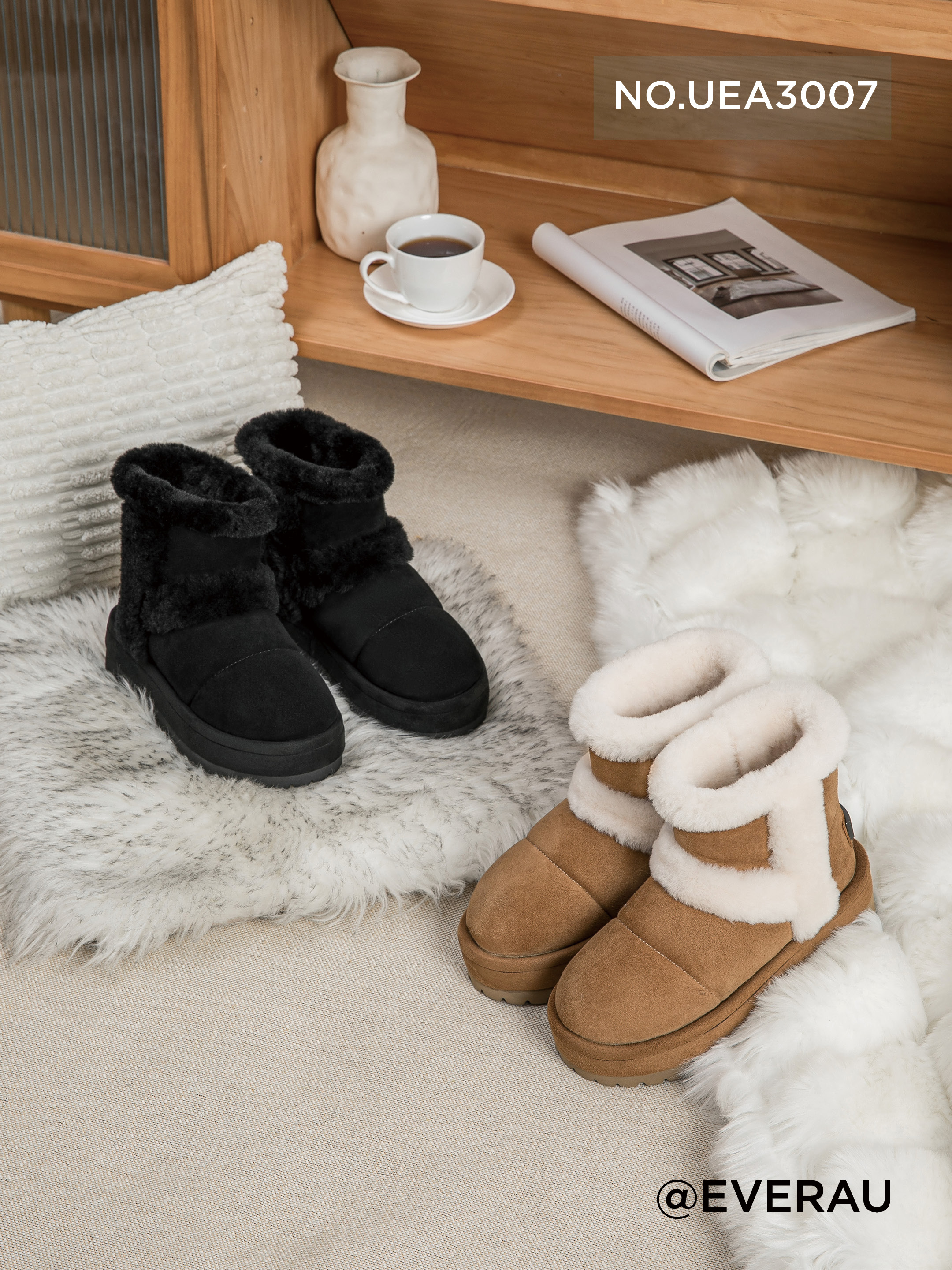 鞋面:牛二层+羊猄 内里:羊皮毛一体 大底:EVA 底厚:5cm