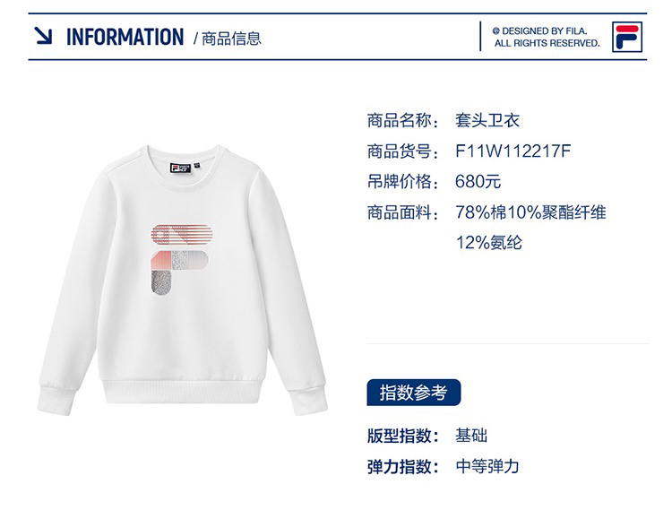 FILA斐乐卫衣女子休闲宽松圆领运动针织套头衫