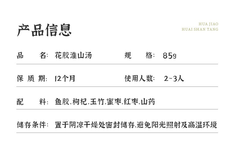 【鱼胶山药汤包】滋阴养颜,虚不受补,清火护肝肾;健脾祛湿!85g*3包