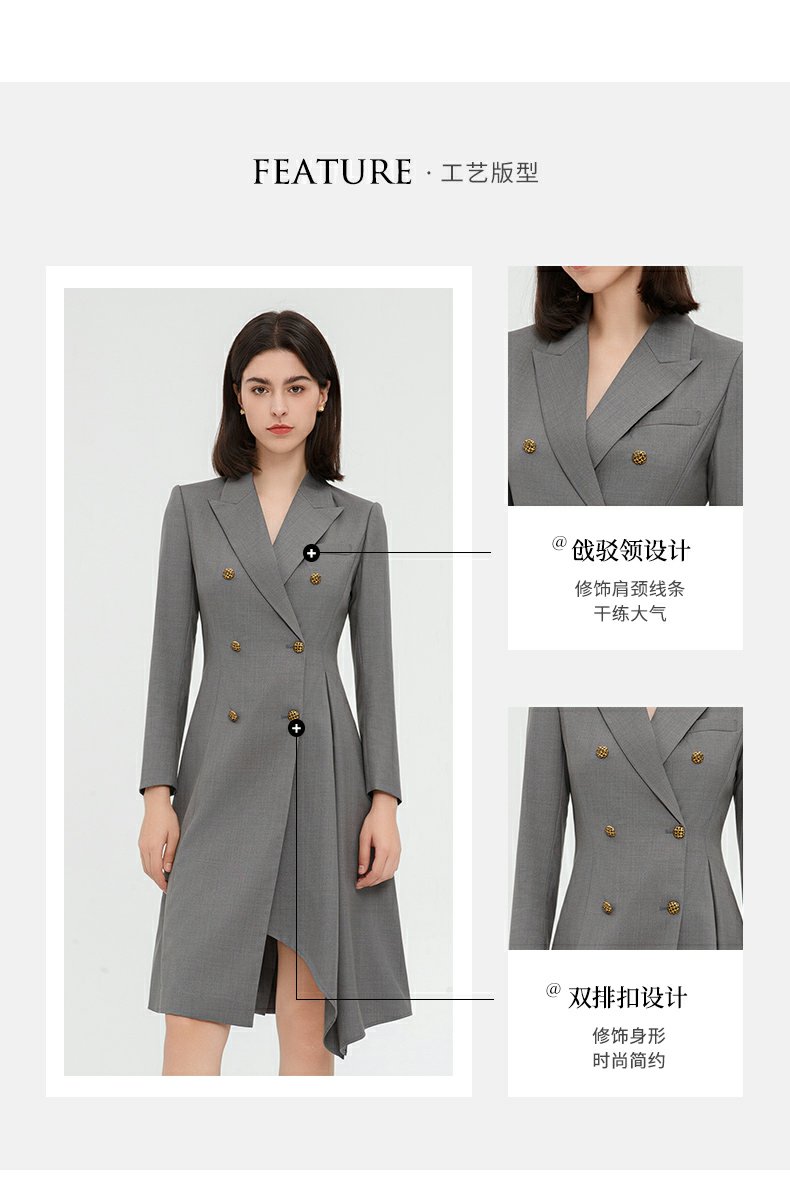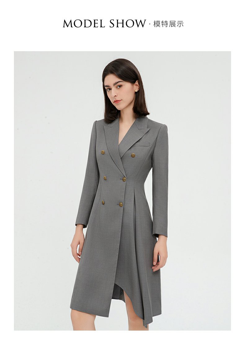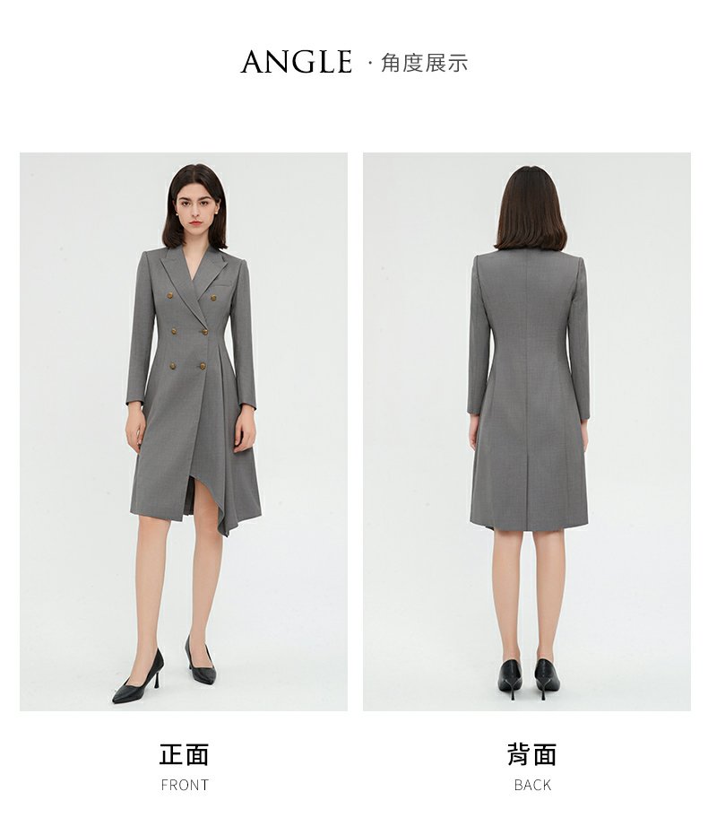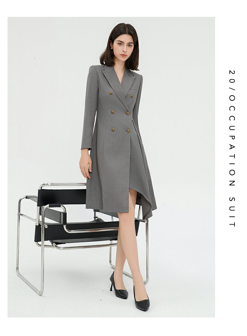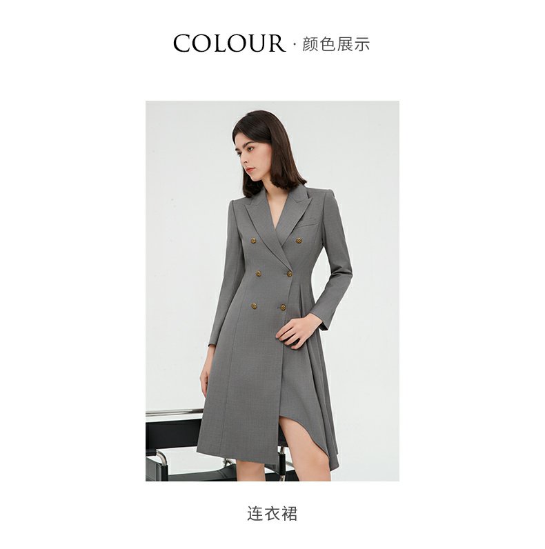 IWY/灰色西装连衣裙女双排扣设计感售楼部前台工作服商务正装Q13326