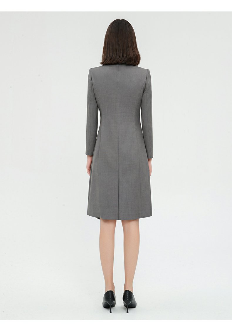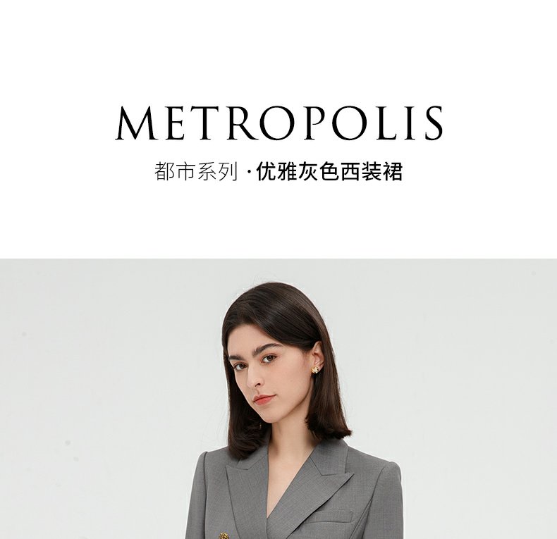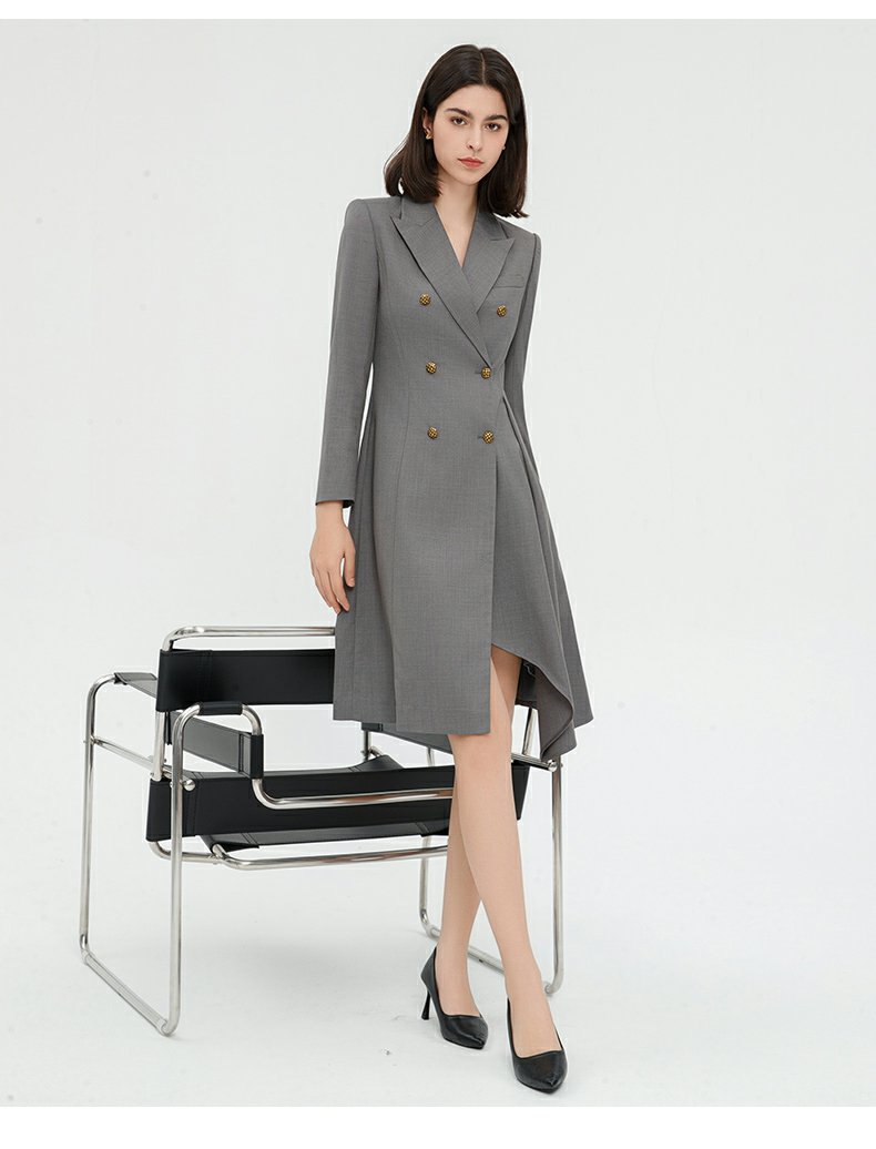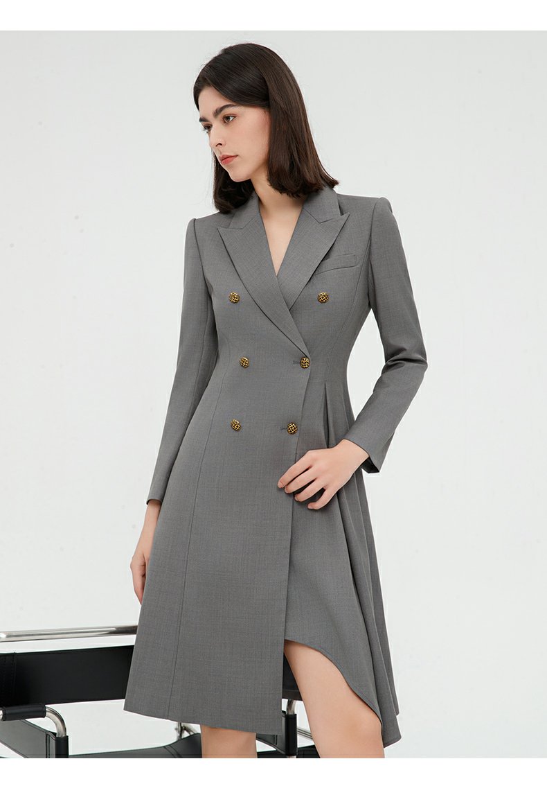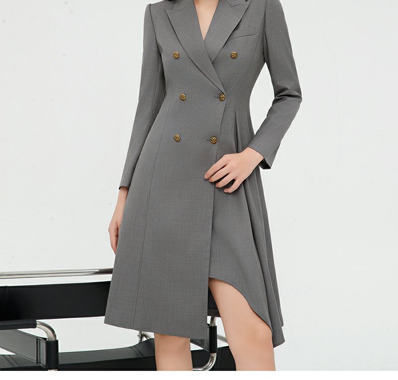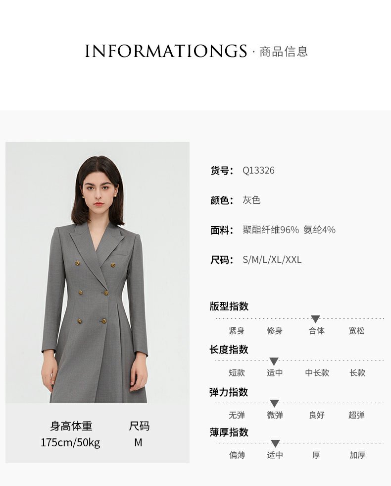 IWY/灰色西装连衣裙女双排扣设计感售楼部前台工作服商务正装Q13326
