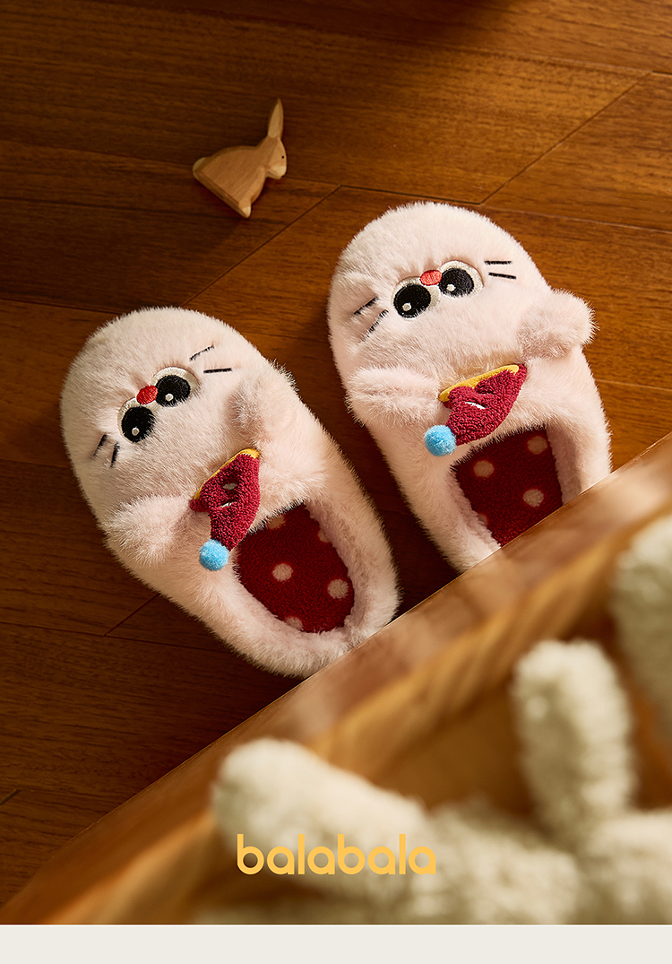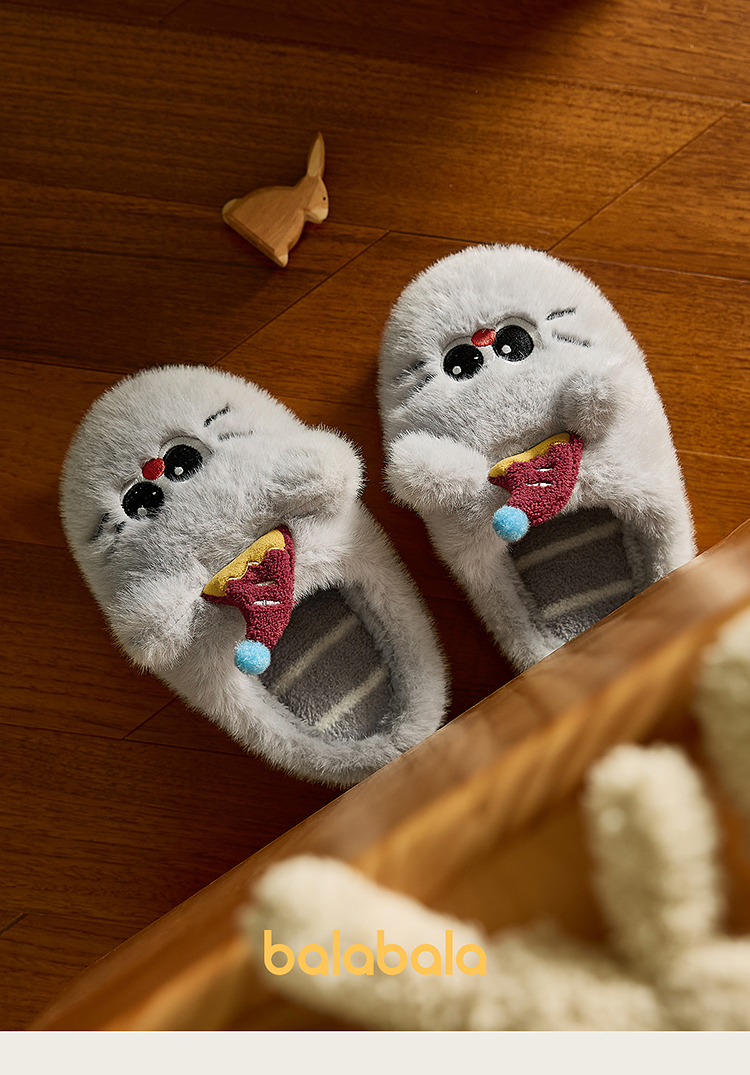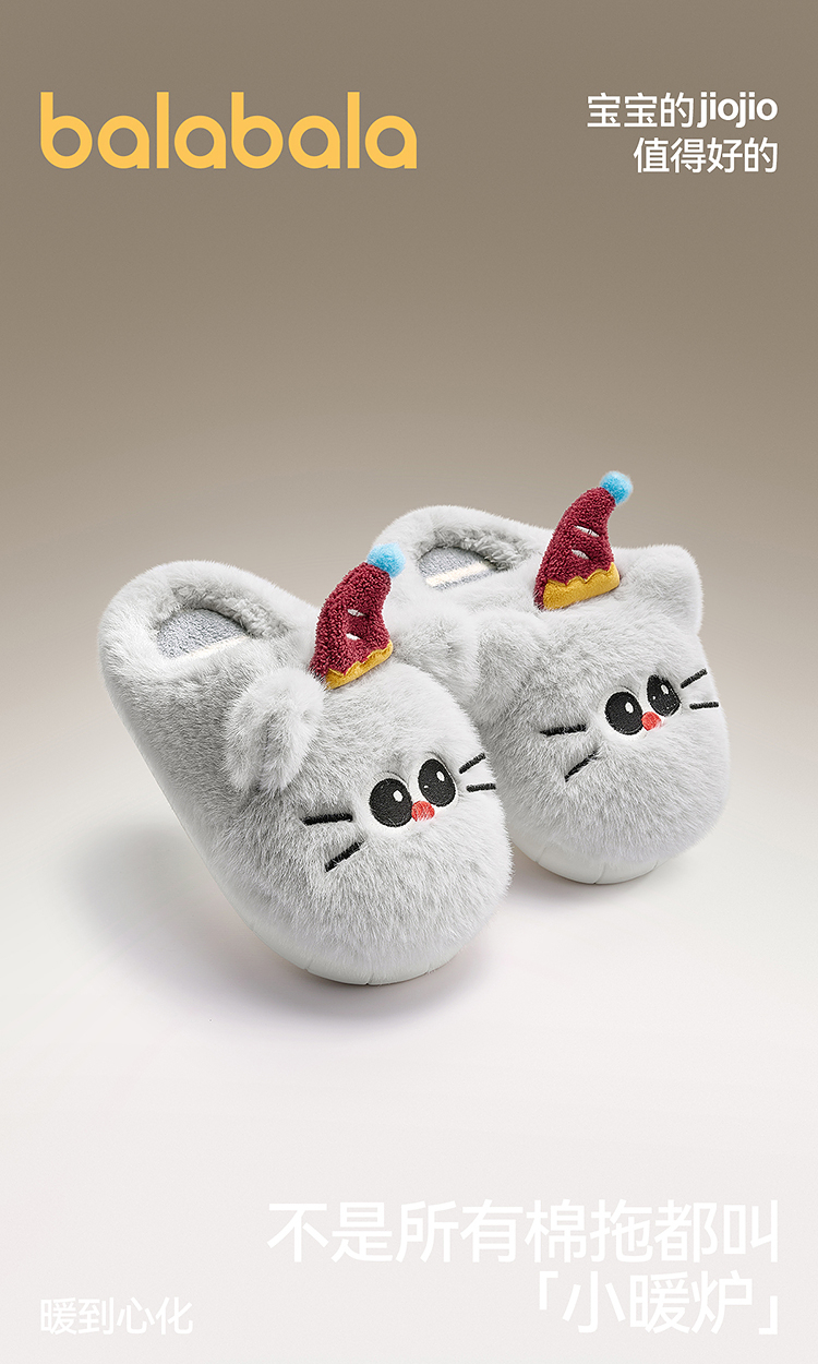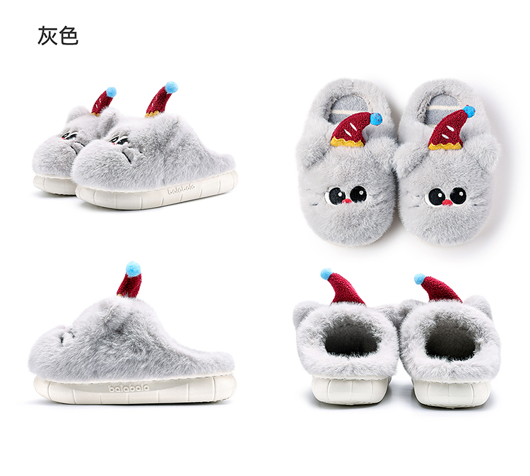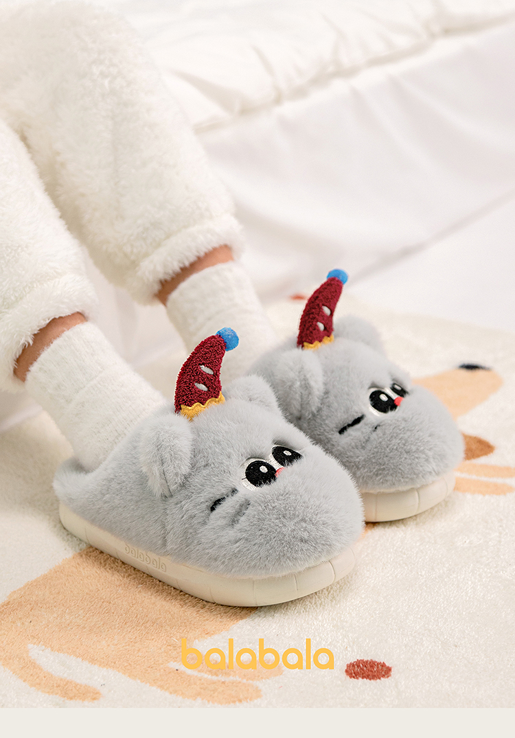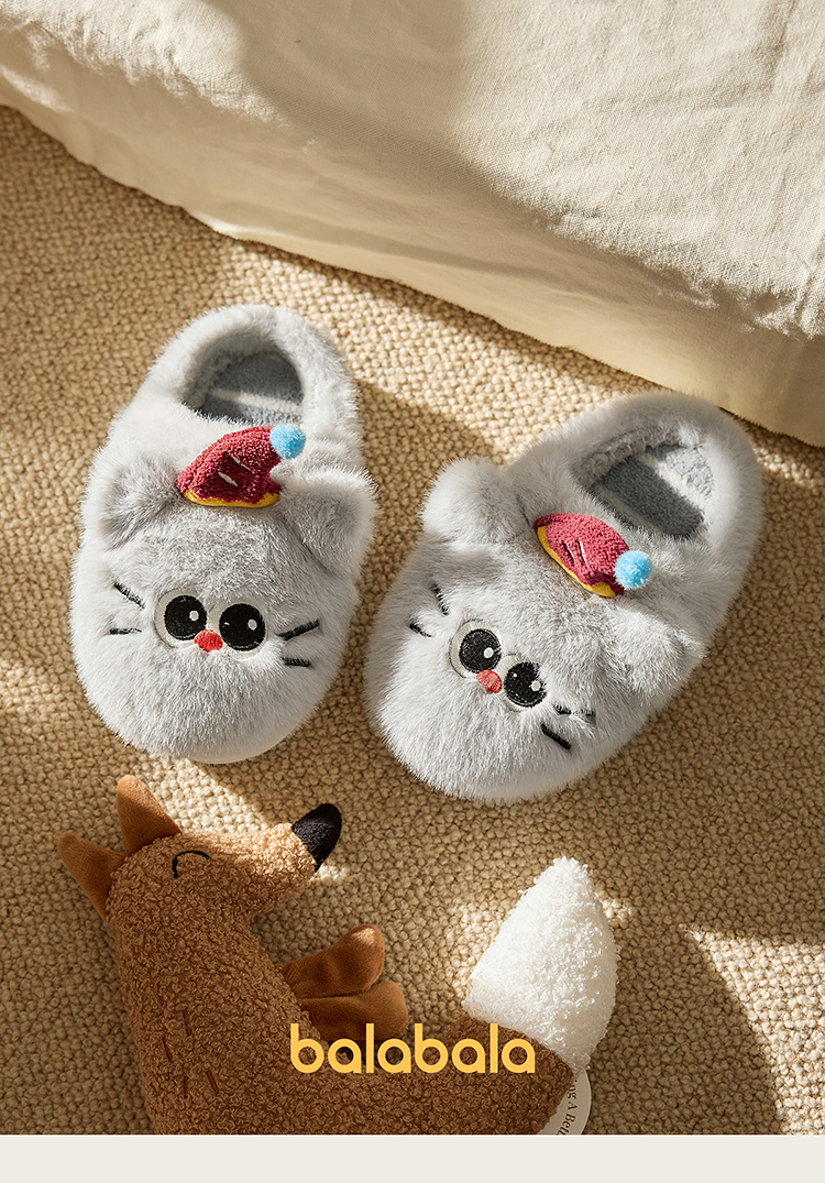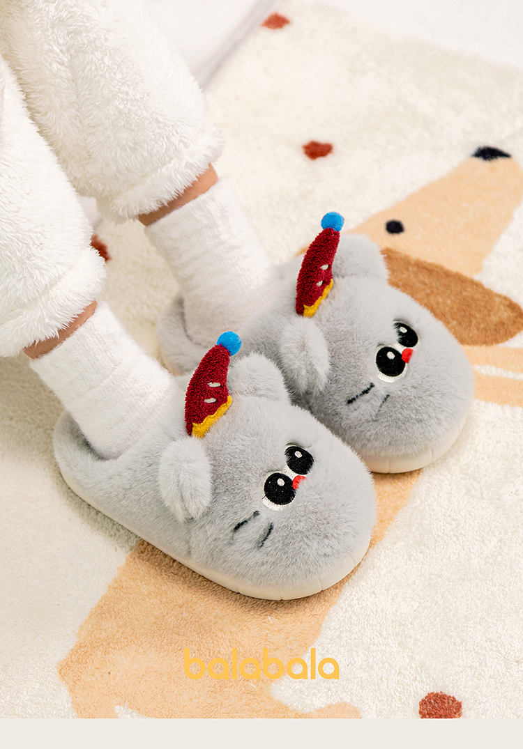 巴拉巴拉儿童棉拖鞋可爱动物毛绒半包拖鞋居家外穿鞋子冬2025新款