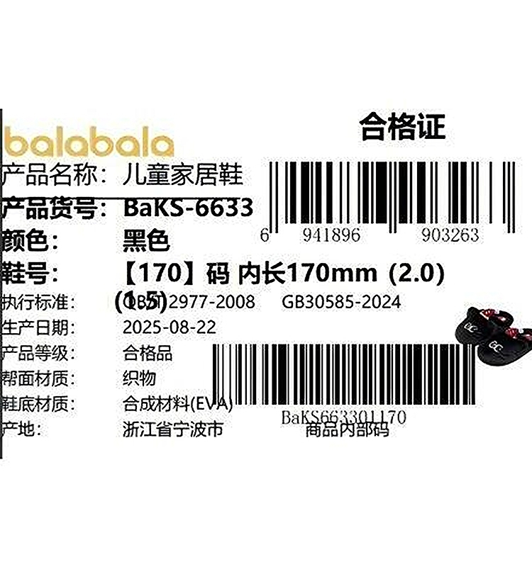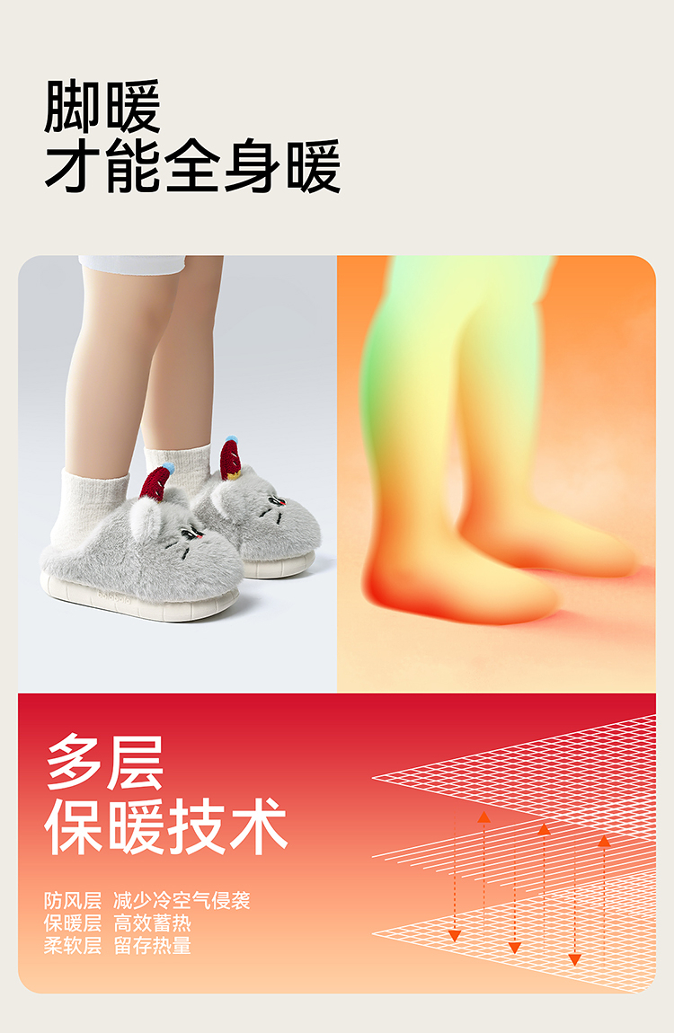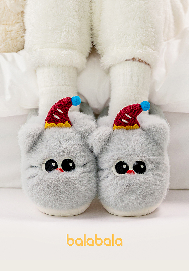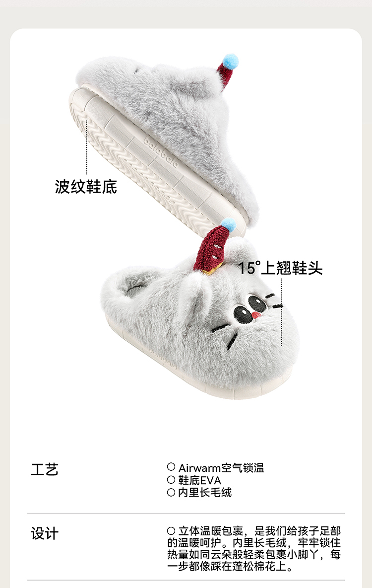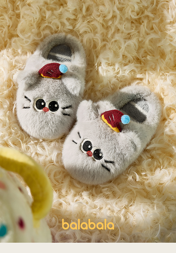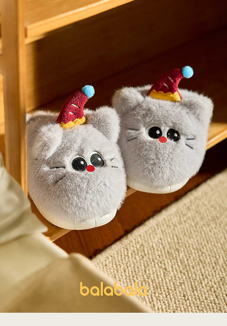 巴拉巴拉儿童棉拖鞋可爱动物毛绒半包拖鞋居家外穿鞋子冬2025新款