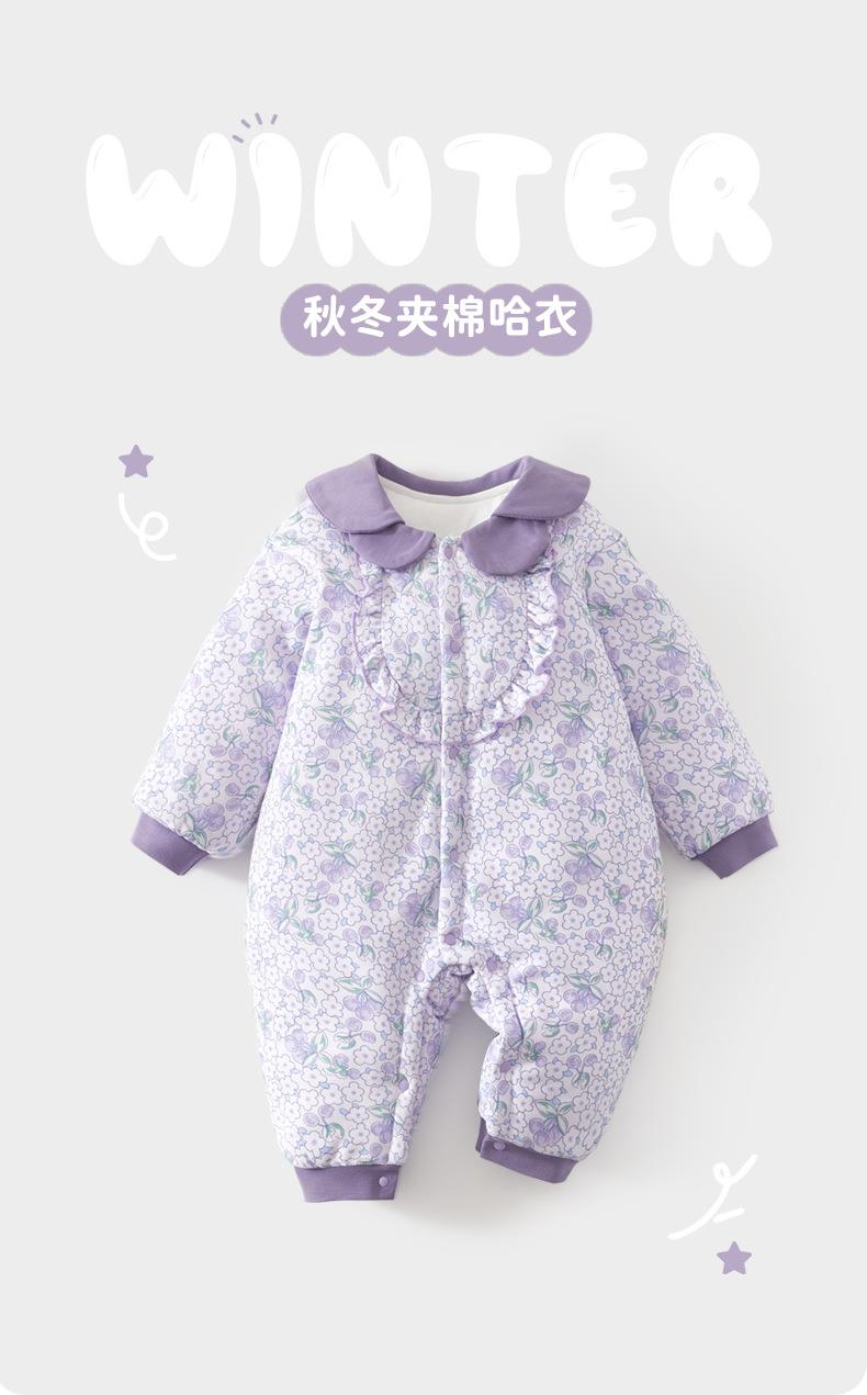 婴儿夹棉连体衣加厚宝宝秋冬季a类加棉爬爬服哈衣外出新生儿棉服