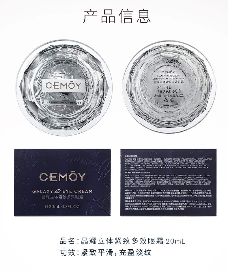 【淡纹大师 买一送一】CEMOY澳诗茉晶耀立体紧致多效眼霜20ml 紧致双眸 抚平细纹 缓解眼部水肿 清爽易吸收 贵妇级质感 赠晶耀眼霜5ml*4+小鲸鱼按摩棒