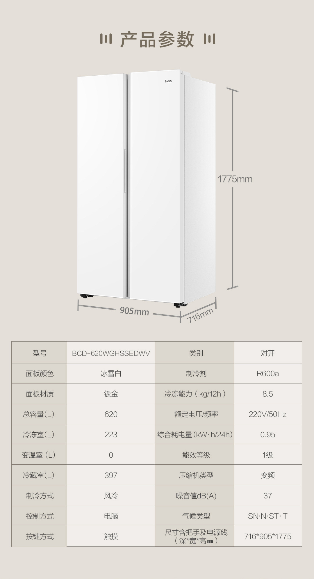 海尔(Haier)冰箱 BCD-620WGHSSEDWV