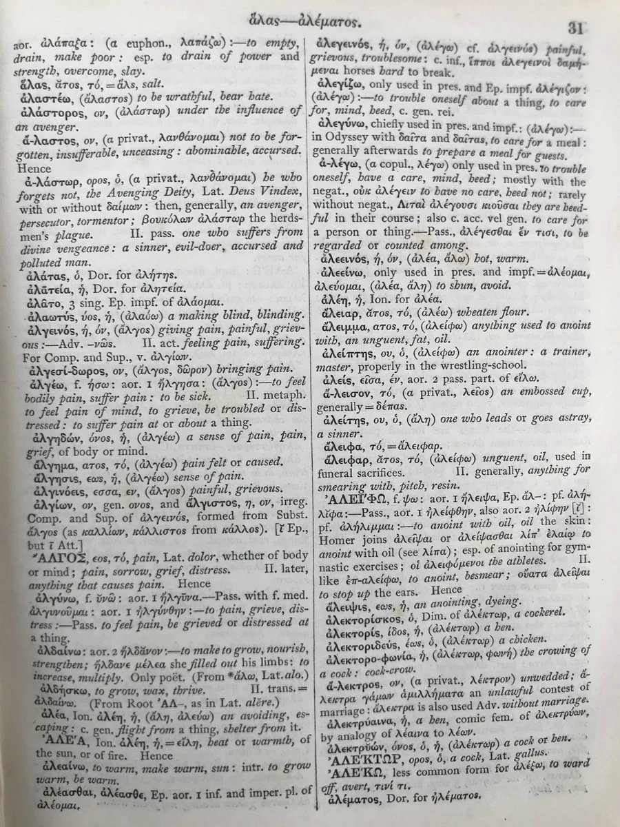 1876年 希腊语-英语词典 皮脊精装32开