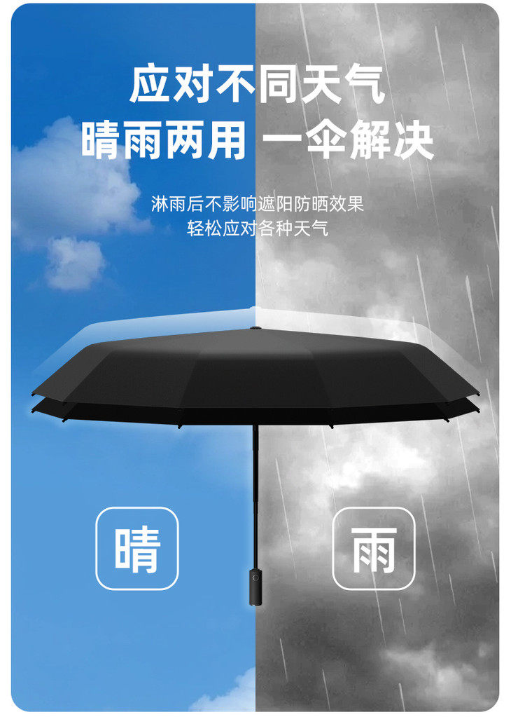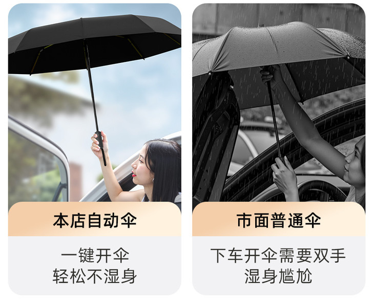 ✅复合高密度隔热材料,防晒指数UP+ UP +UP+ ✅全自动开伞,一键开合,帅气加倍 ✅作为主打的便捷的雨伞,必须得上技能 ✅全自动开合不要太好用,并且进一步优化了伞柄内部结构相比普通全自动伞,回收伞柄时省力高达40%呢