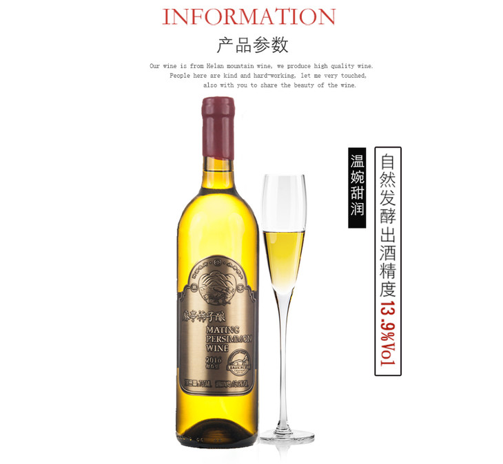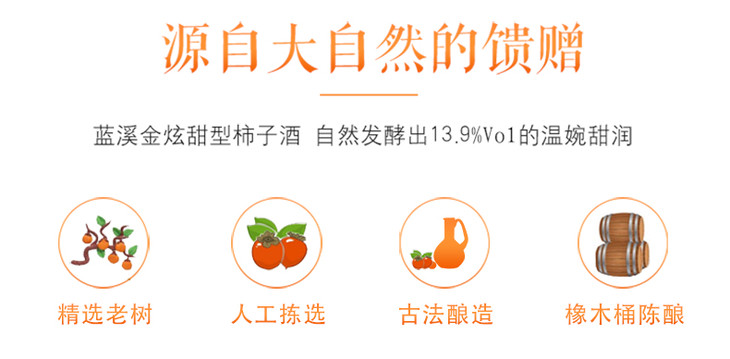蓝溪金炫 麻亭柿子酿柿子酒 13.9度 原汁发酵酿造果酒 百年老树果实酿造果酒 750ml
