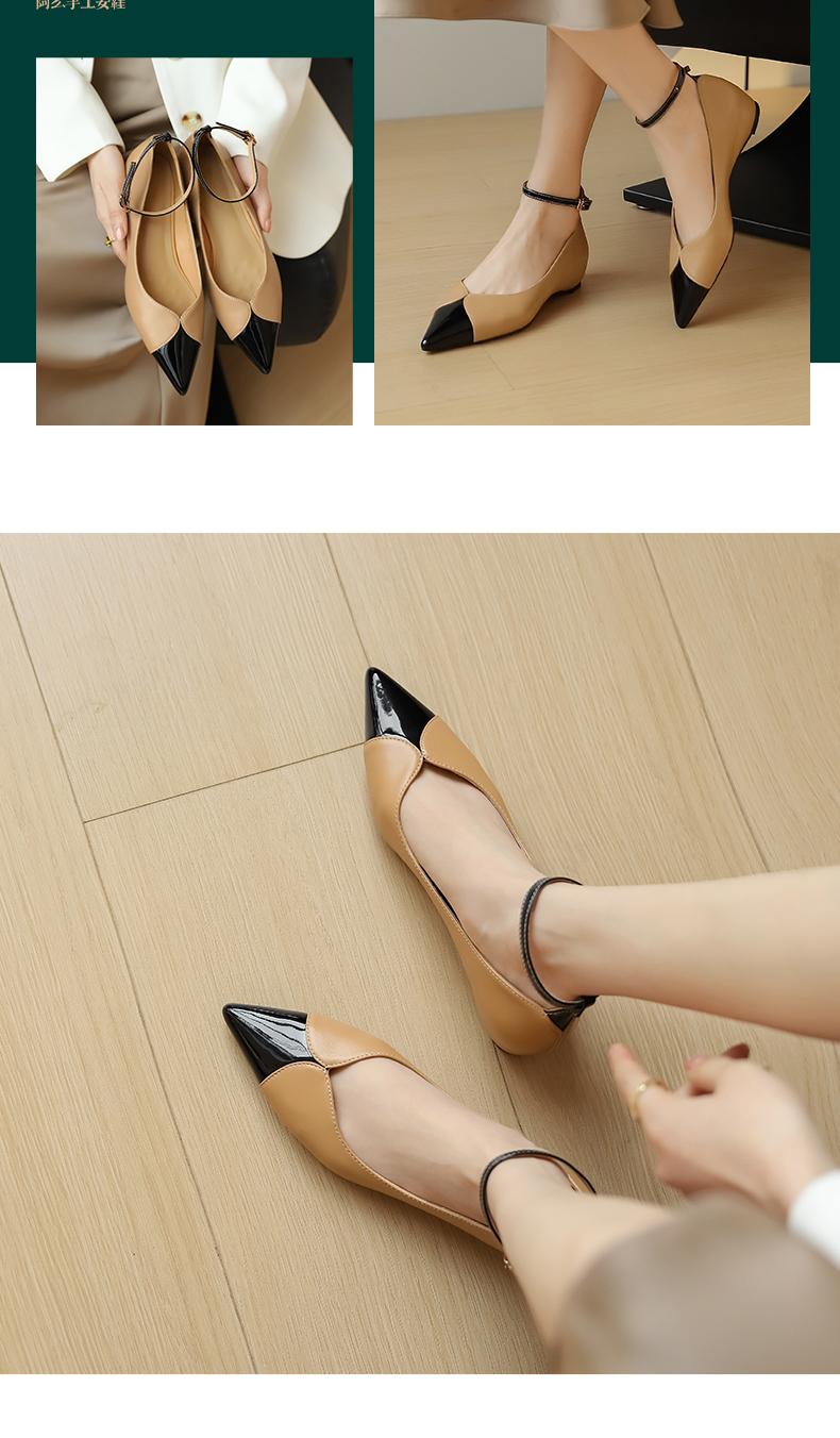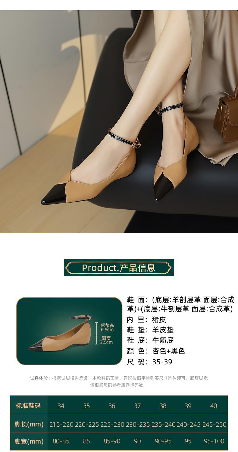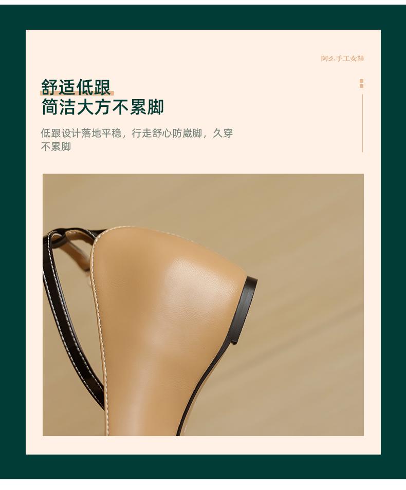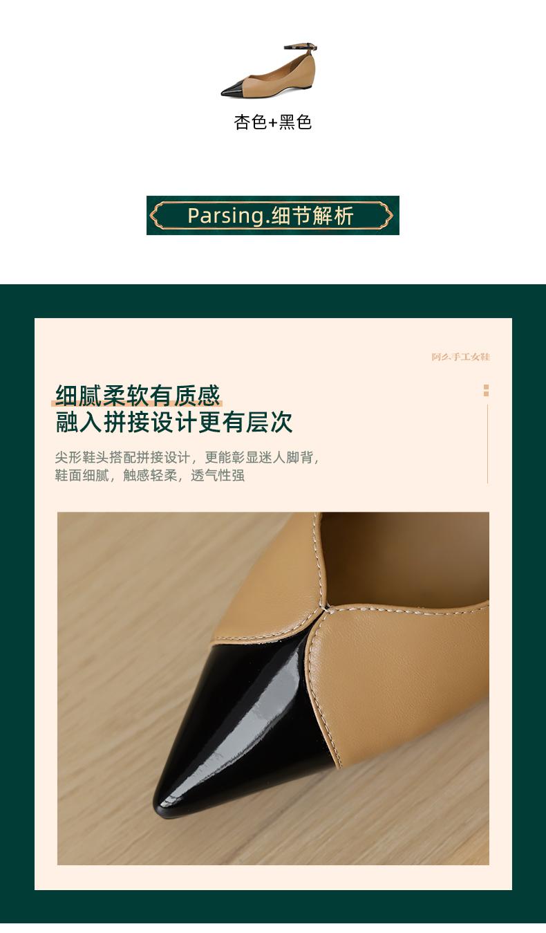 阿么手工女鞋拼色真皮单鞋2025新款包头一字带坡跟鞋不掉跟3.5CM