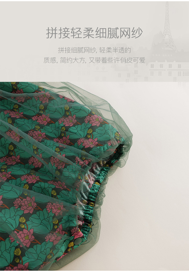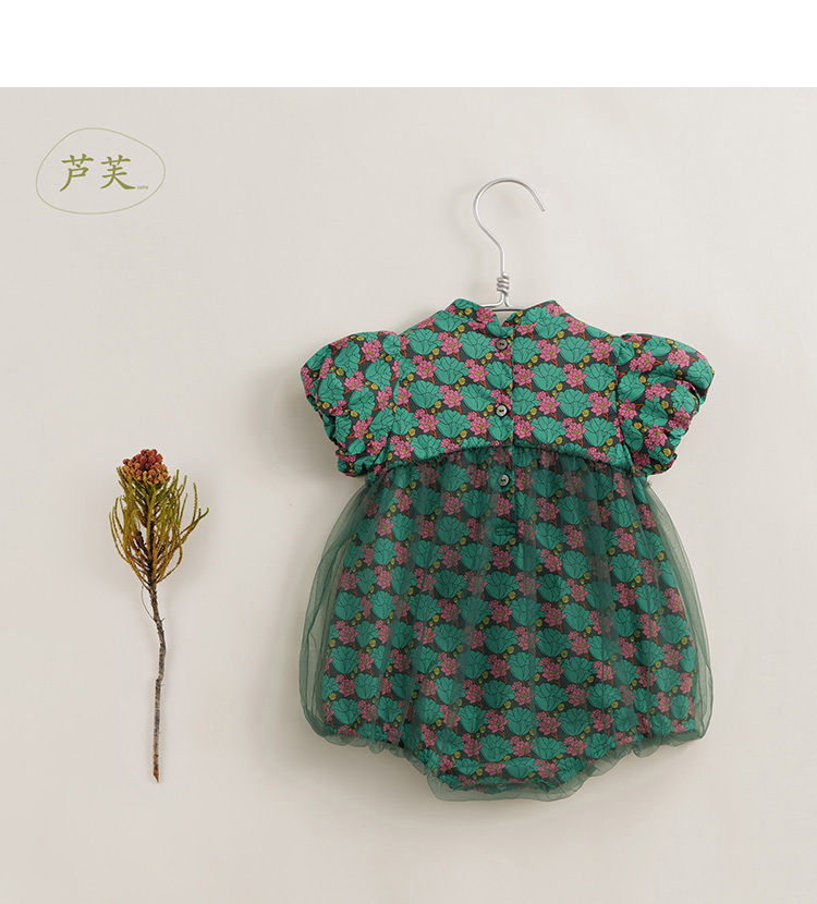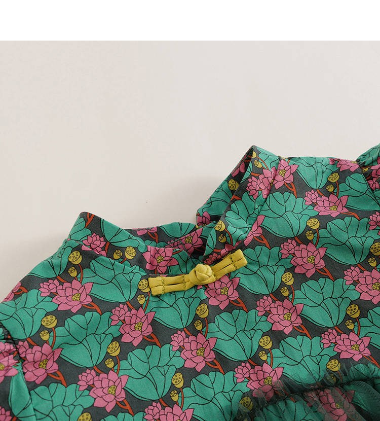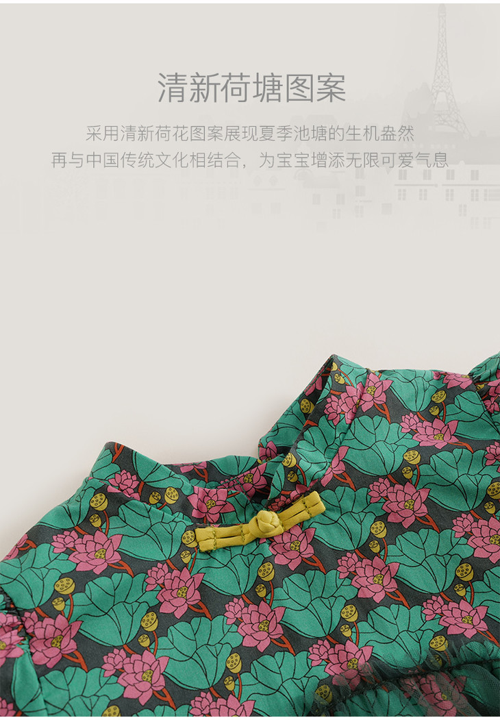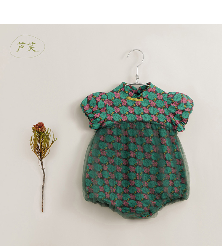 【马克珍妮 中国风】新款夏装 女童网纱旗袍短袖连体衣230730