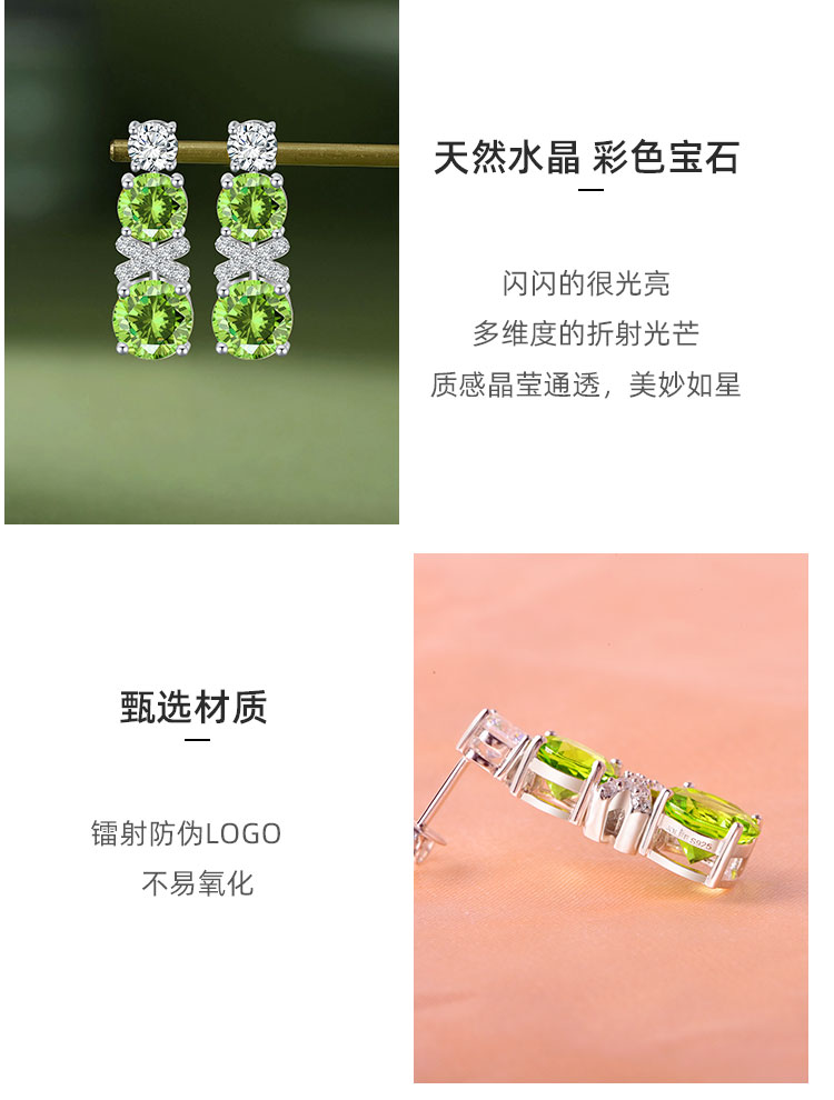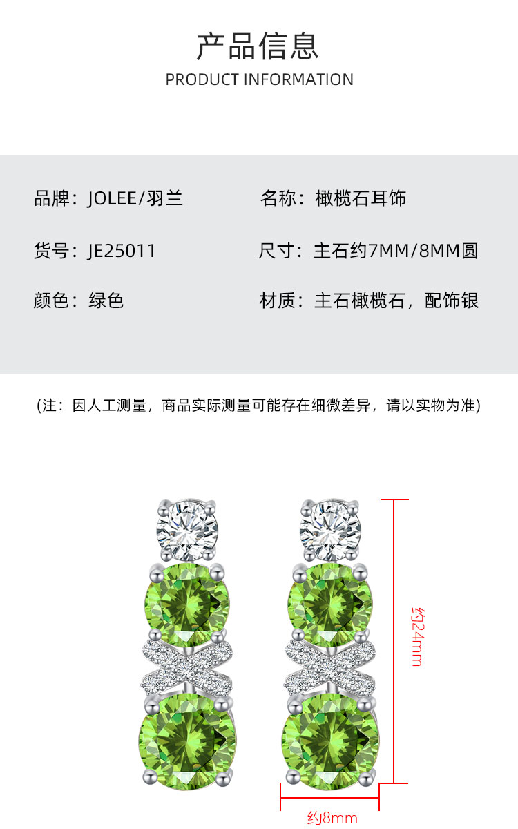 【橄榄石耳环】耳钉女S925银橄榄石轻奢时尚彩色宝石耳饰品JE25011