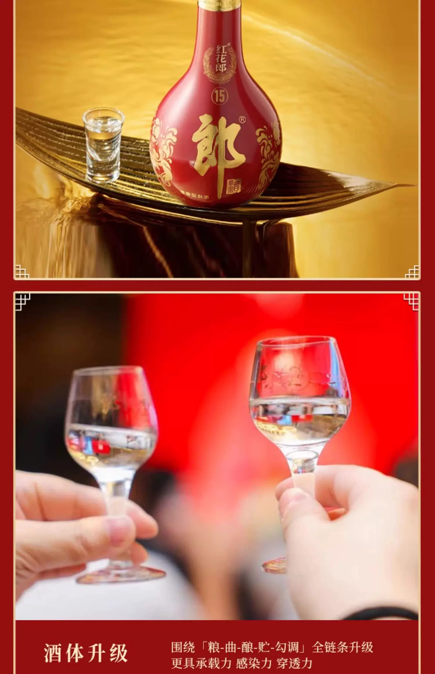 【佳节送礼】郎酒 红花郎十五单瓶礼盒 53度酱香型白酒 【内含礼品袋】 整箱装(1箱6盒)