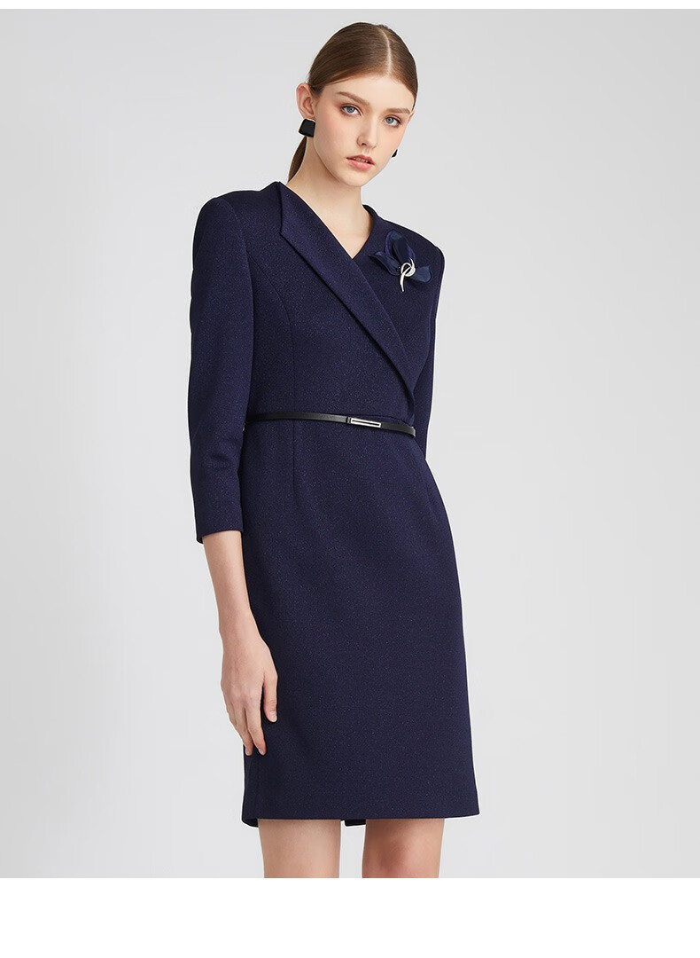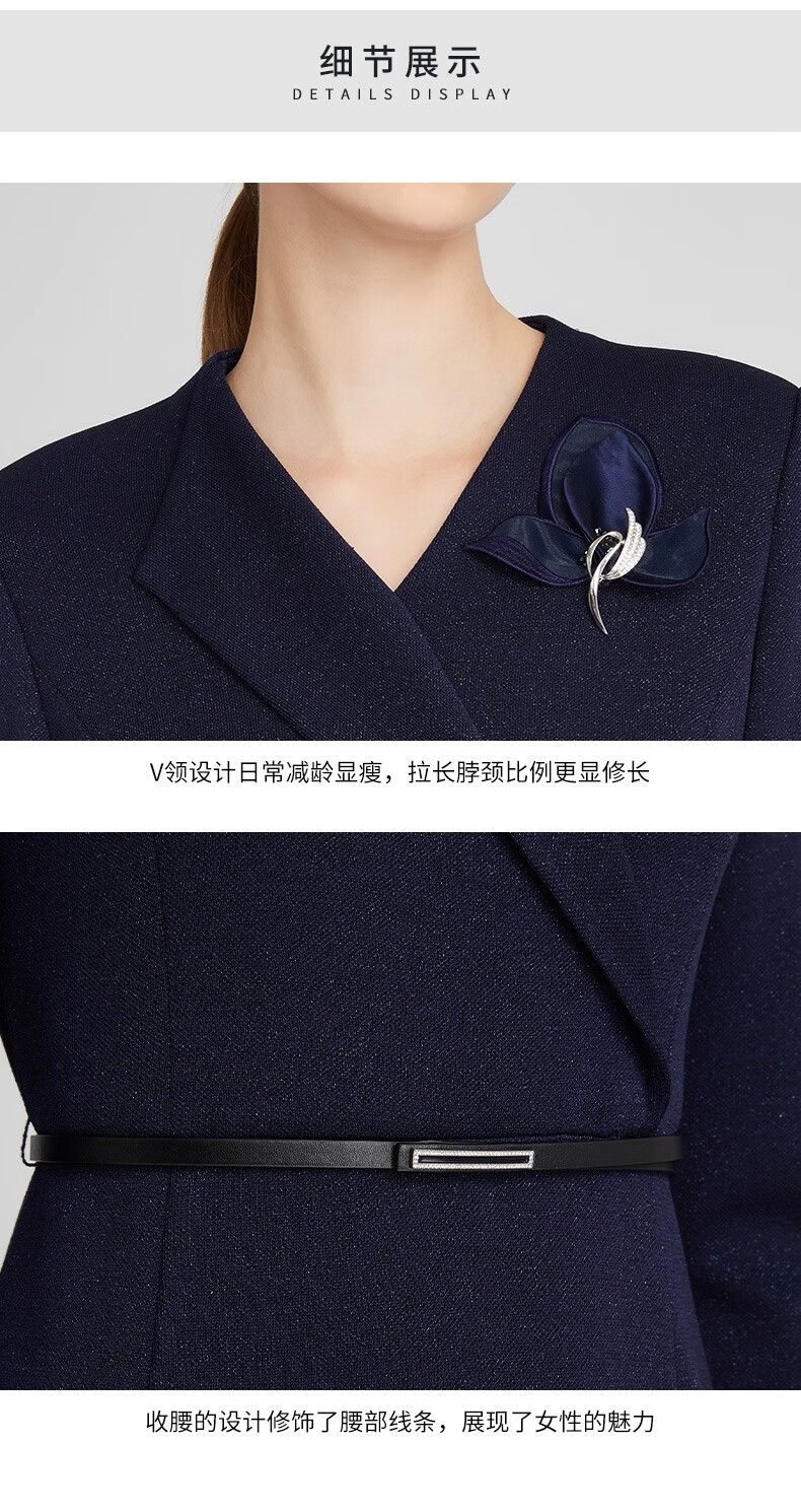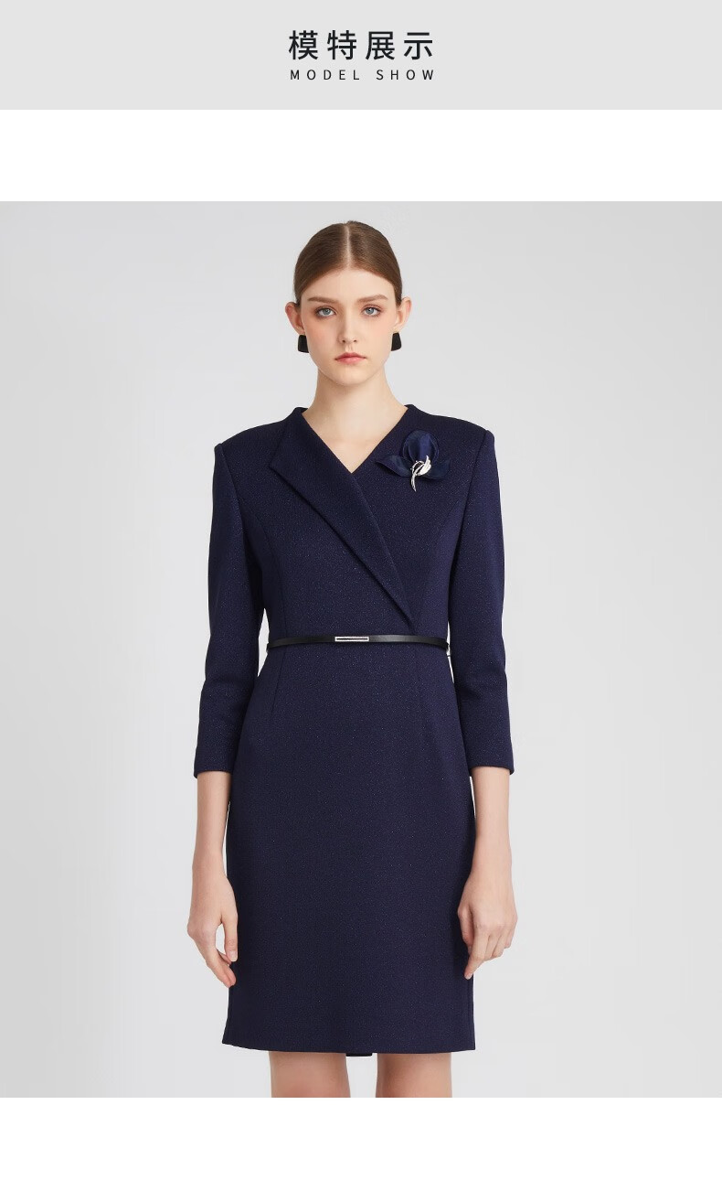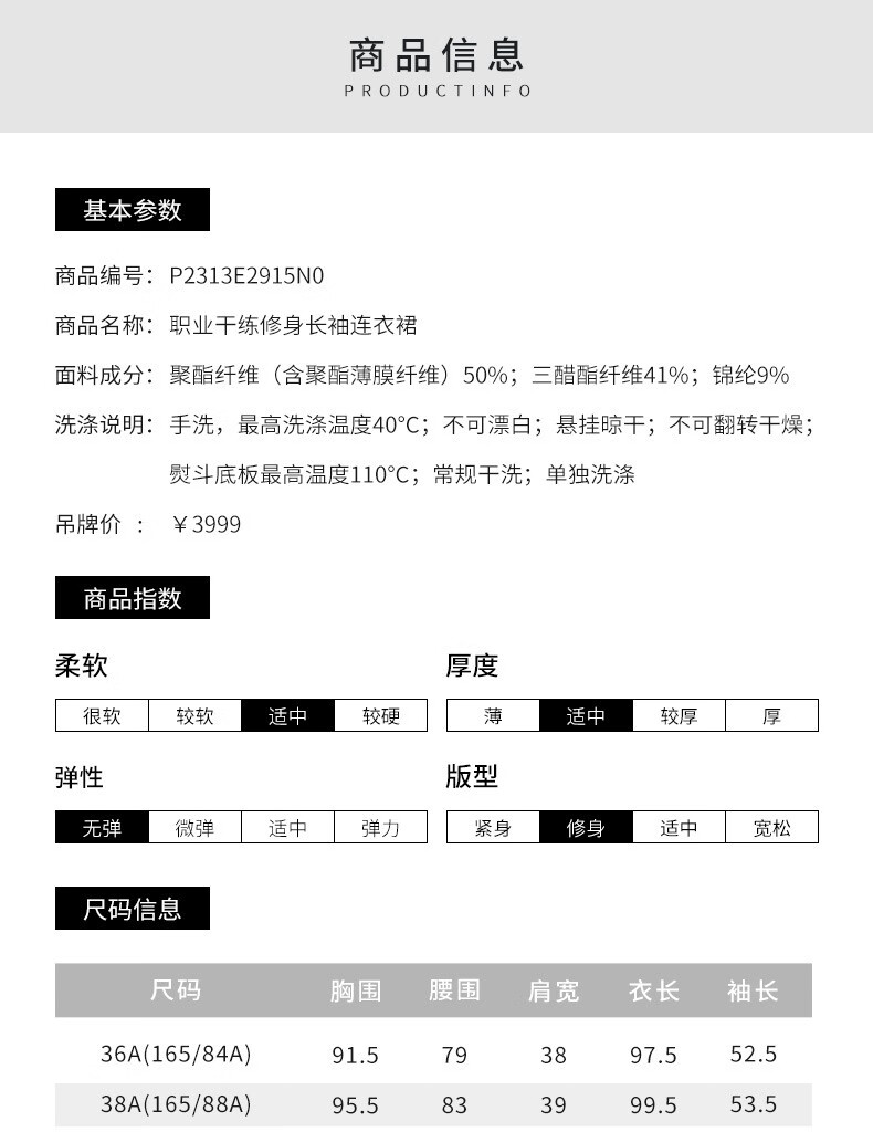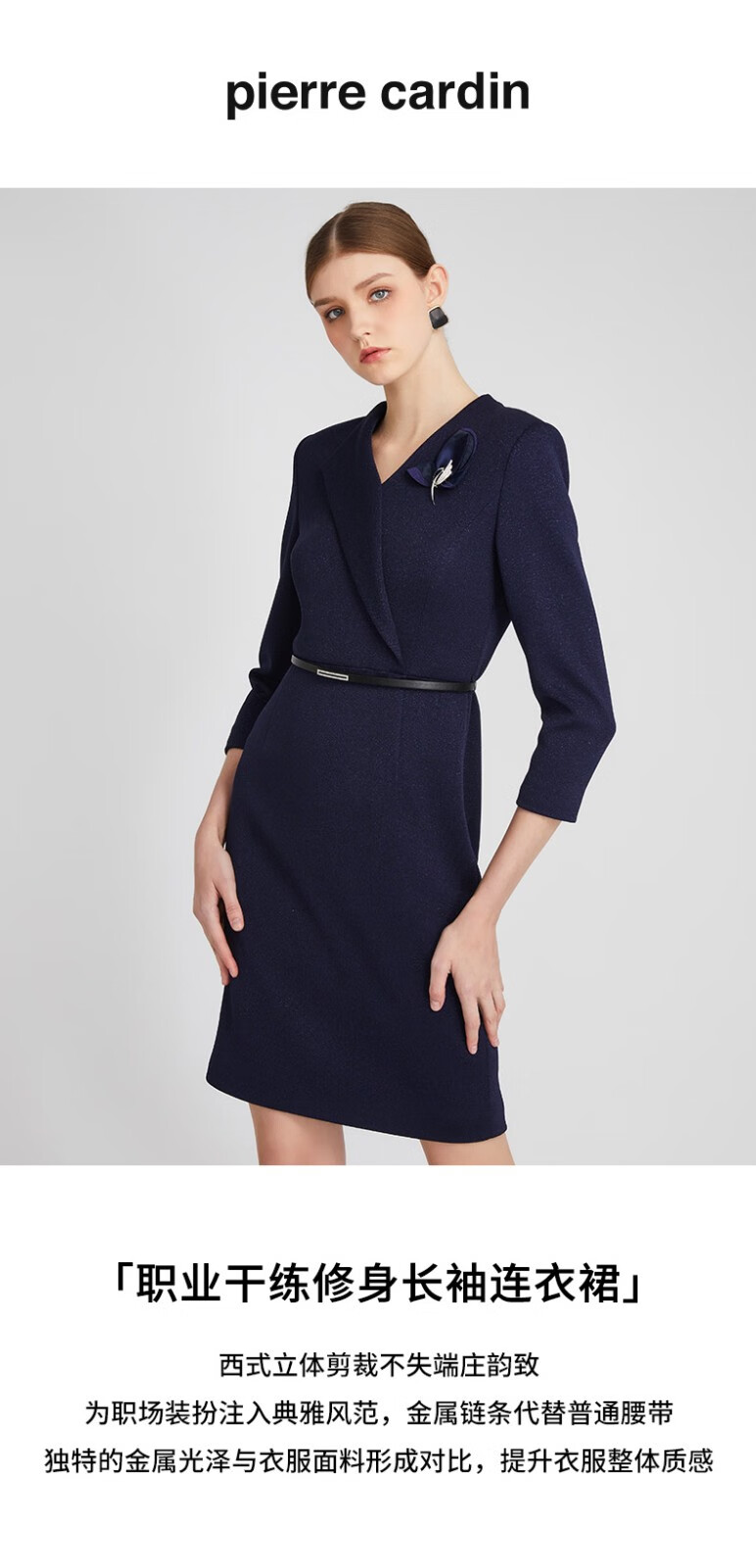皮尔卡丹女装连衣裙轻商务修身秋季通勤收腰连衣裙P2313E2915N0