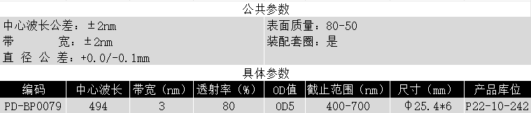 BP494/03K OD5@400-700 T>80% Φ25.4*6 带通滤光片 (带套圈)