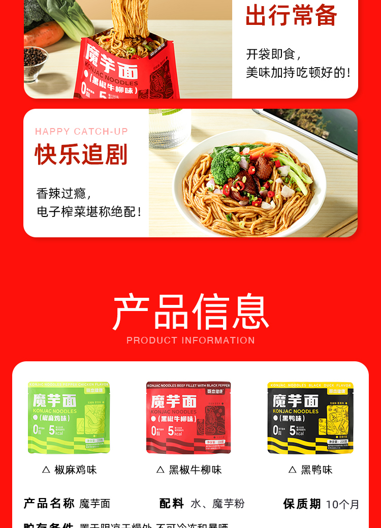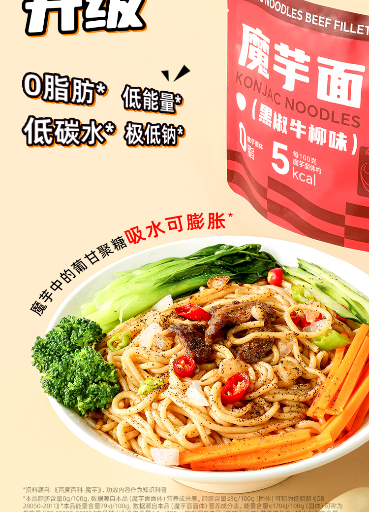 【69选15】【1袋】哥本健康™魔芋面(椒麻鸡味/黑椒牛柳味/黑鸭味)