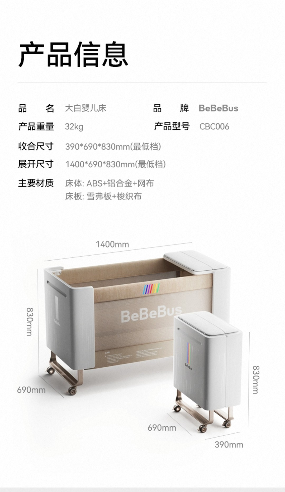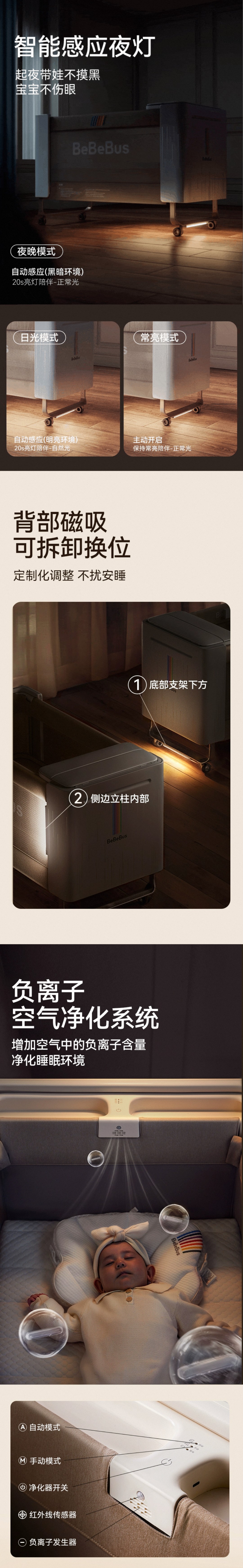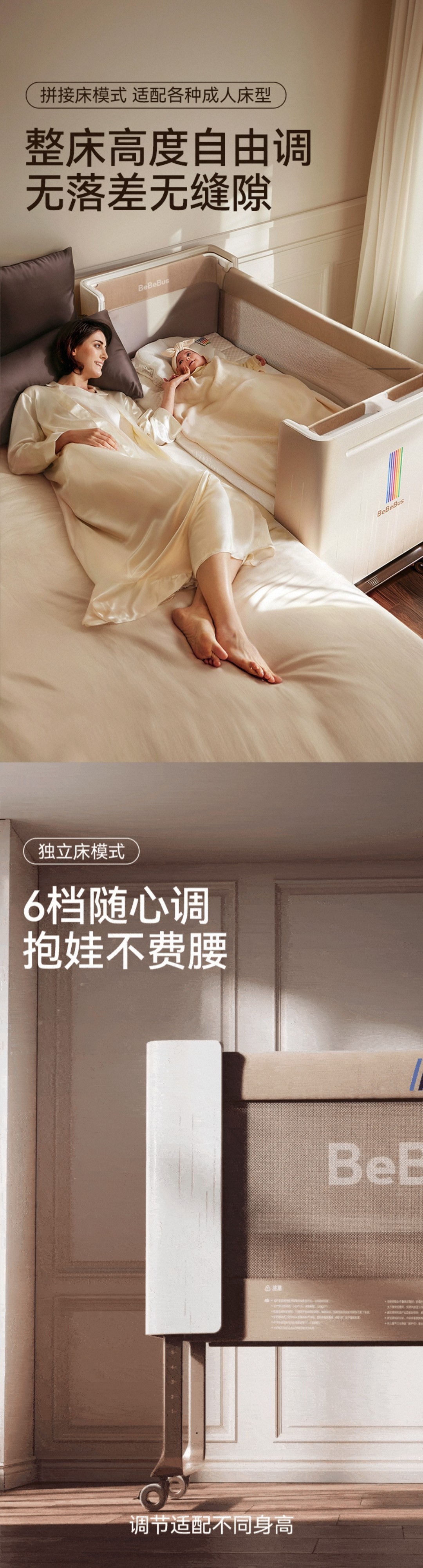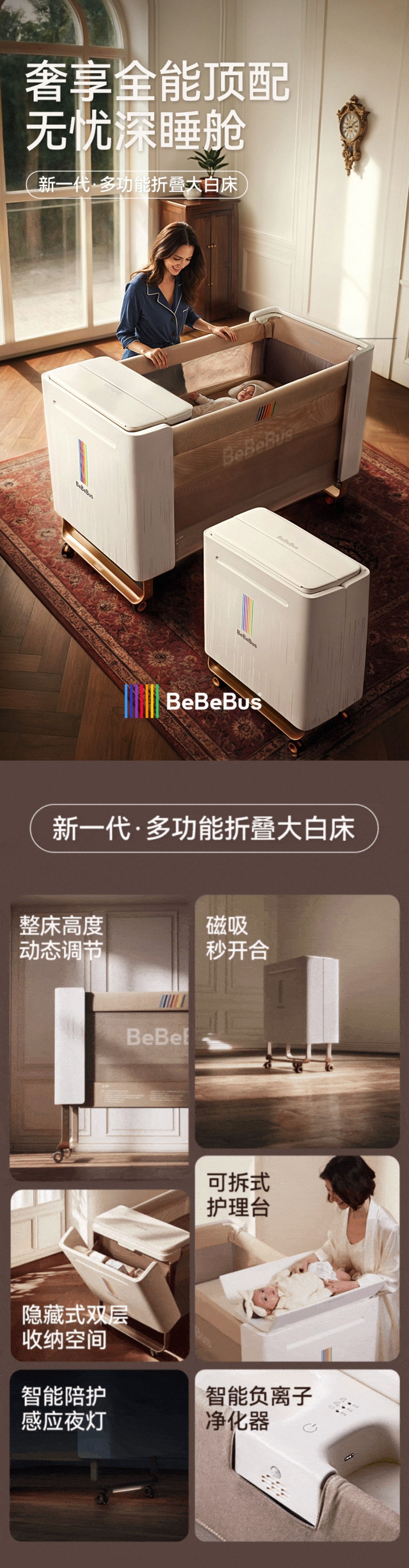 BeBeBus婴儿床多功能大白床智能可升降拼接大床可折叠宝宝床
