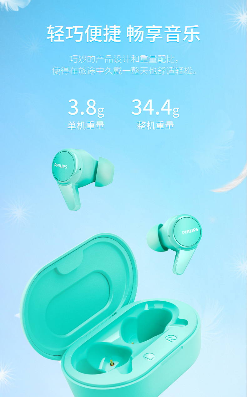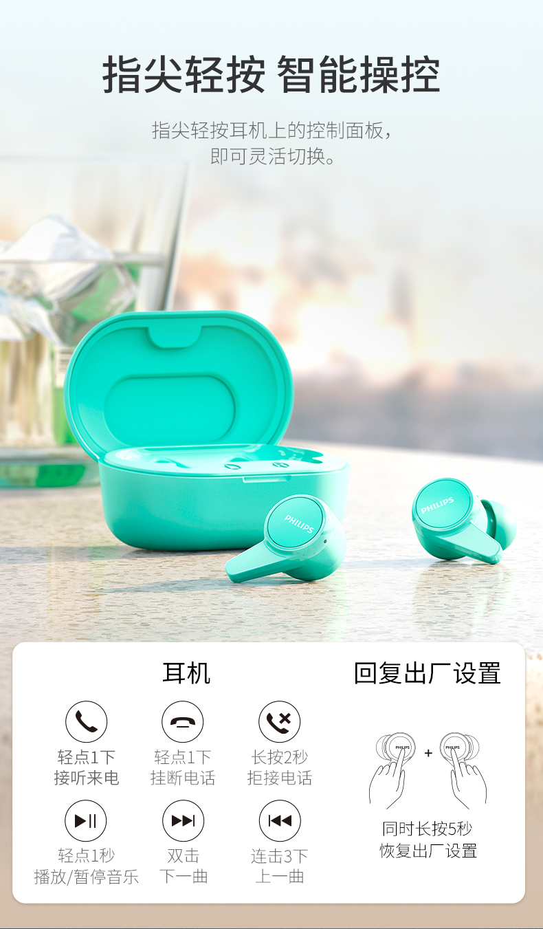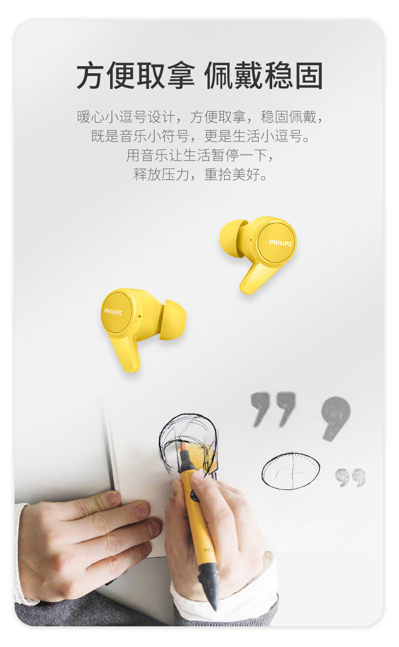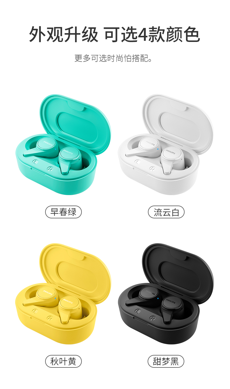 飞利浦TWS真无线蓝牙耳机TAT1207(黑白双色可选下单备注颜色)