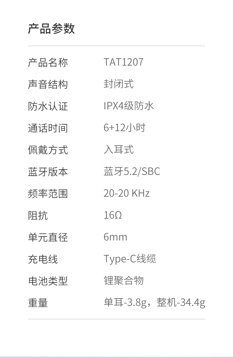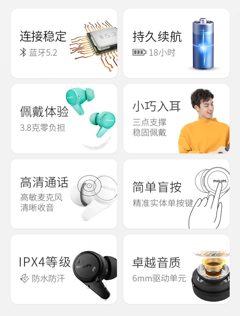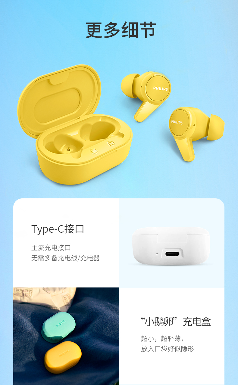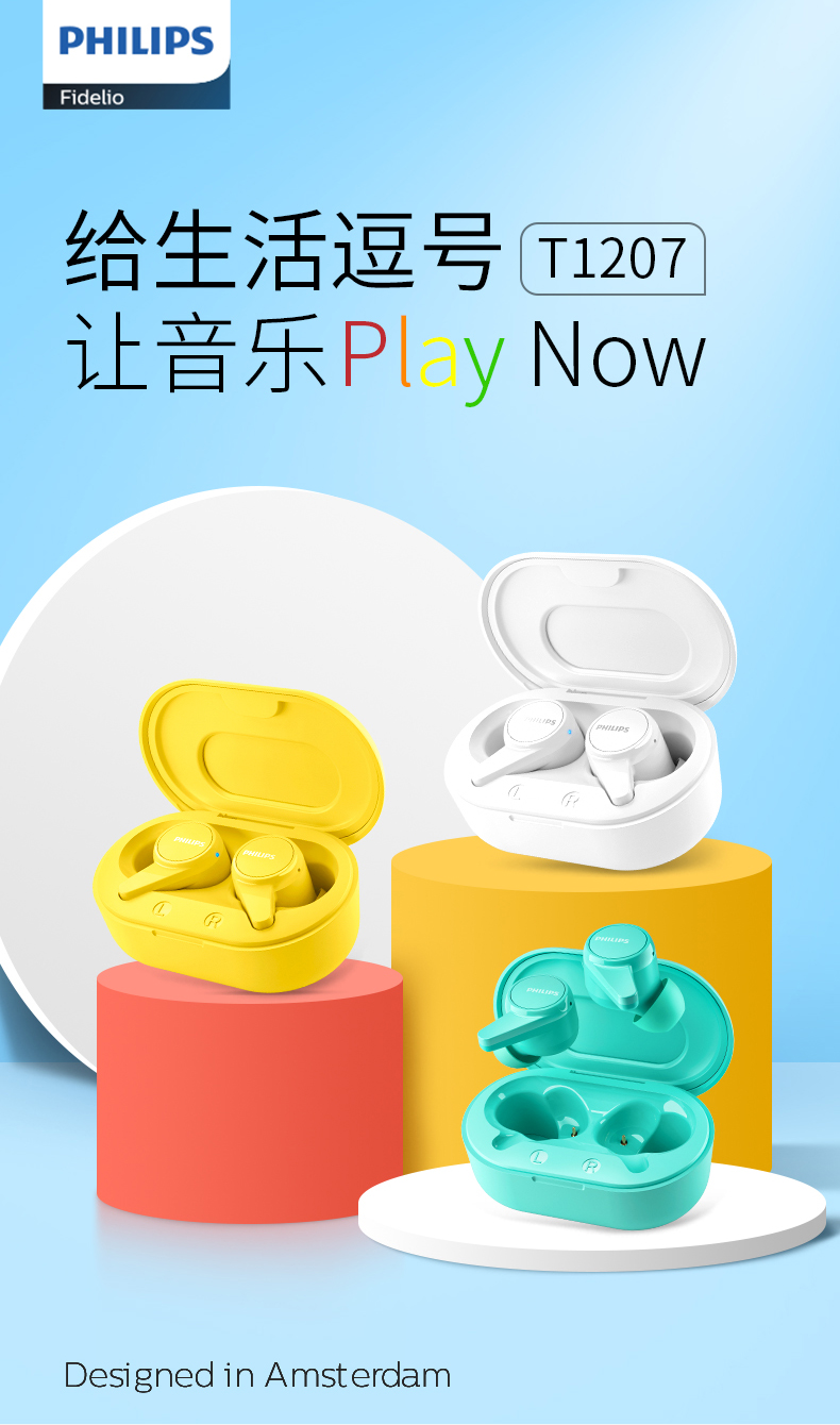 飞利浦TWS真无线蓝牙耳机TAT1207(黑白双色可选下单备注颜色)