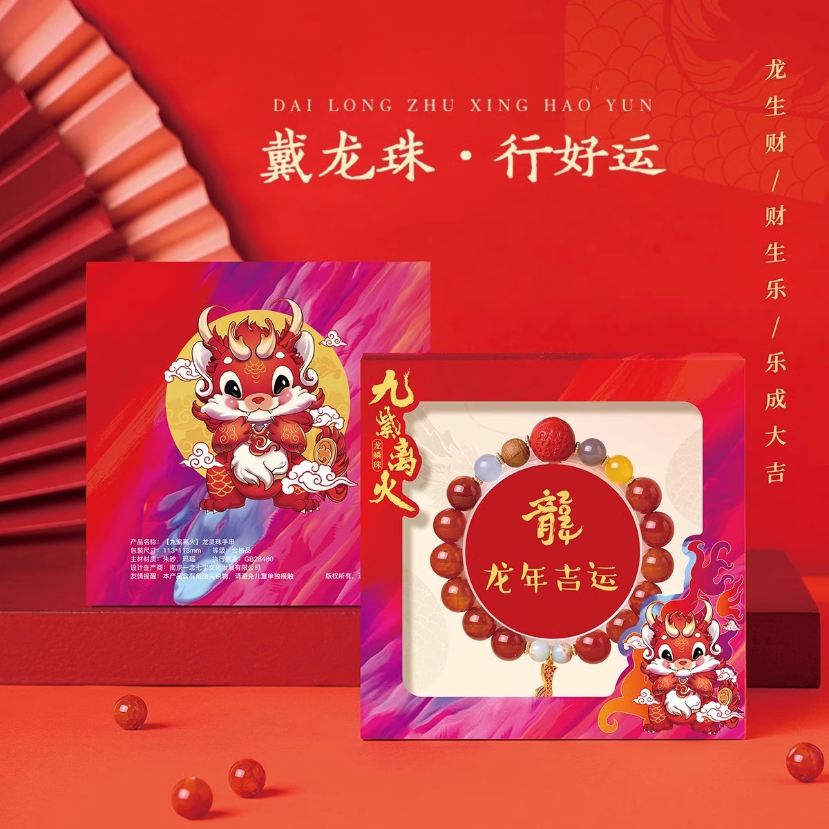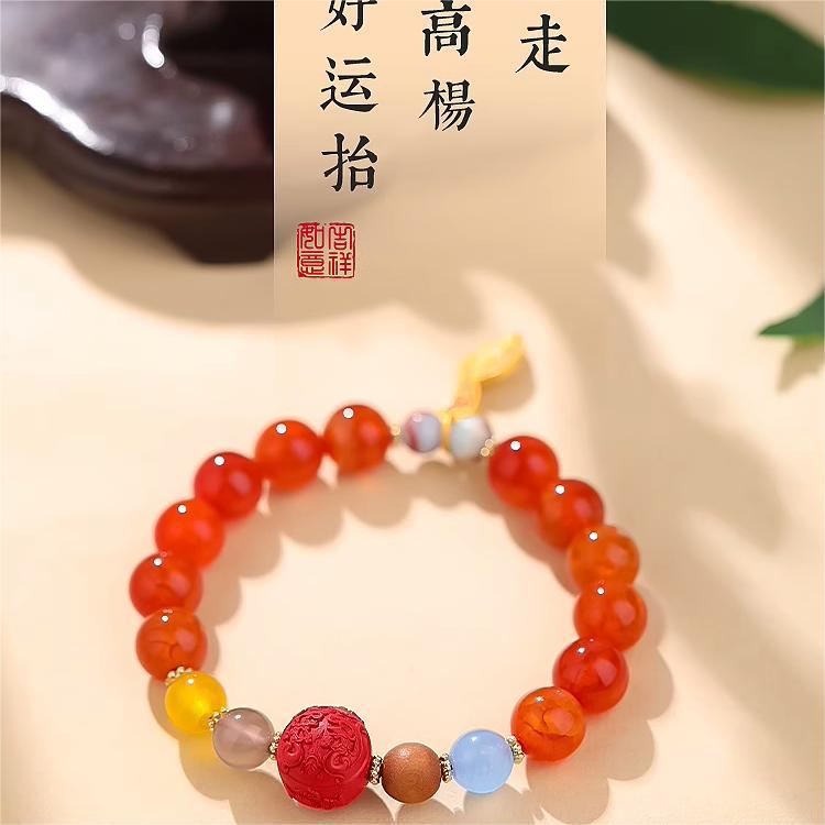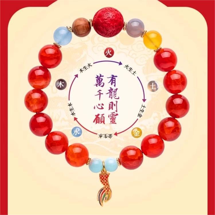 「礼盒装!龙年吉运」香积鸡鸣九紫离火龙鳞红玛瑙龙灵珠本命年手串时尚饰品
